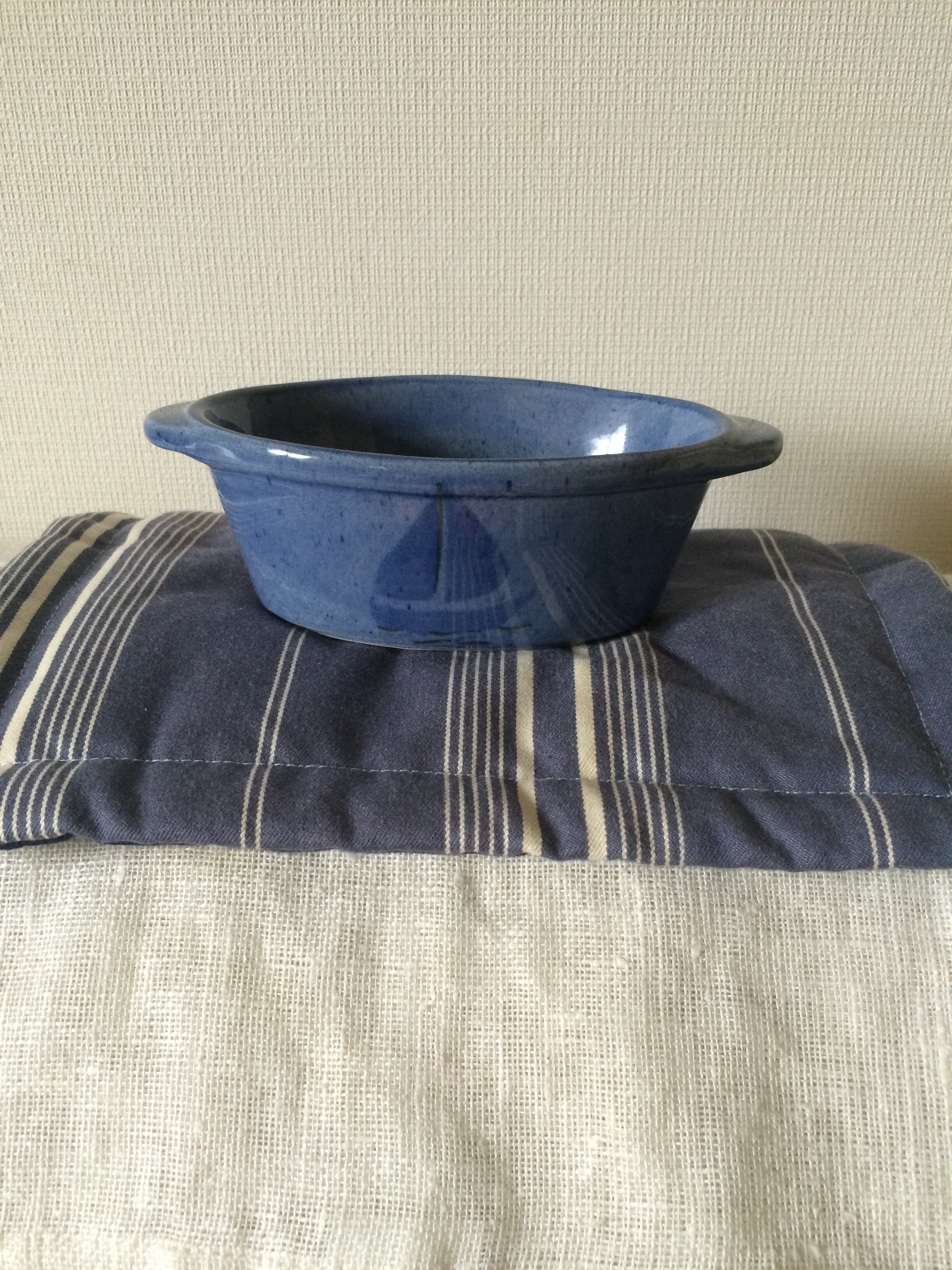 波に浮かぶヨットの絵付けとブルーの色合いが、マリンテイストなオーバル型のボウルです。