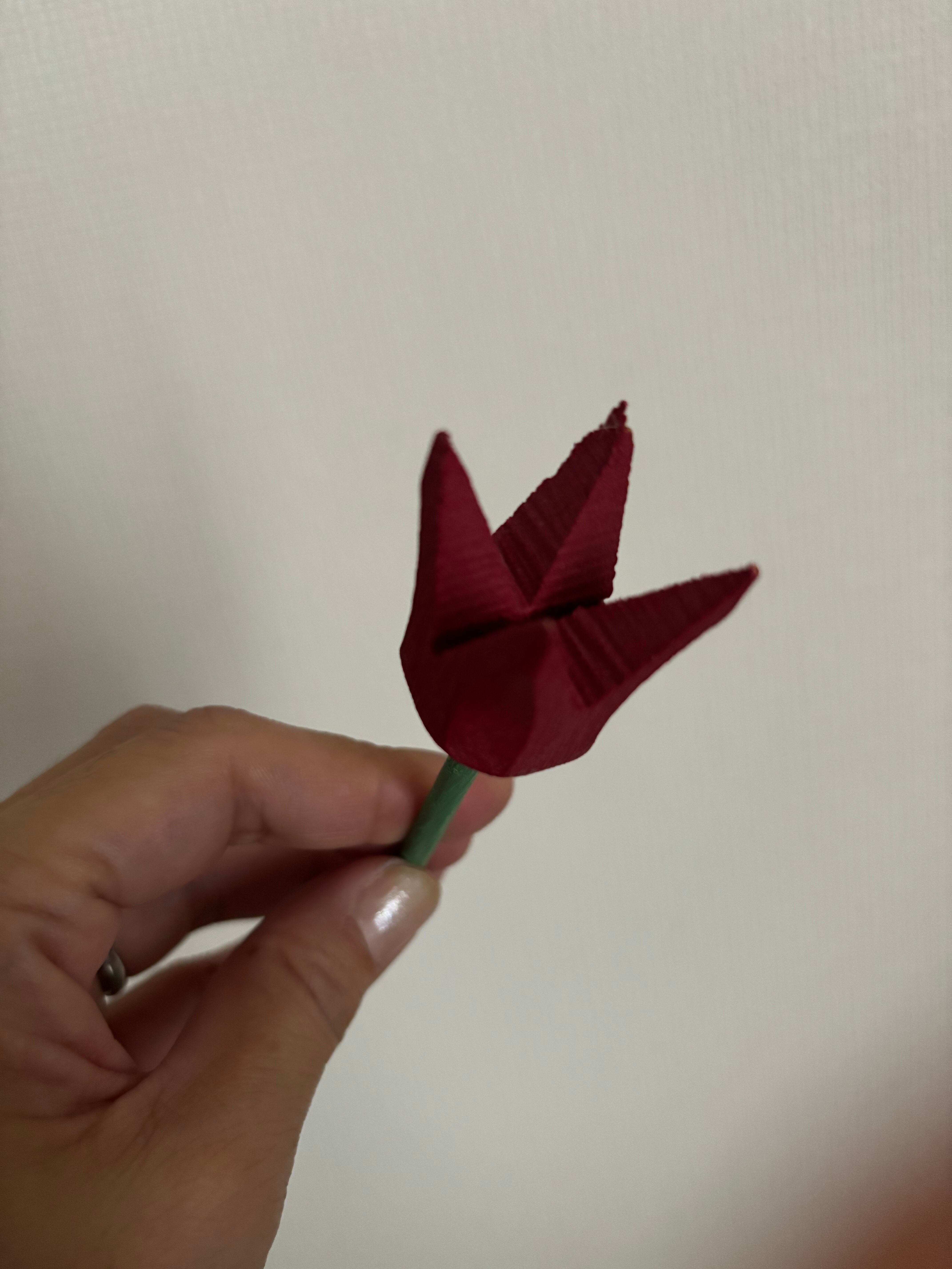 木製のすっとした茎のグリーンに、赤のチューリップが可愛らしいてす♫