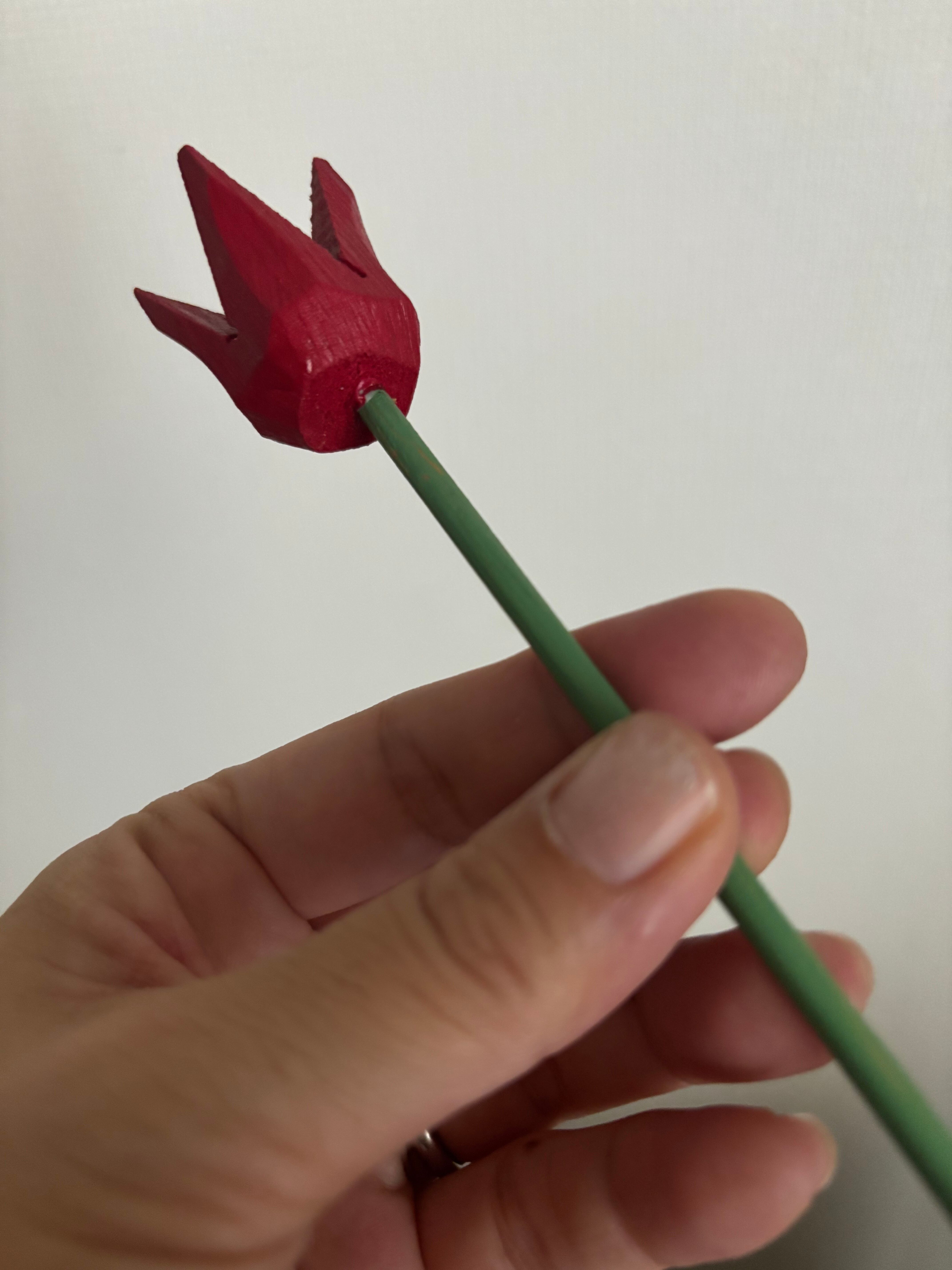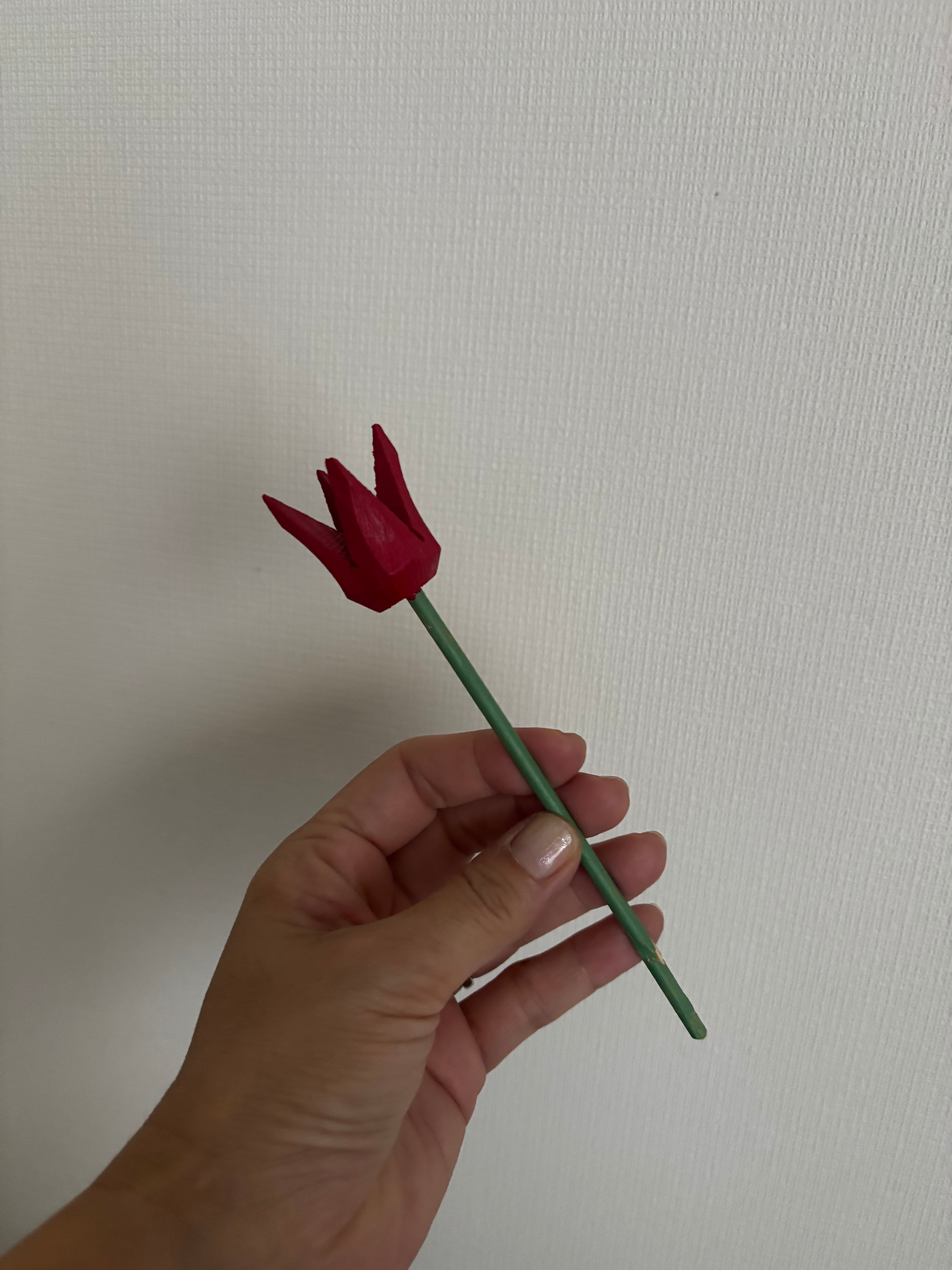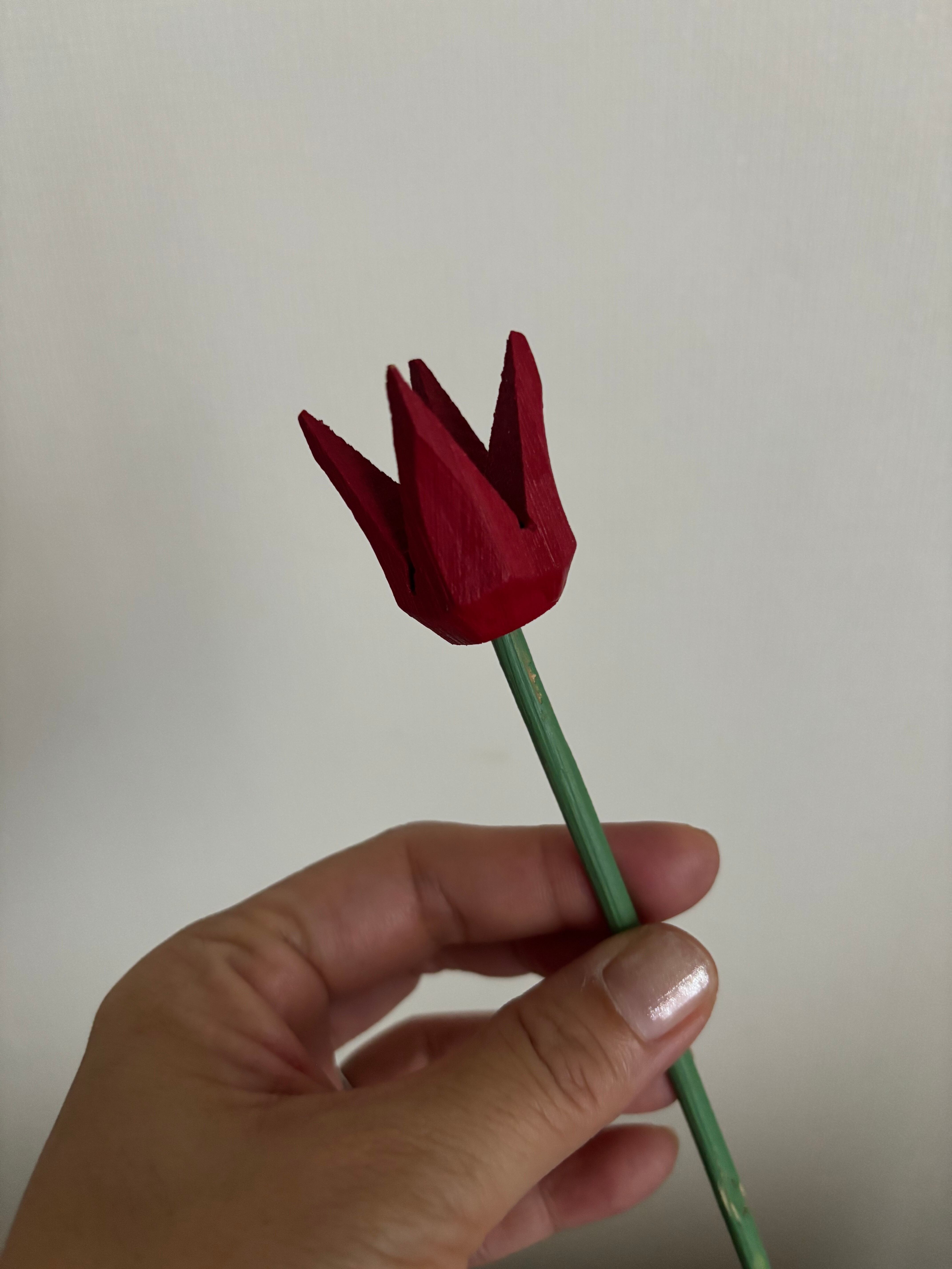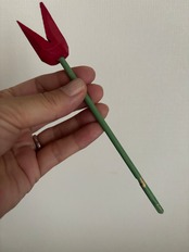 木製のすっとした茎のグリーンに、赤のチューリップが可愛らしいてす♫