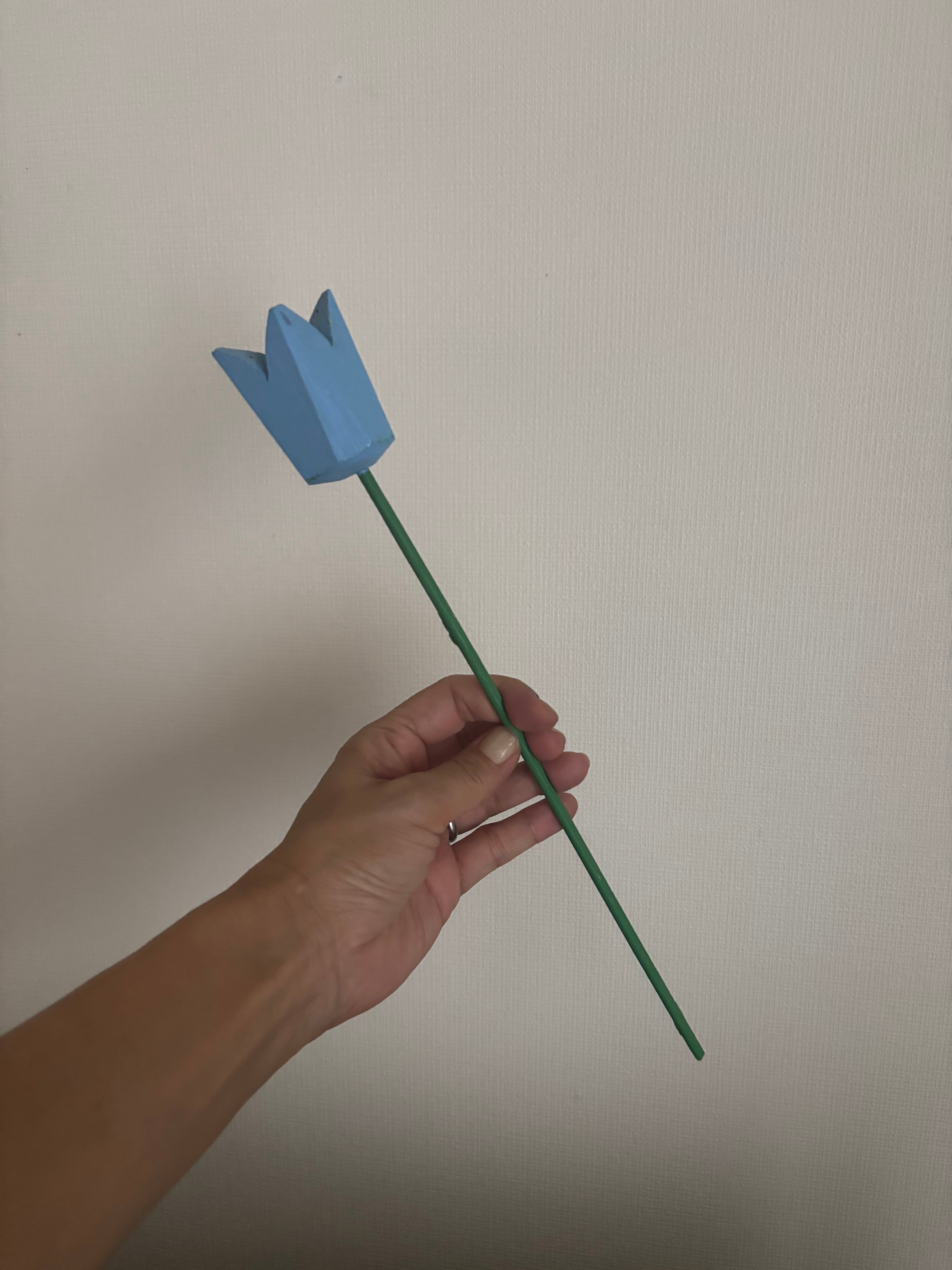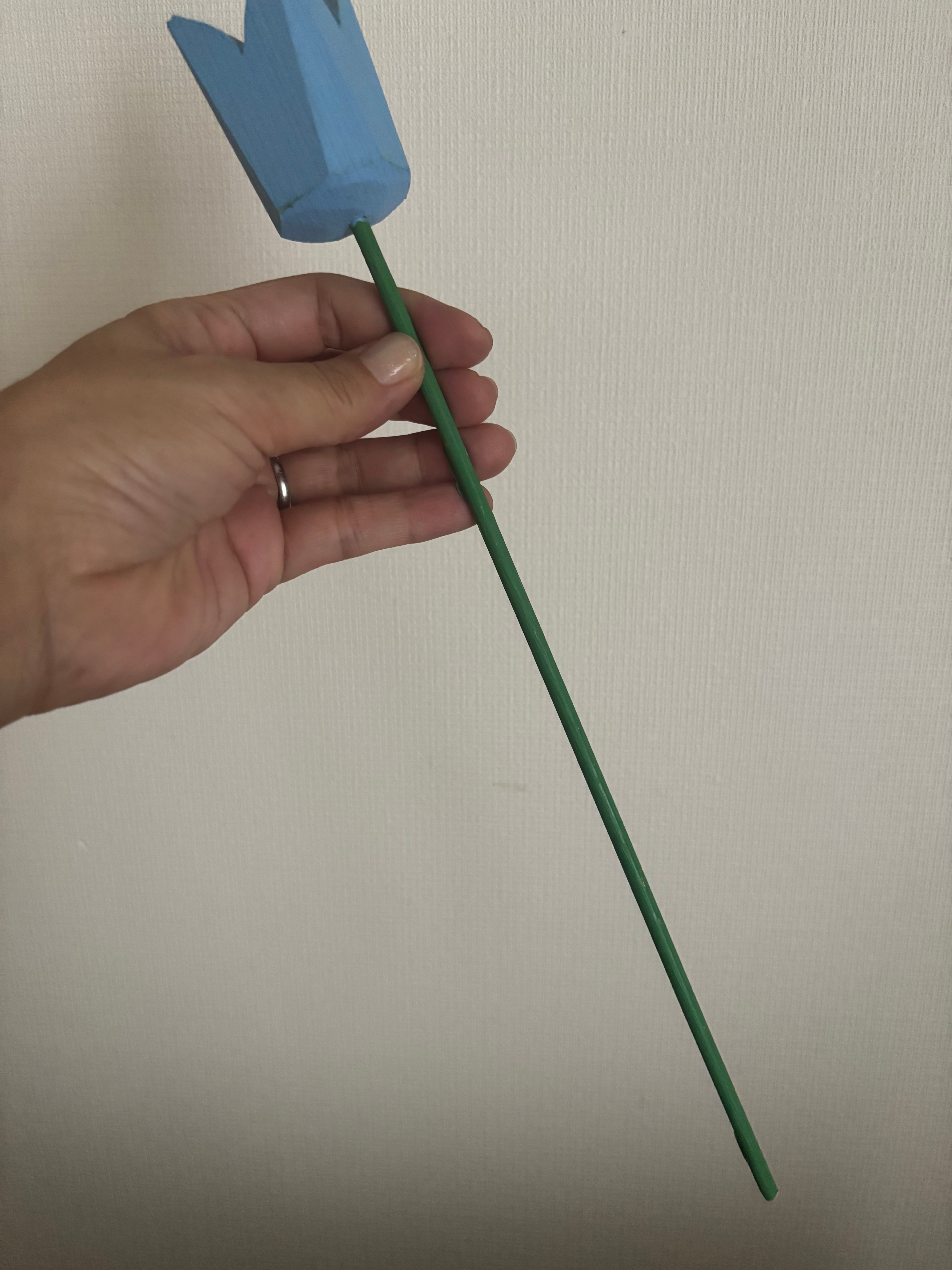 木製のすっとした茎のグリーンに、水色のチューリップが可愛らしいてす♫