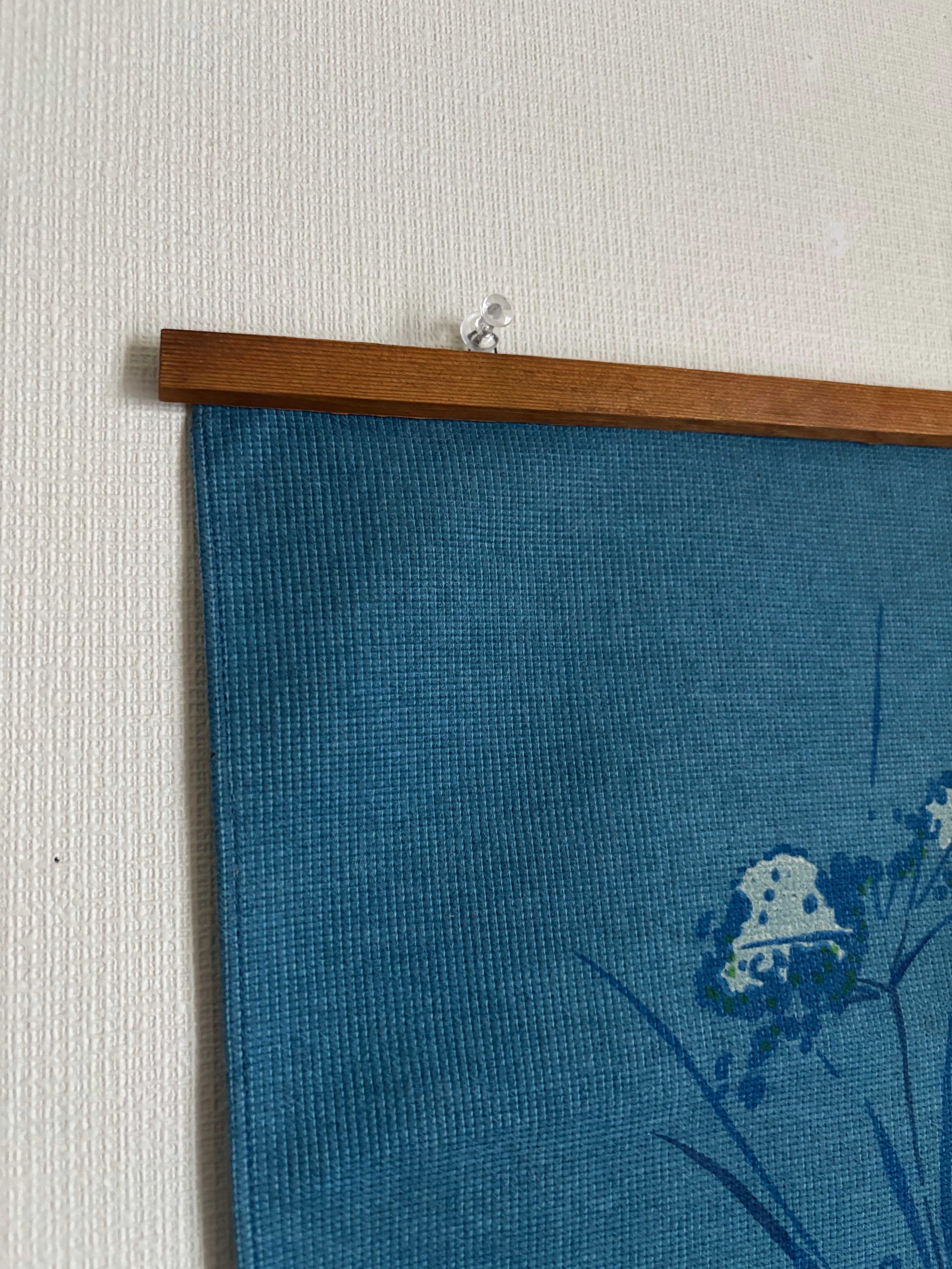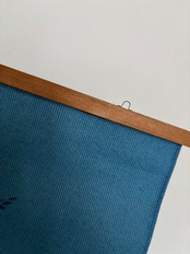 グリーンとブルーの色味がどこか日本の藍染めのような雰囲気もあり、更に上下がウッドタイプのタペストリーハンガーなので、和室に合わせても素敵です。