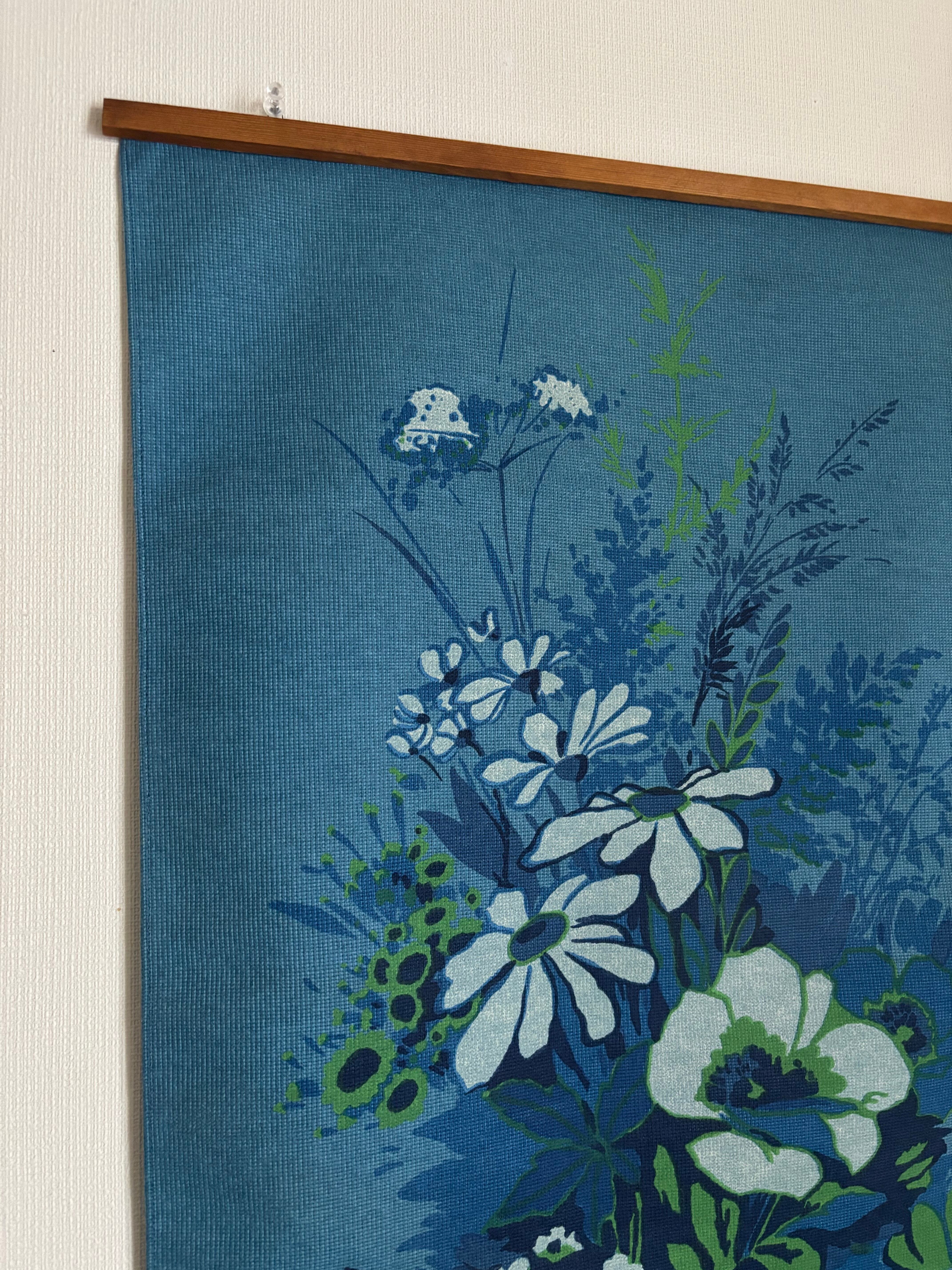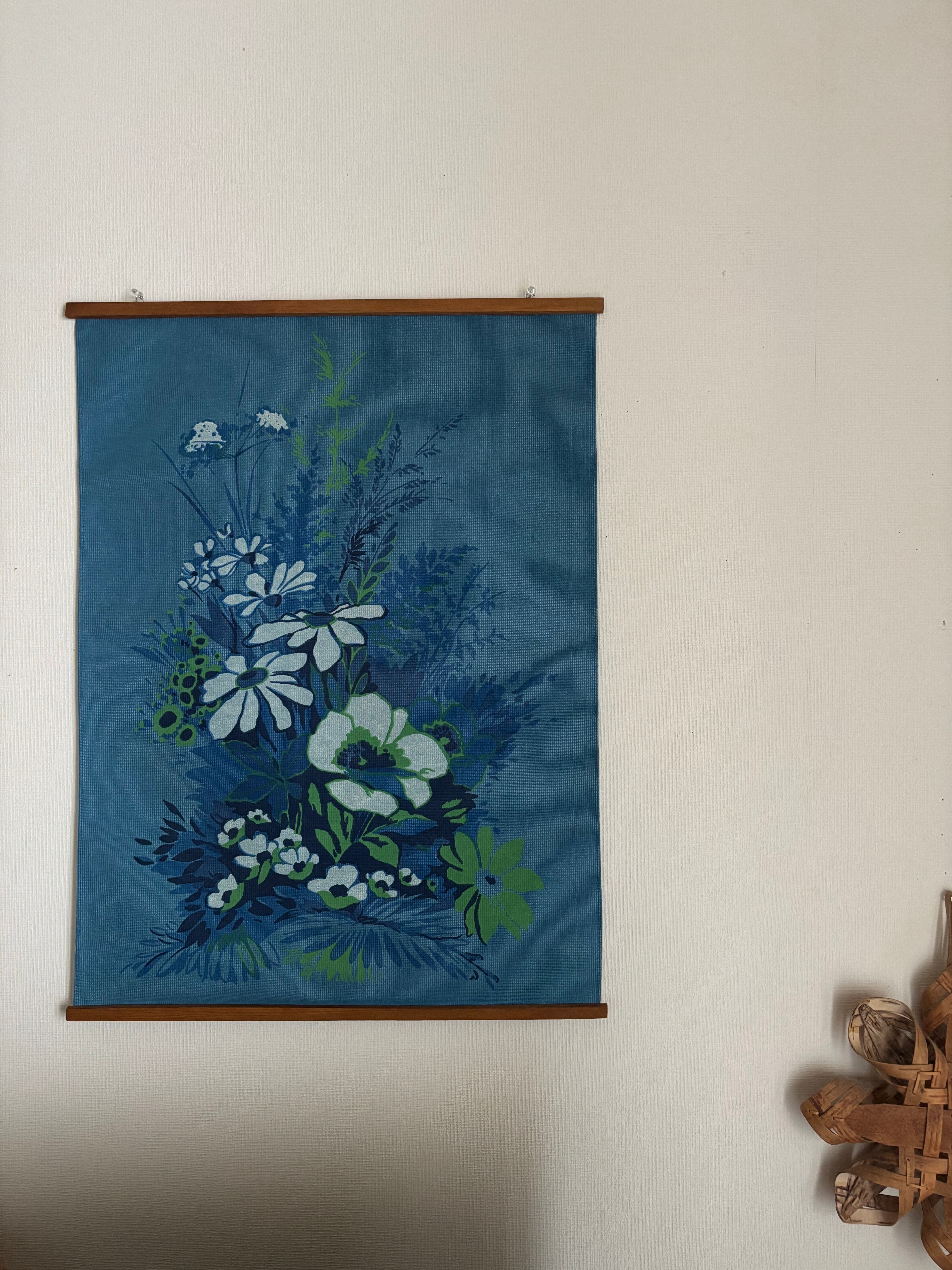 お花が描かれた大きめのリネンタペストリー♫
