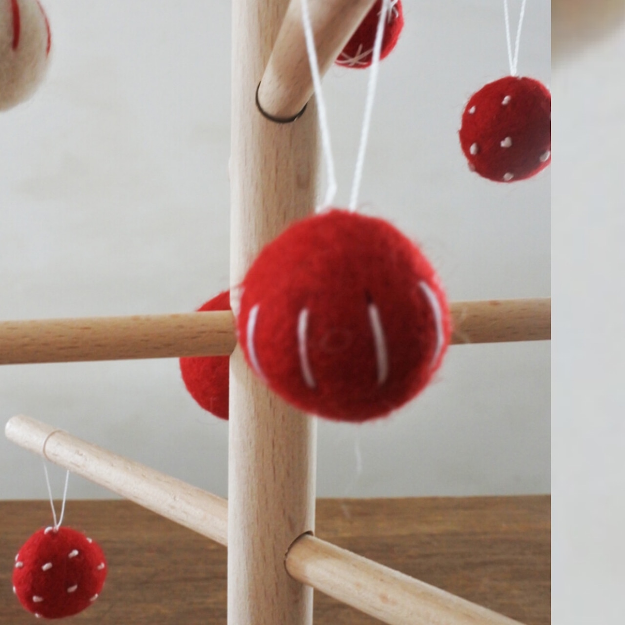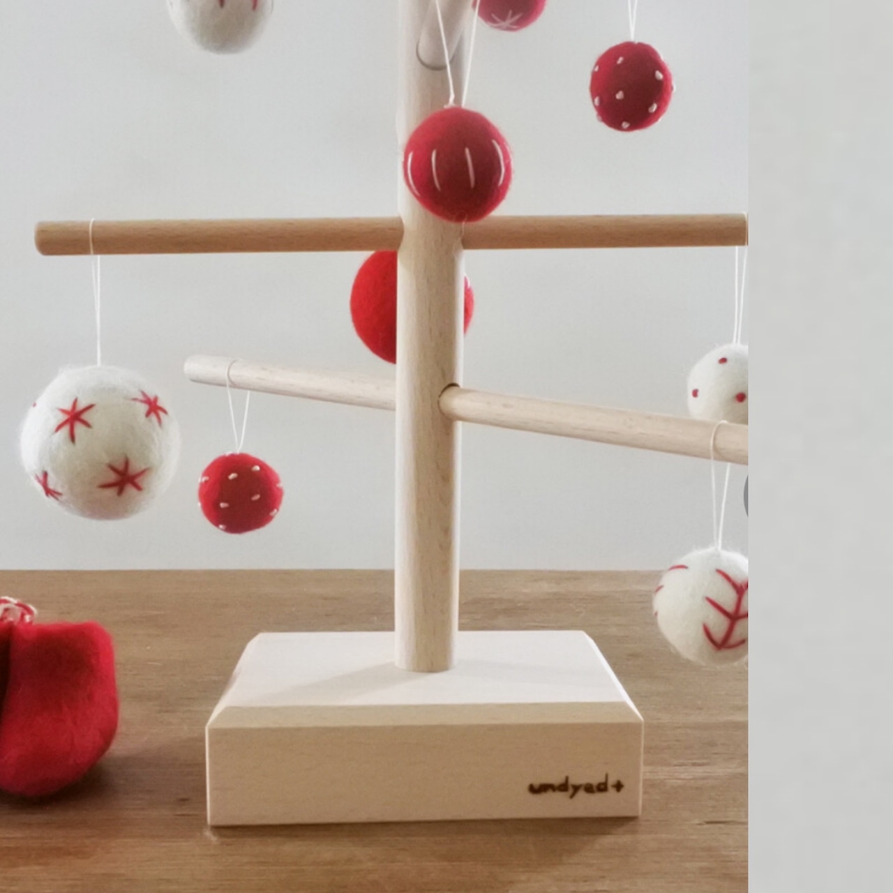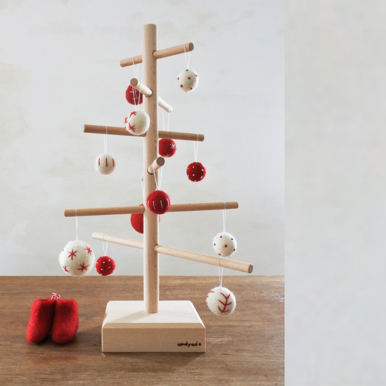 ◉ご予約販売◉木製クリスマスツリー+羊毛フェルトオーナメント(13個付き) 組み立て式/赤