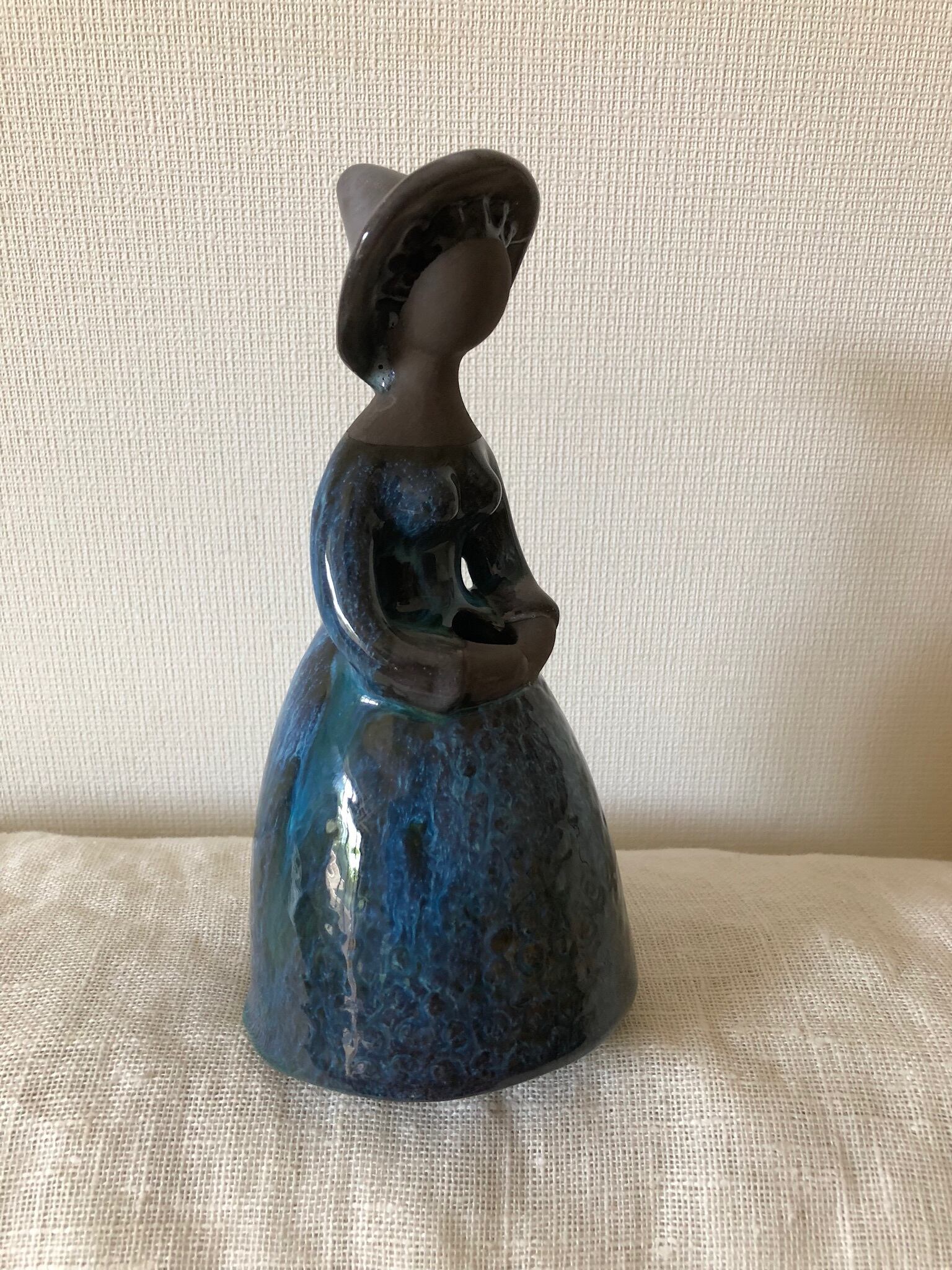洋服の艶やかな釉薬と、顔と手の素焼きの組み合わせが素朴で可愛らしい一品。