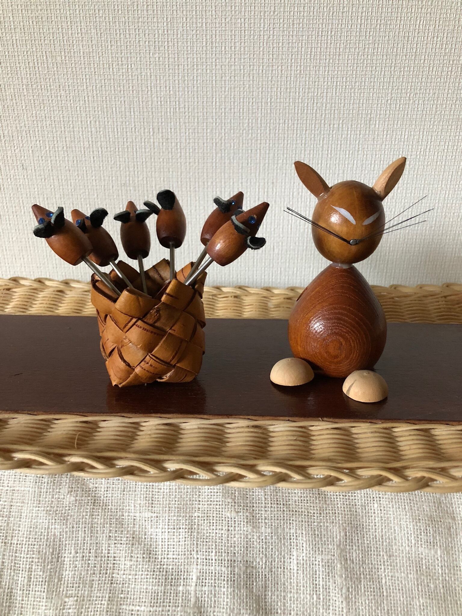 北欧 デンマーク チークの猫のホルダーとネズミのピックのセット ヴィンテージ