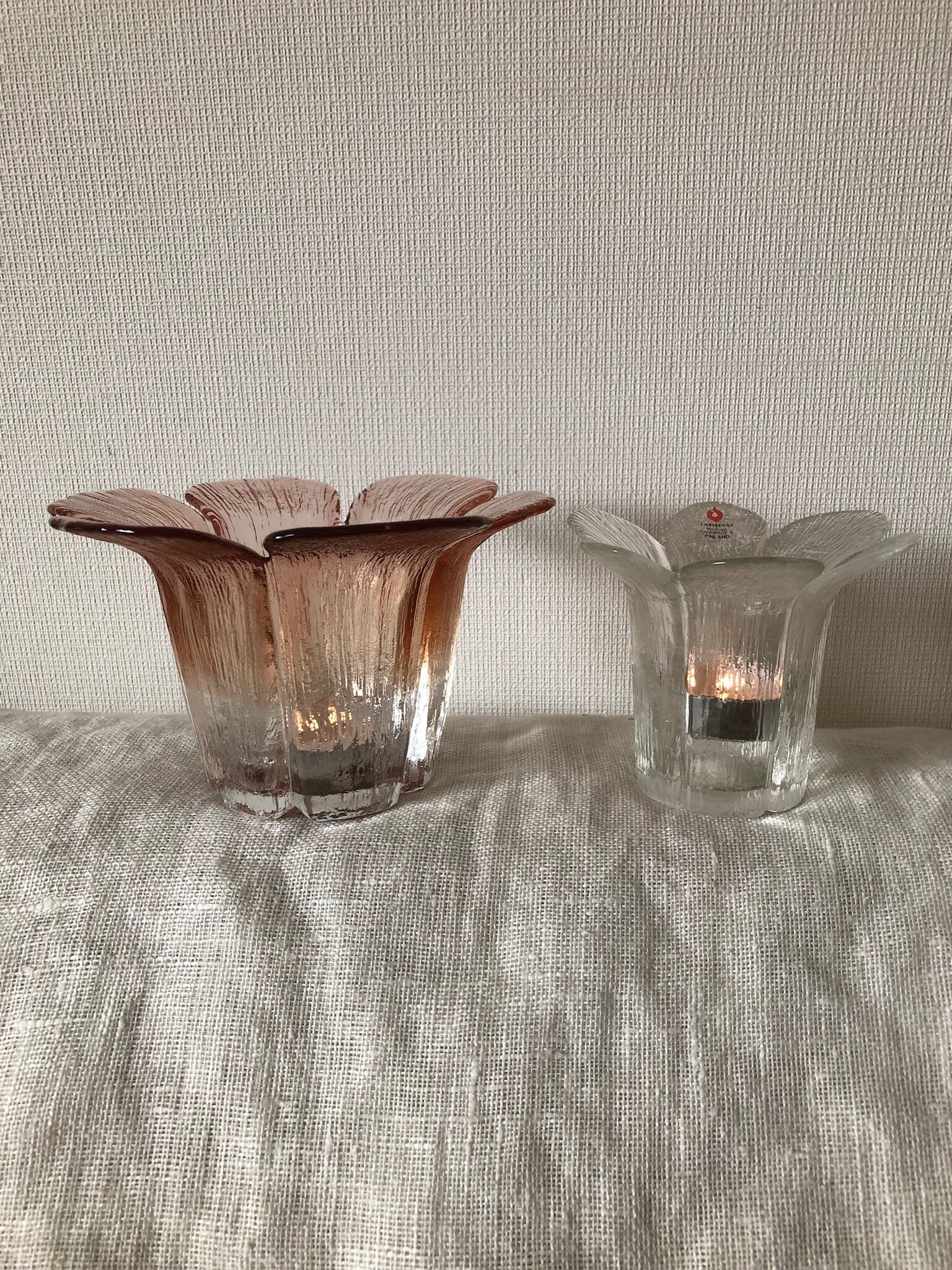 Teralehtiシリーズのガラスのキャンドルホルダーです。Teralehtiとは花びらの意味。その名の通り、お花がパッと開いたようなデザインが可愛らしいタイプ。