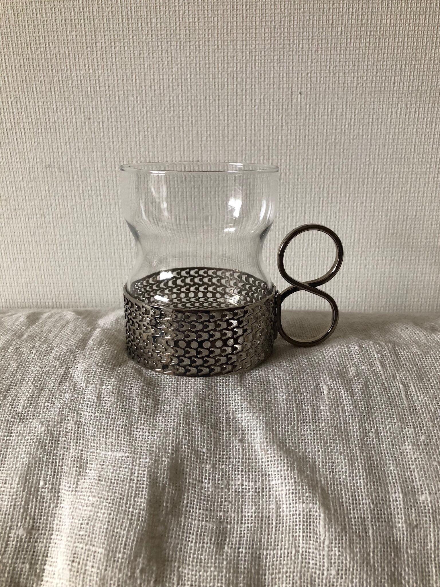 シルバーのグラスホルダーとクリアのガラスがシンプルで素敵なホルダー付グラス。