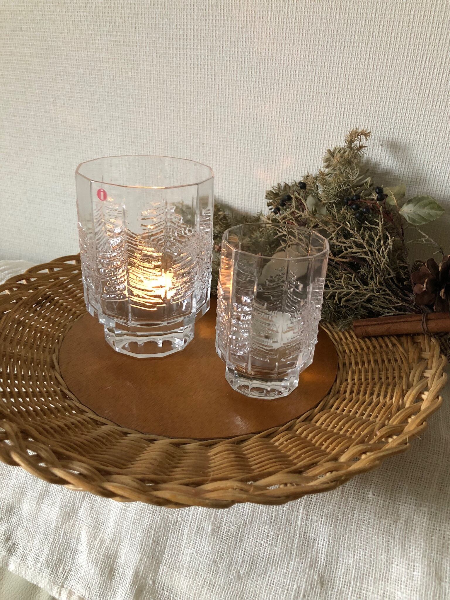 グラスですが、キャンドルホルダーとしても使って頂いても。グラスタンブラーなので、厚みがあまりないぶん、モミの木の柄がより一層際立って見えます♫