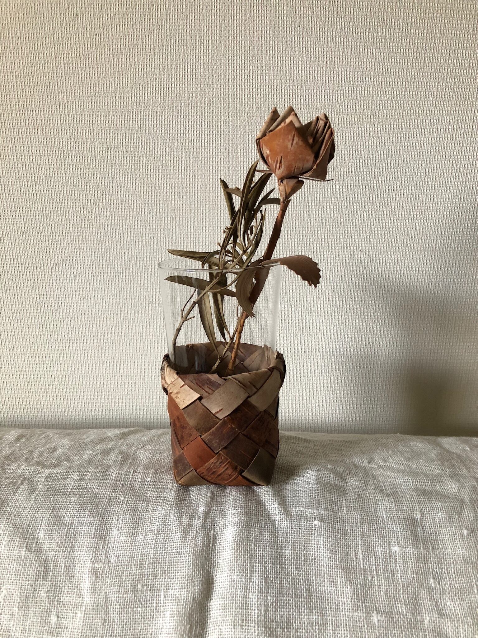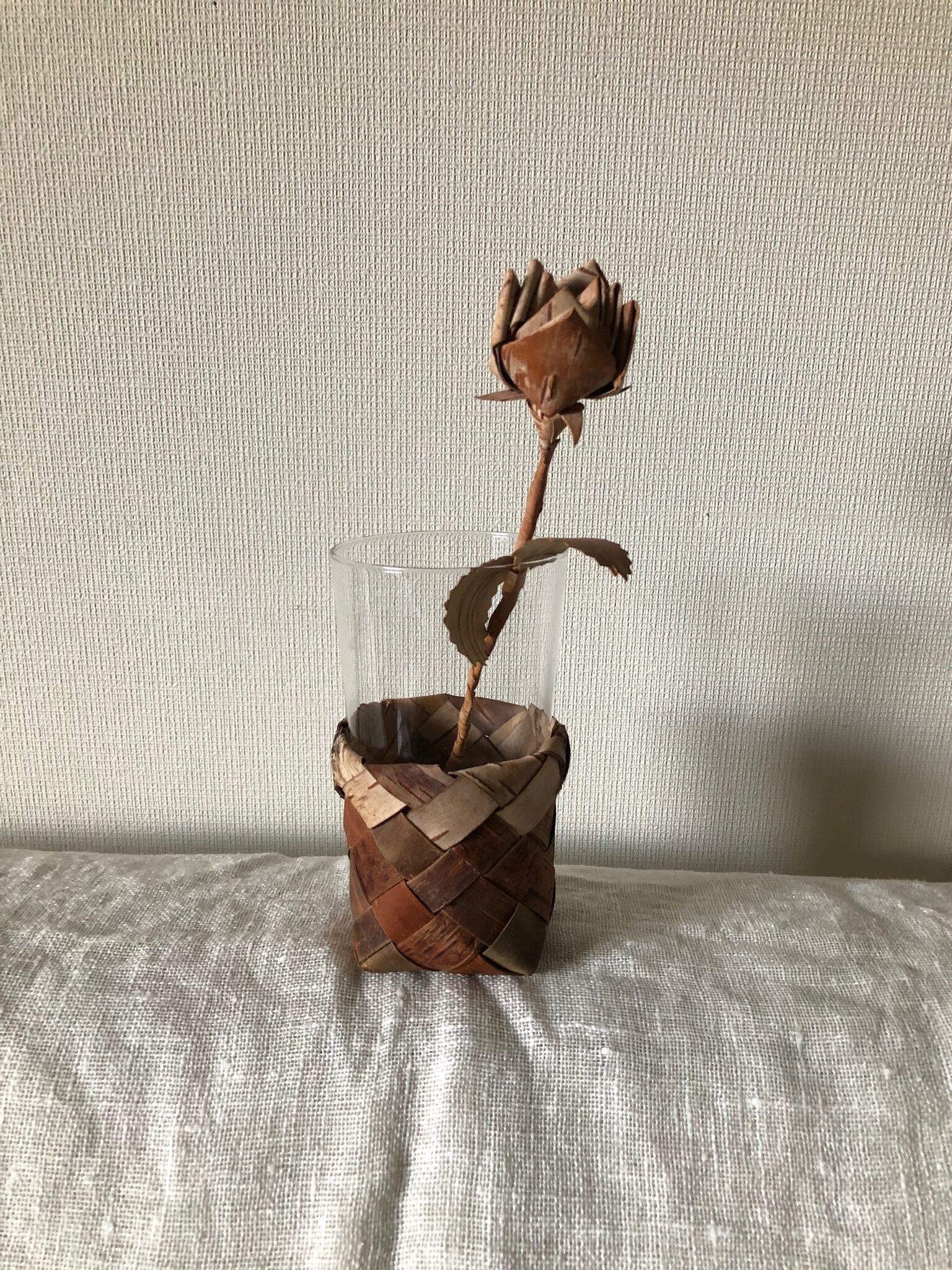 グラスですが、背が高いので、フラワーベースとして使って頂いても♫ 白樺のバラなど合わせるととても素敵です。