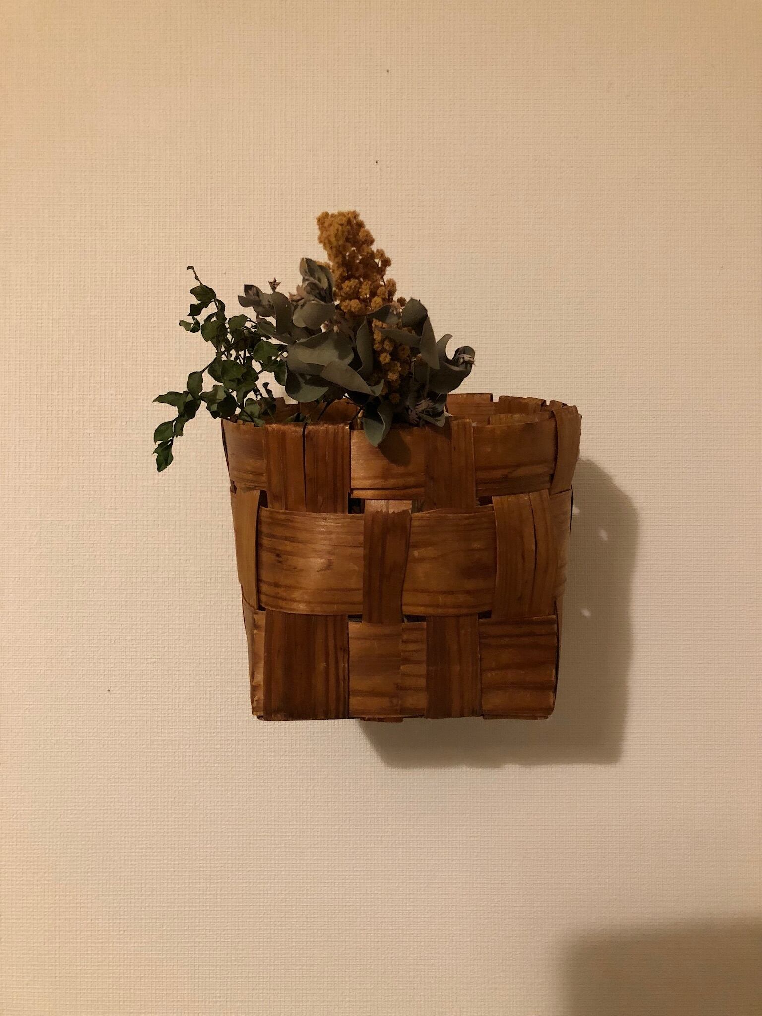 中に観葉植物を入れたり、ドライフラワーとも相性抜群♫ 壁掛けですが、普通にカゴとしてお使い頂ける形です。