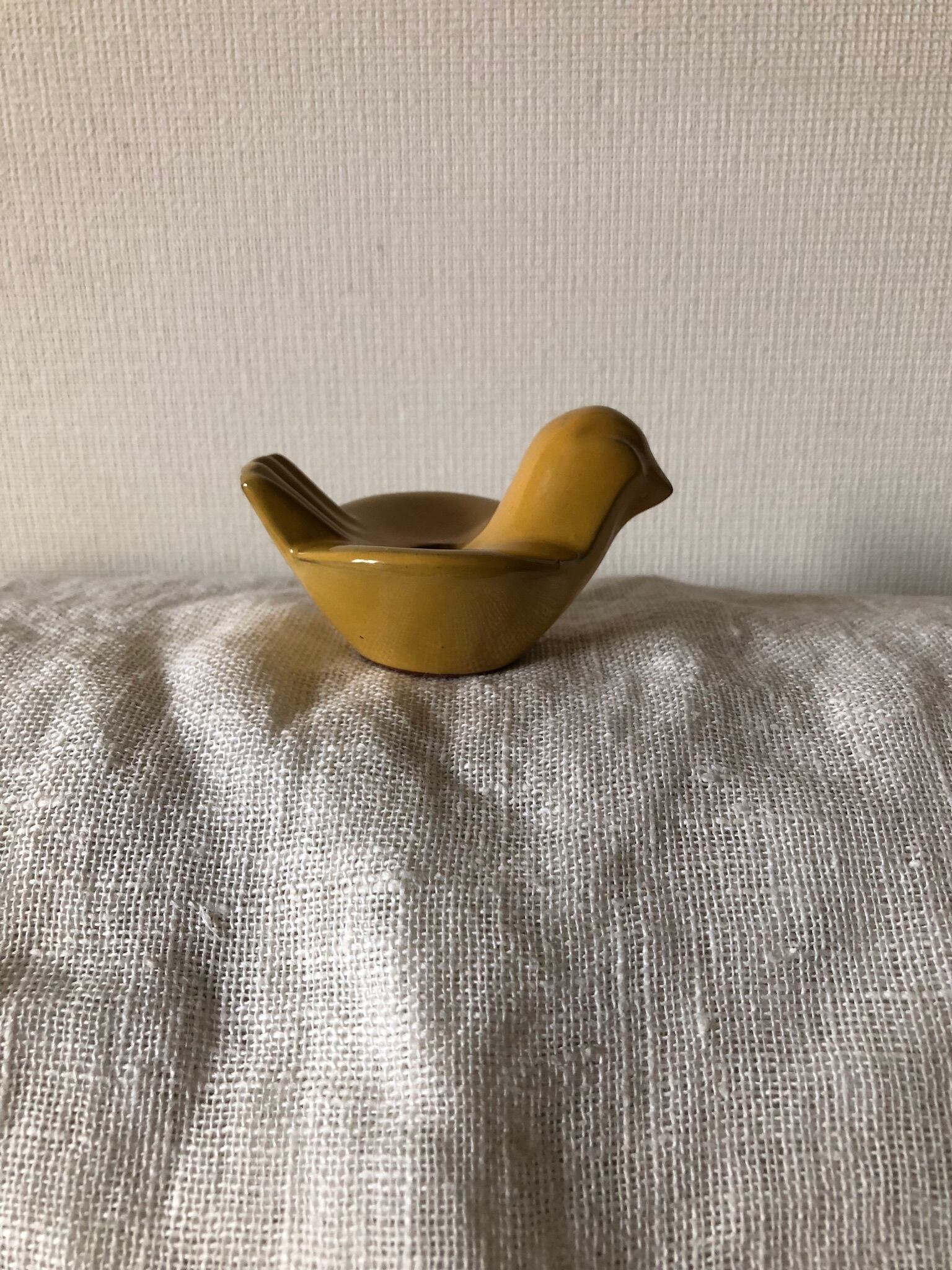 黄色の鳥が可愛いらしい陶器のキャンドルスタンドです。