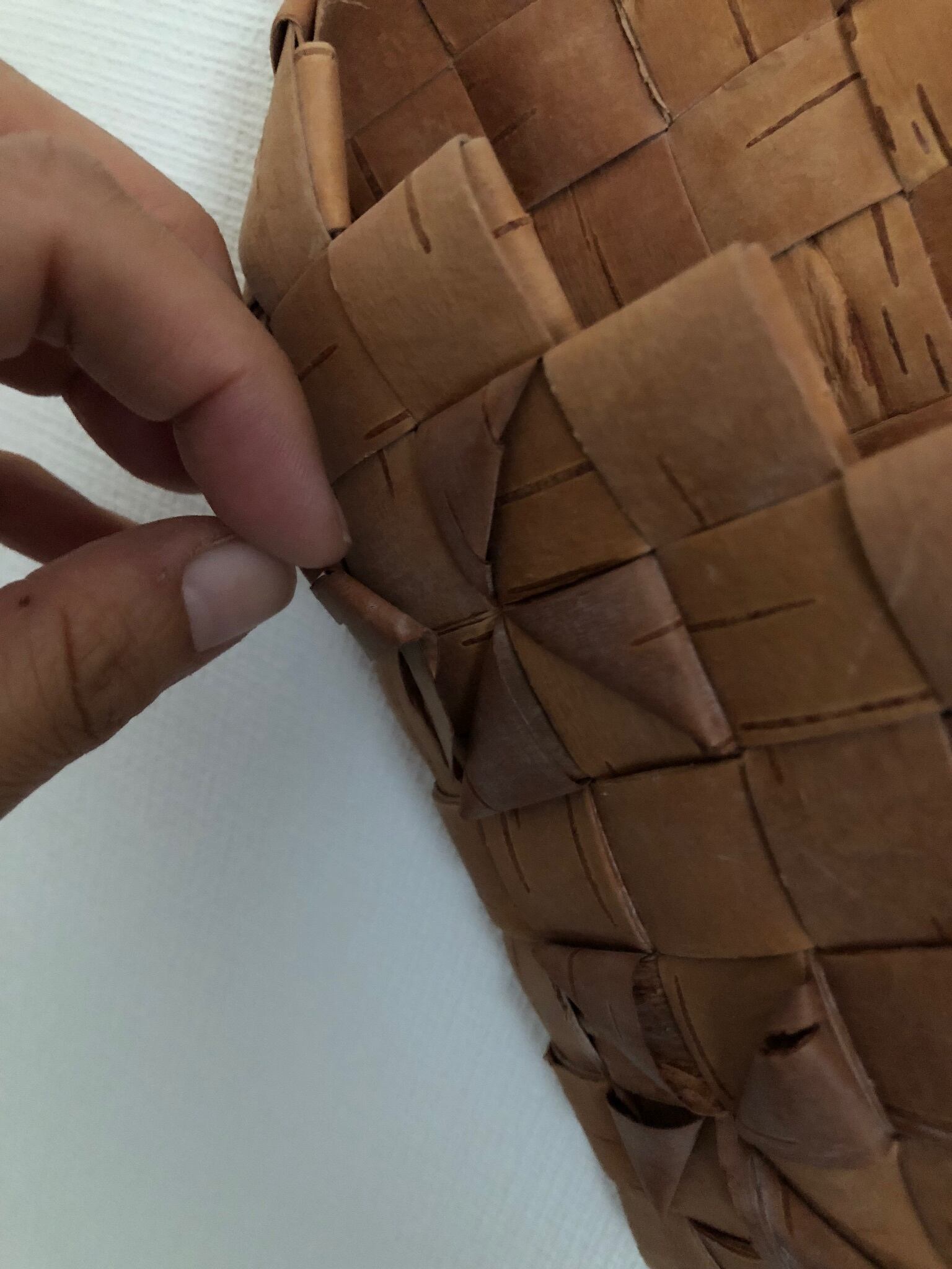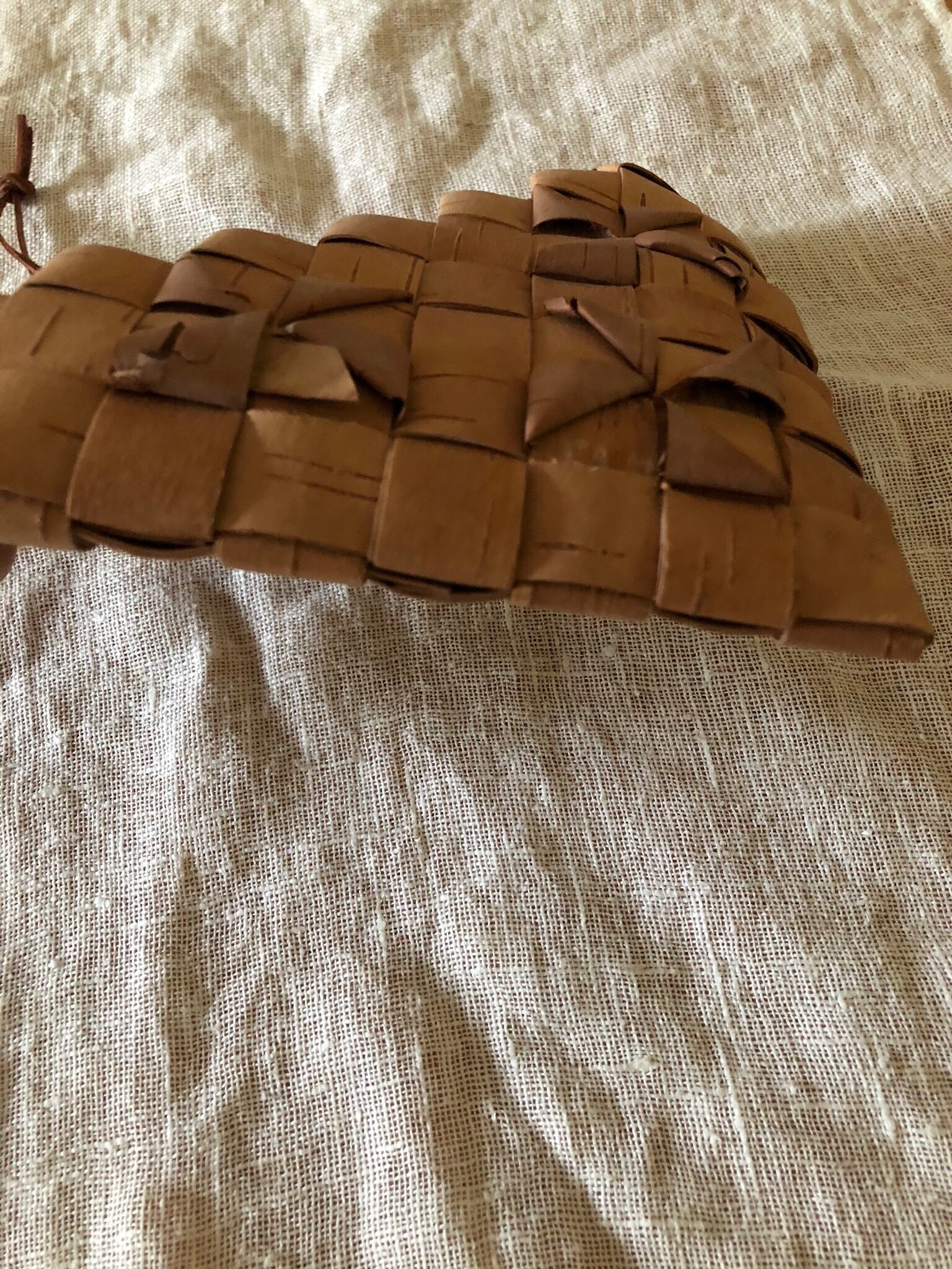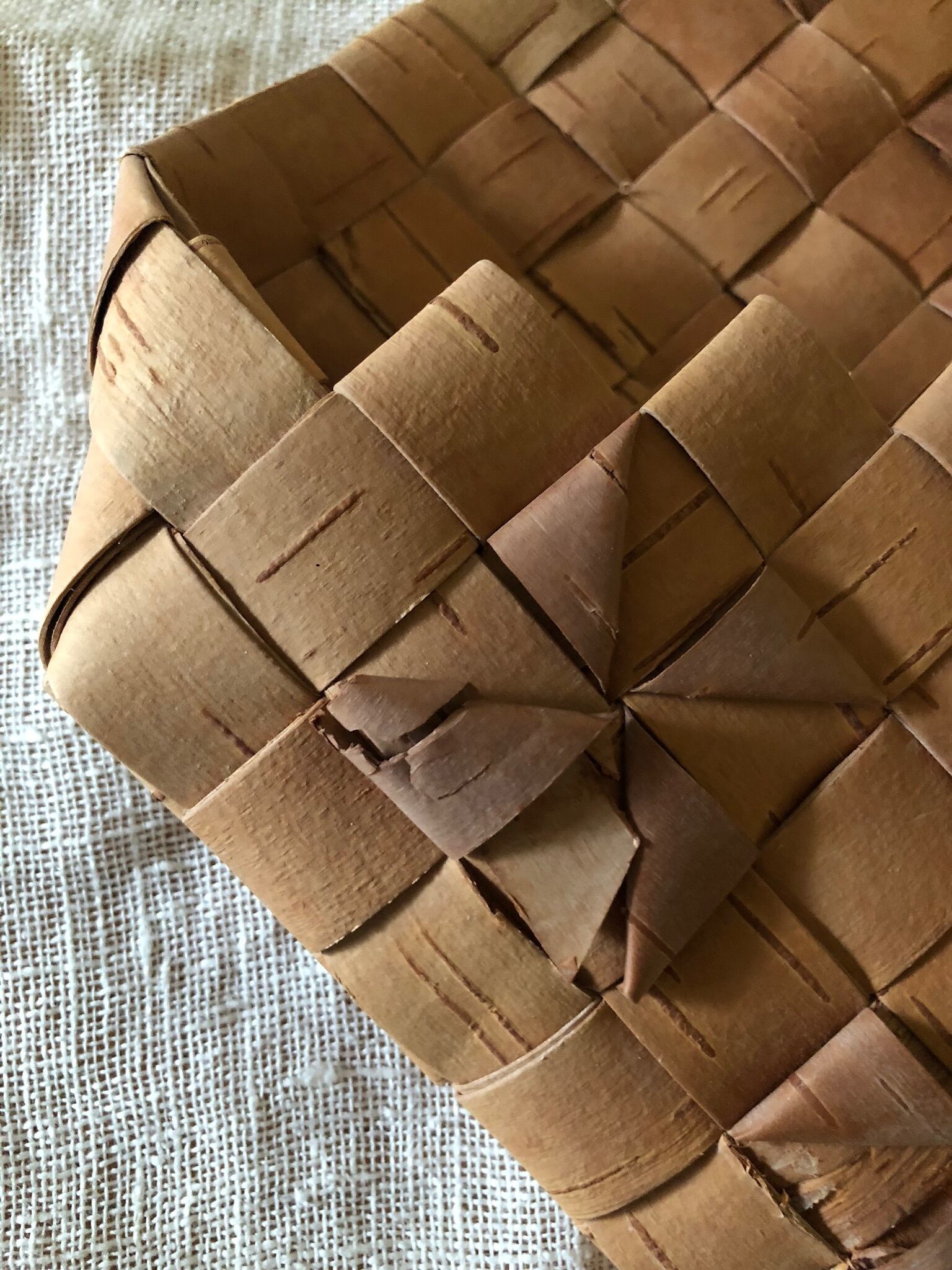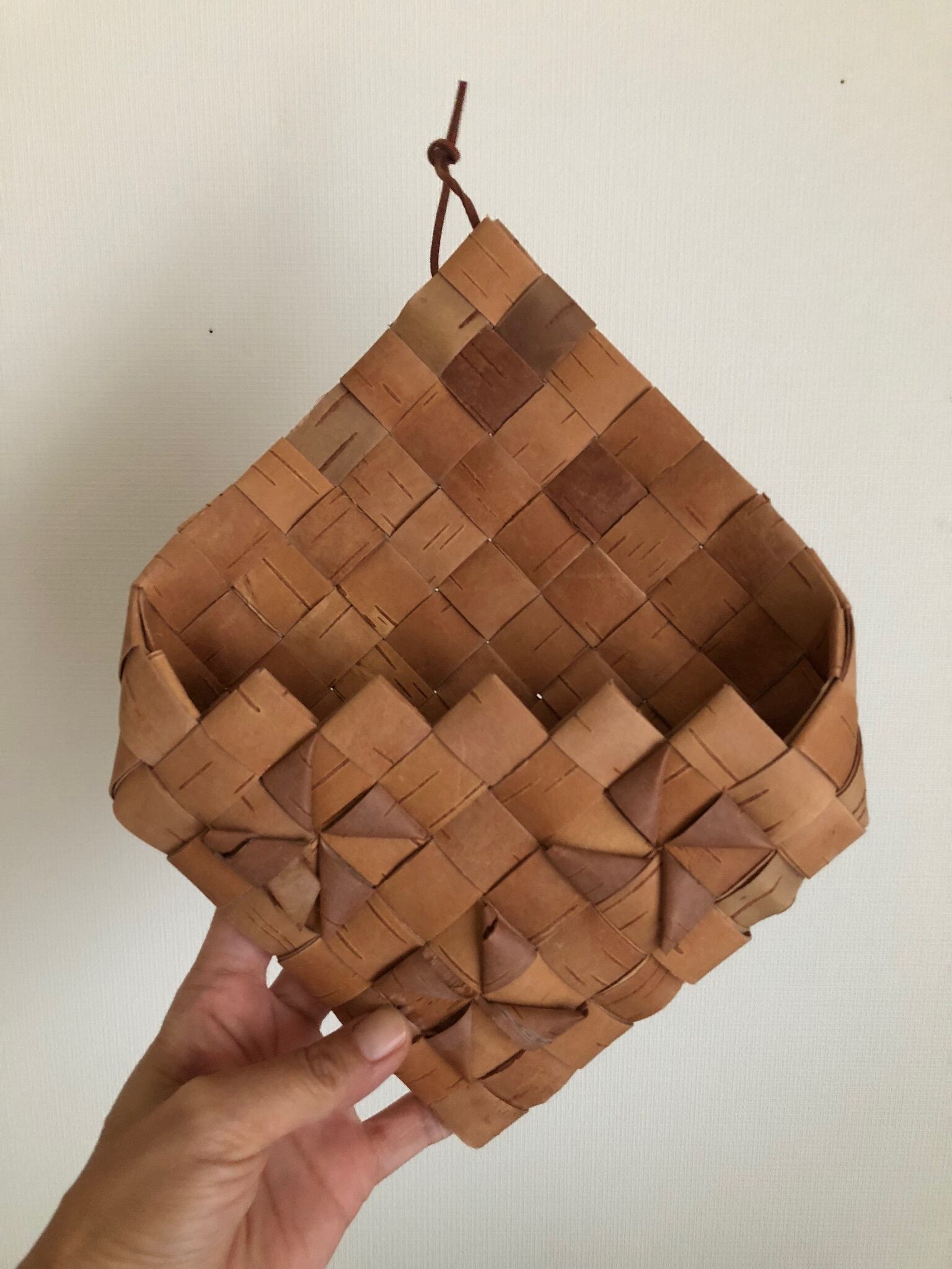 中にドライフラワーを入れたり、開口部が大きいので、キッチンの壁にかけて、クロス類を入れたりと、用途はいろいろ♫ しっかりした白樺の皮で編まれています。