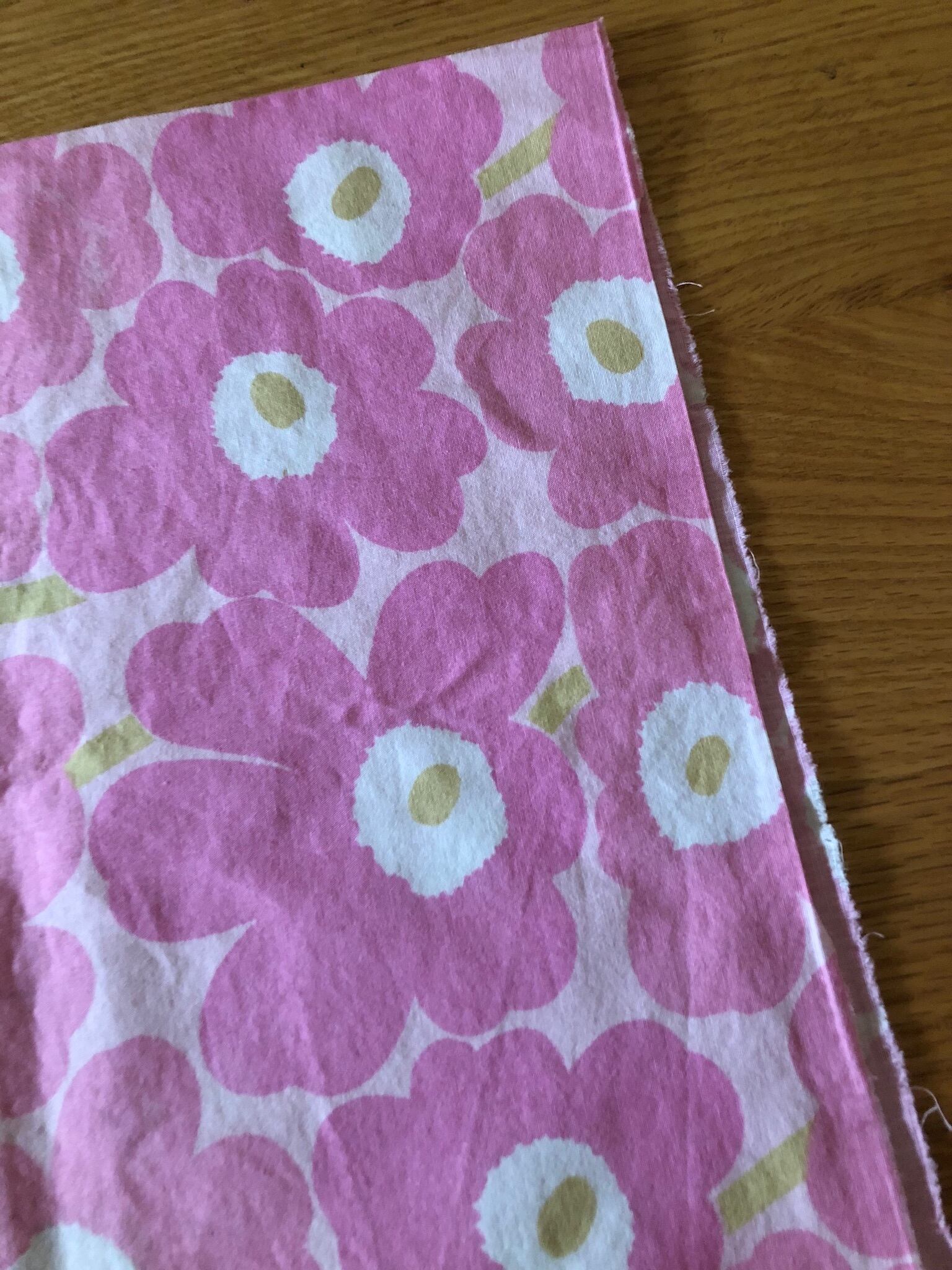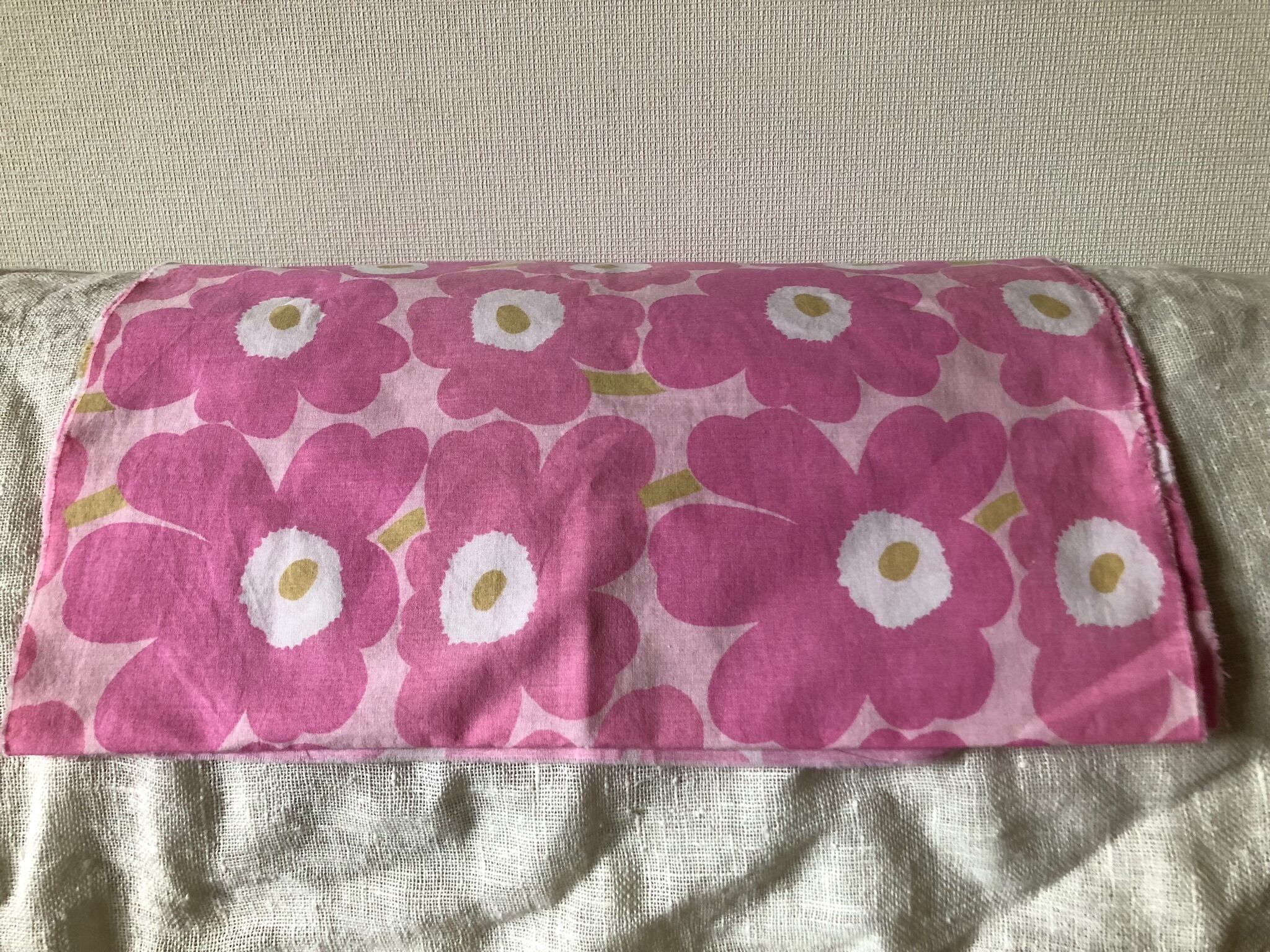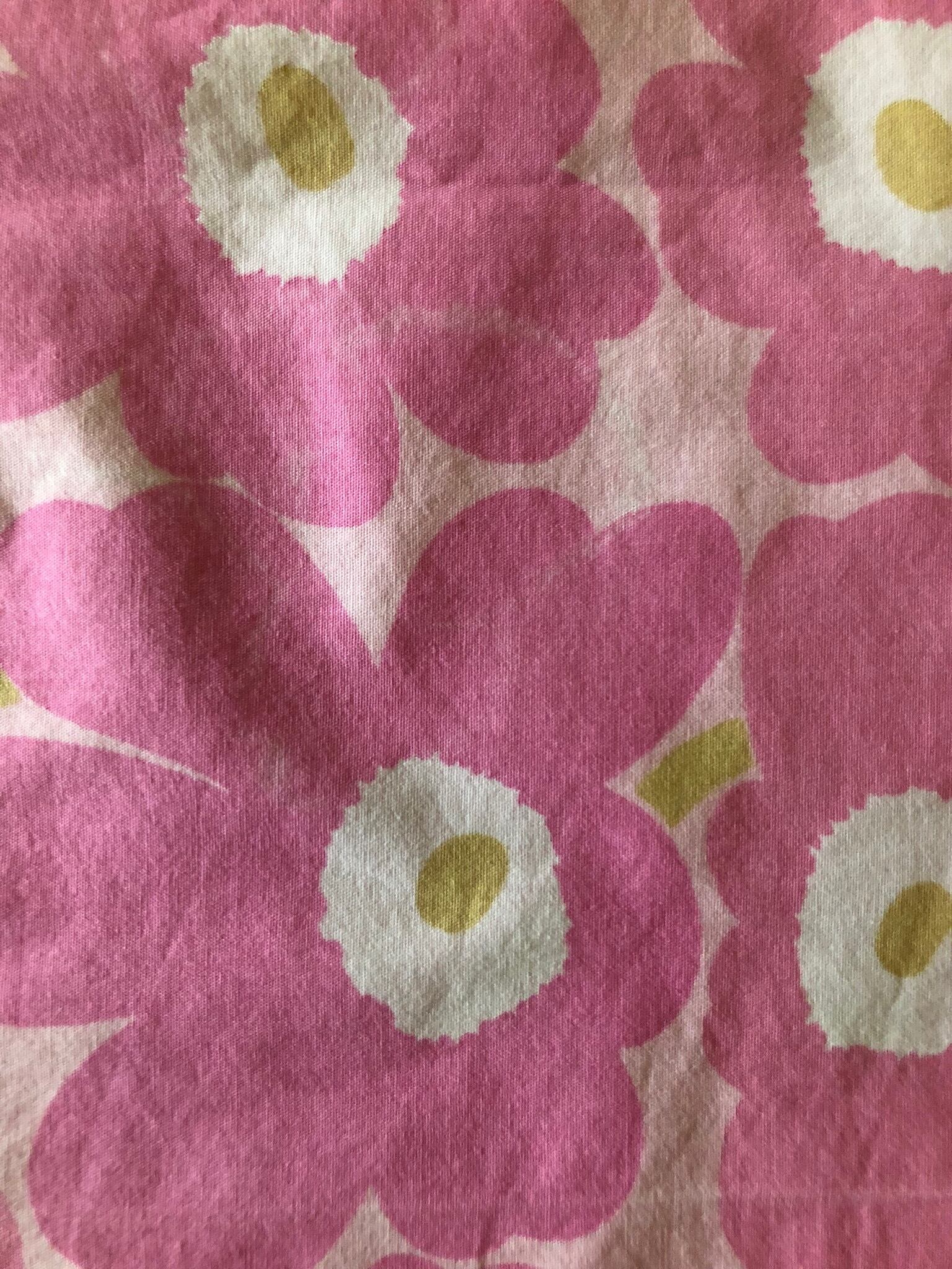 北欧 marimekko マリメッコ MINI UNIKKO ミニウニッコ (MAIJA ISOLA マイヤ イソラ デザイン)の廃盤カラー、ピンクのヴィンテージの生地になります。