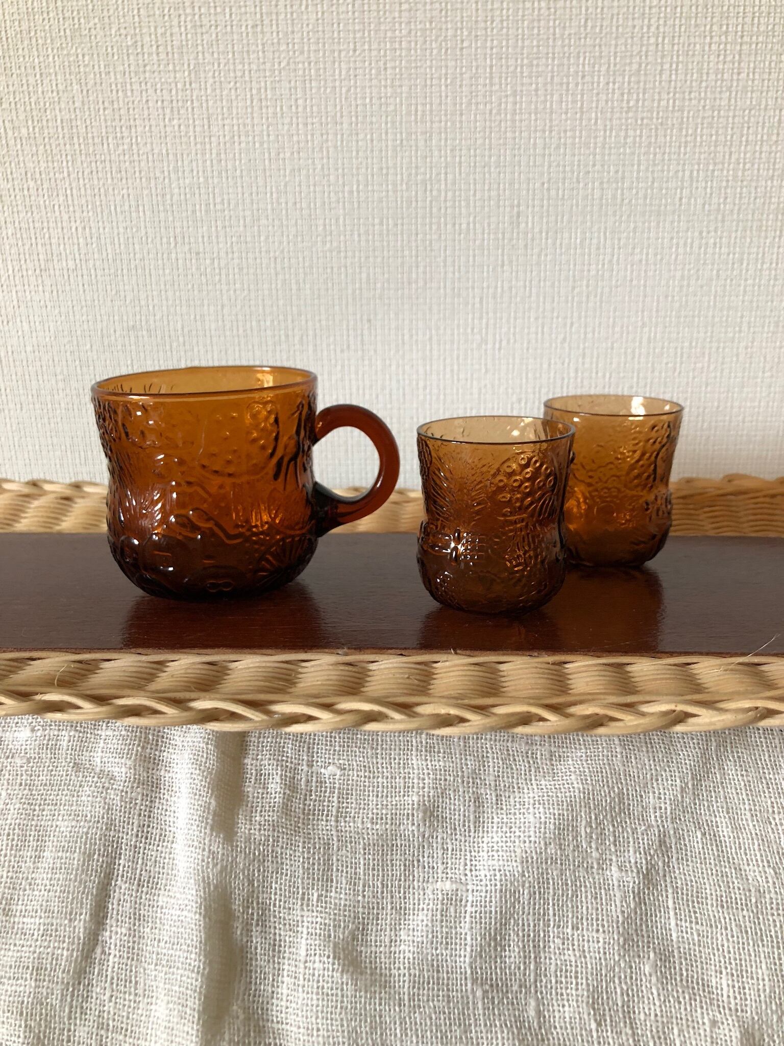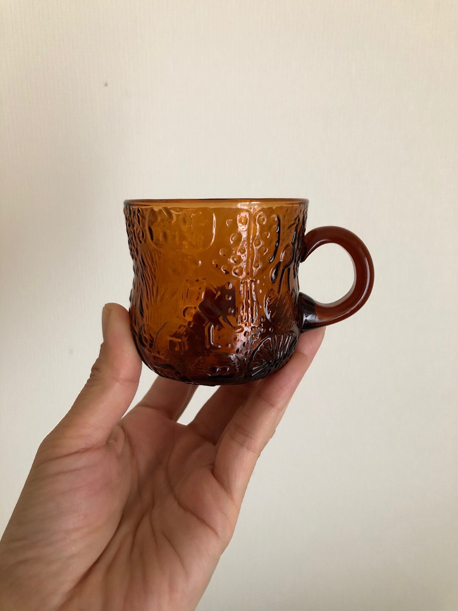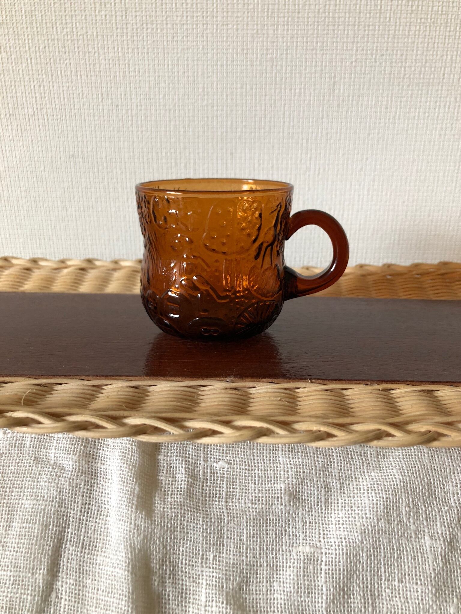 可愛らしくユニークなデザインですが、ブラウンの色味がシックで素敵な小ぶりの取っ手付きグラスです。色違いで揃えても可愛いシリーズ。ブラウンはクリアに比べてると、製造期間も短かくレアなタイプです♫