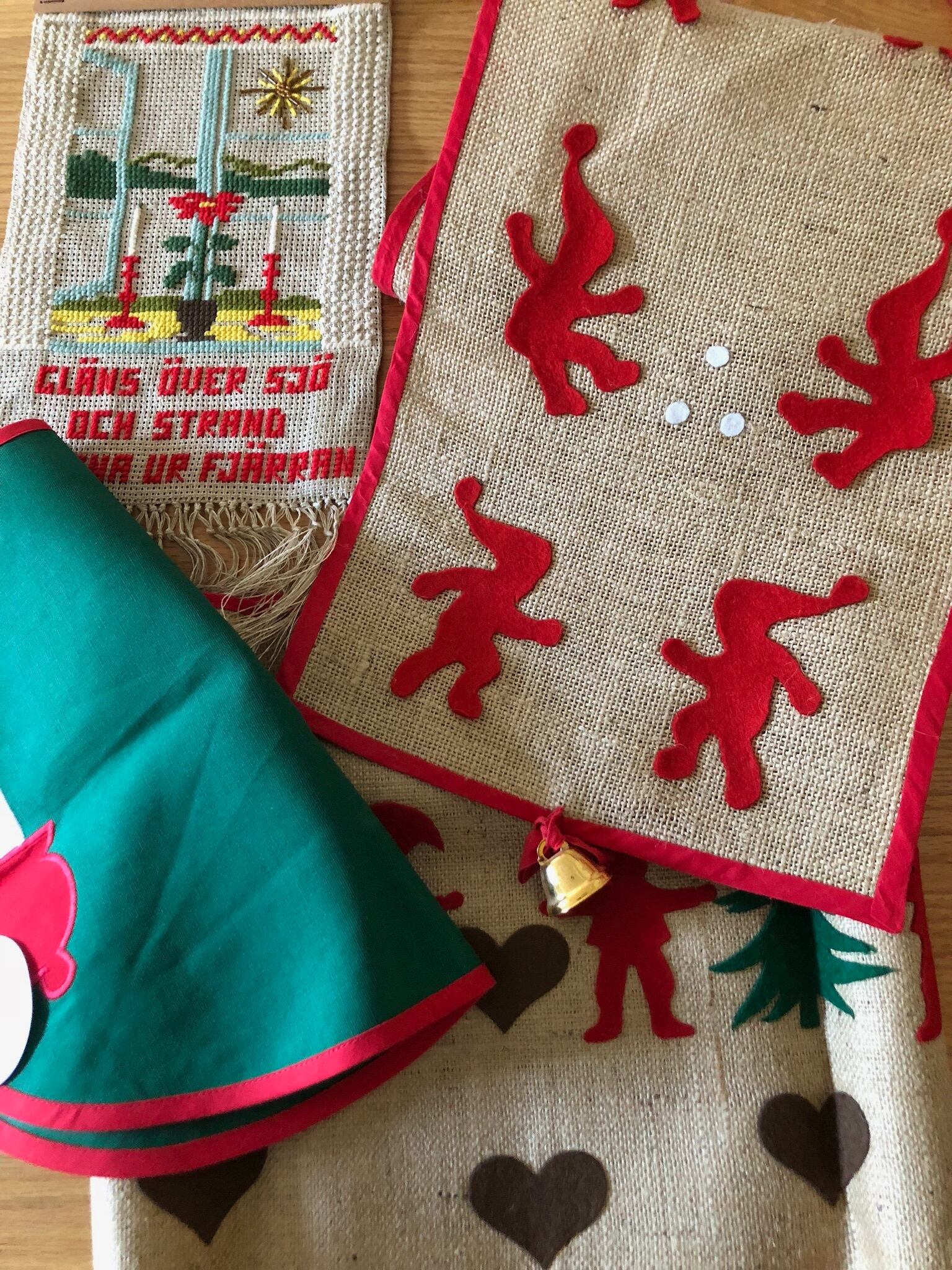 北欧ヴィンテージのクリスマスのタペストリー、2点とクロス2点をセットにしたお得な福袋になります♫♫