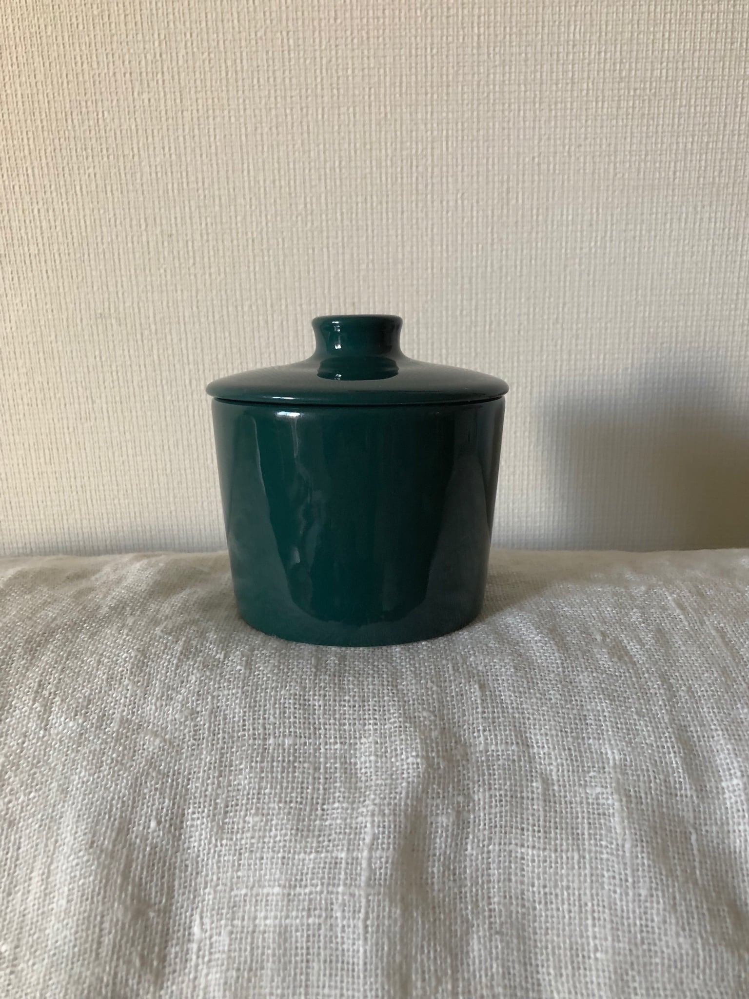 深い濃いグリーンの色味が、シックで素敵なシュガーポット。シンプルなデザインが、どんなテーブルにも合いそうです。シュガーポットですが、小物入れにしても♫