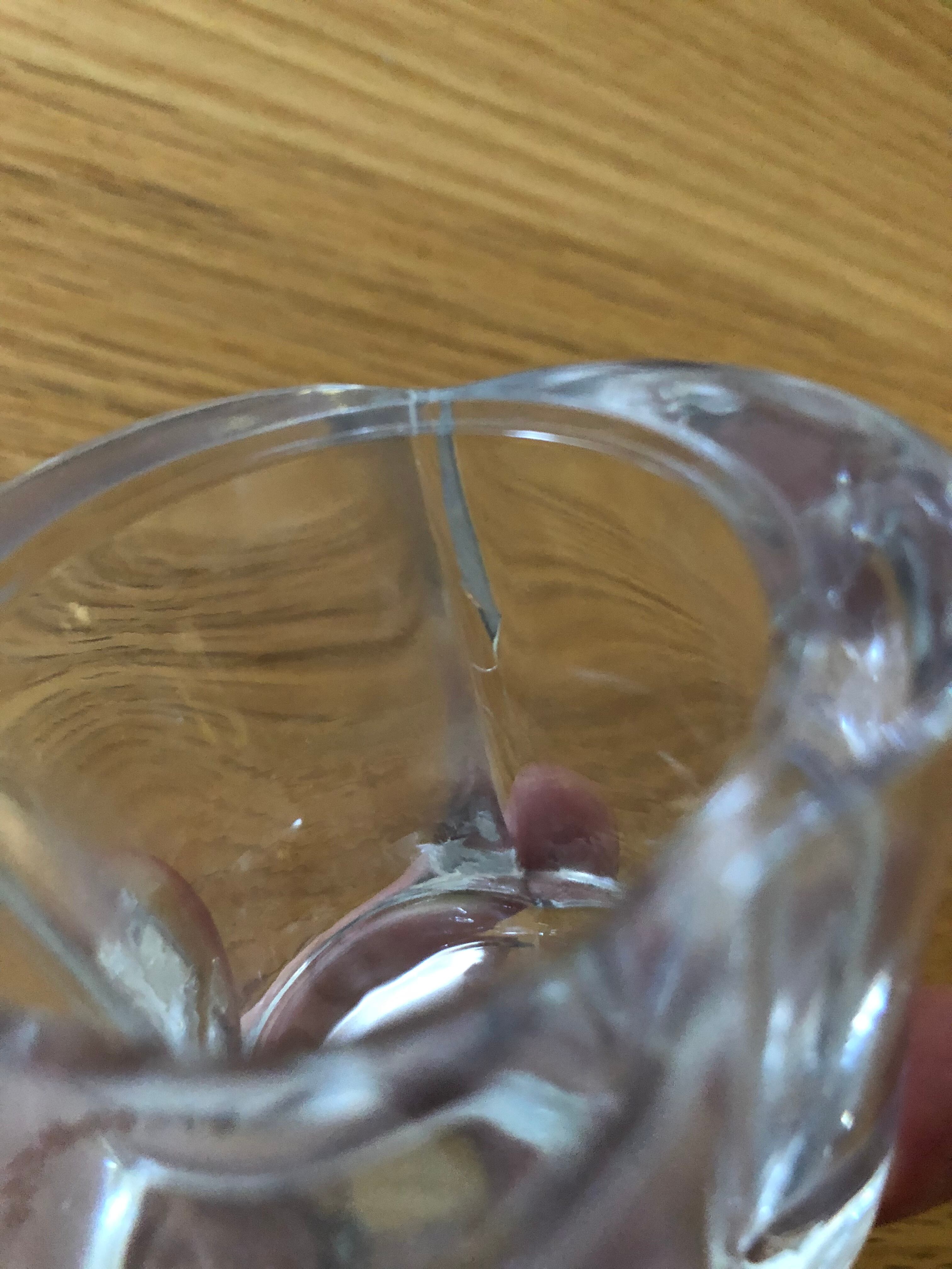 こちらは、1箇所、花びらの境目にスジが見られます。他の2箇所の境目と比べると分かりやすいです(写真 15-17枚目参照)。底に、よく見ると、ほんの少し白っぽくなってる箇所がございます。スジが少し目立つので、お値段お安くさせて頂いてます。