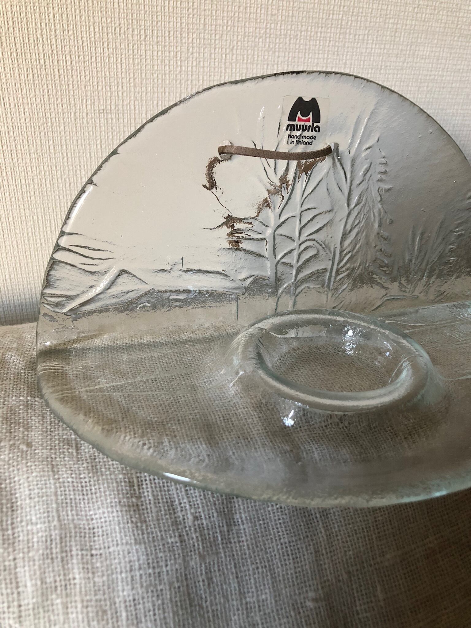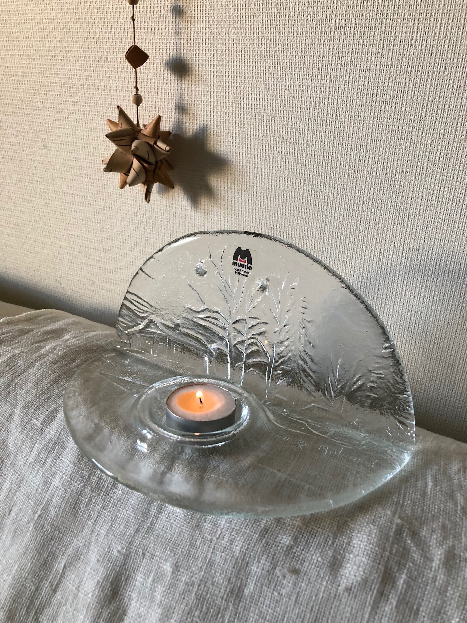 再々入荷♫ 北欧 MUURLA モミの木とおうち模様のガラスの壁掛けキャンドルホルダー 小