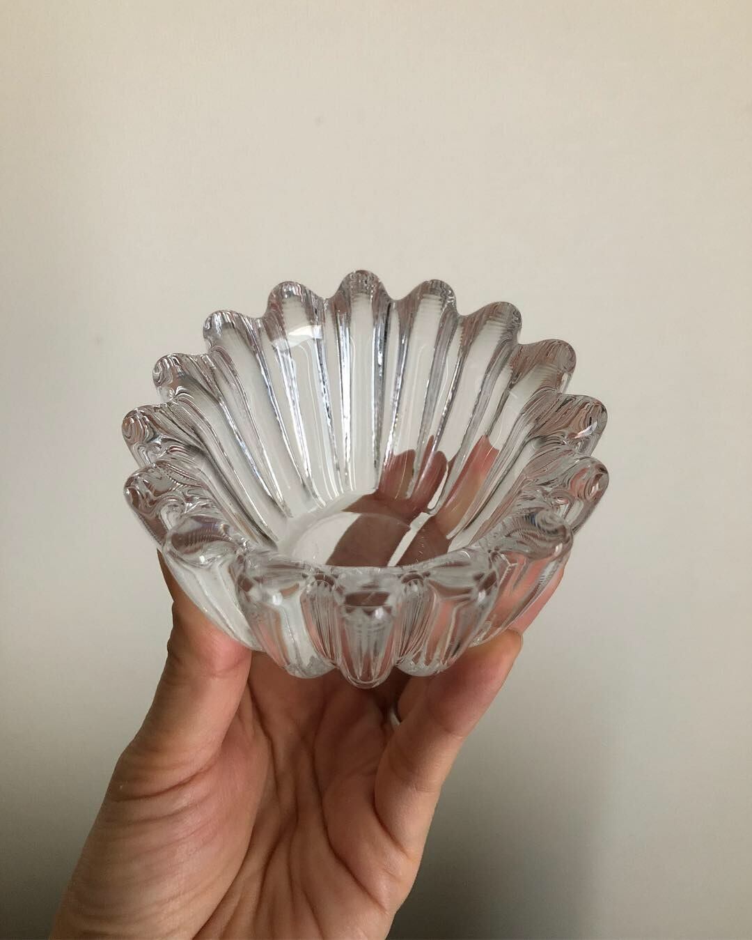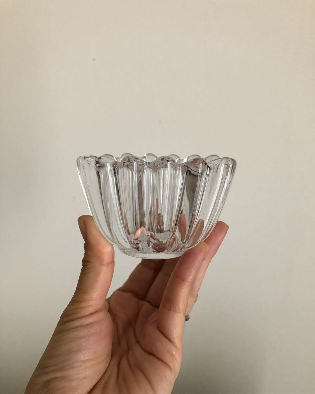 ミルククラウンのような形状がとても素敵なガラスのキャンドルホルダーです。花びらの多い、お花のようにも見えて、置いておくだけでも可愛いらしい一品♫ 真上、横、どこから見ても素敵なキャンドルホルダーです。