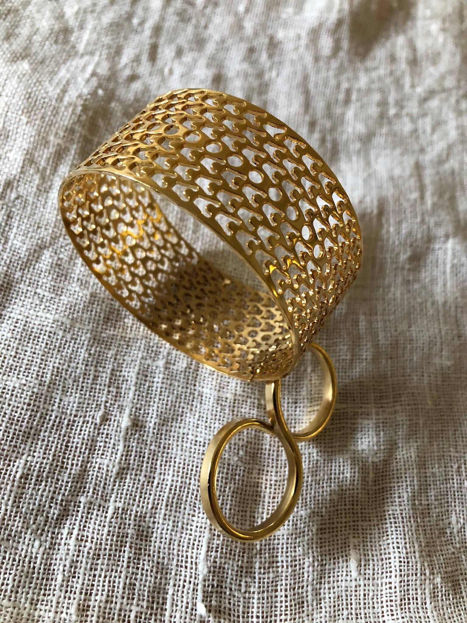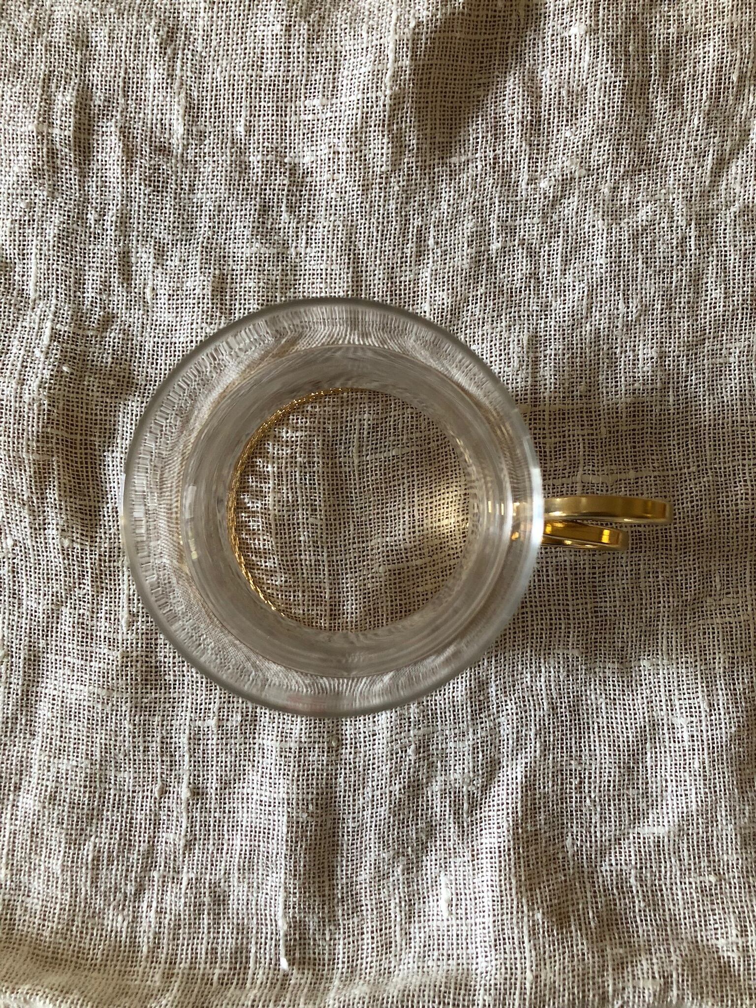 ゴールドのグラスホルダーとクリアのガラスが華やかで素敵なホルダー付グラス。