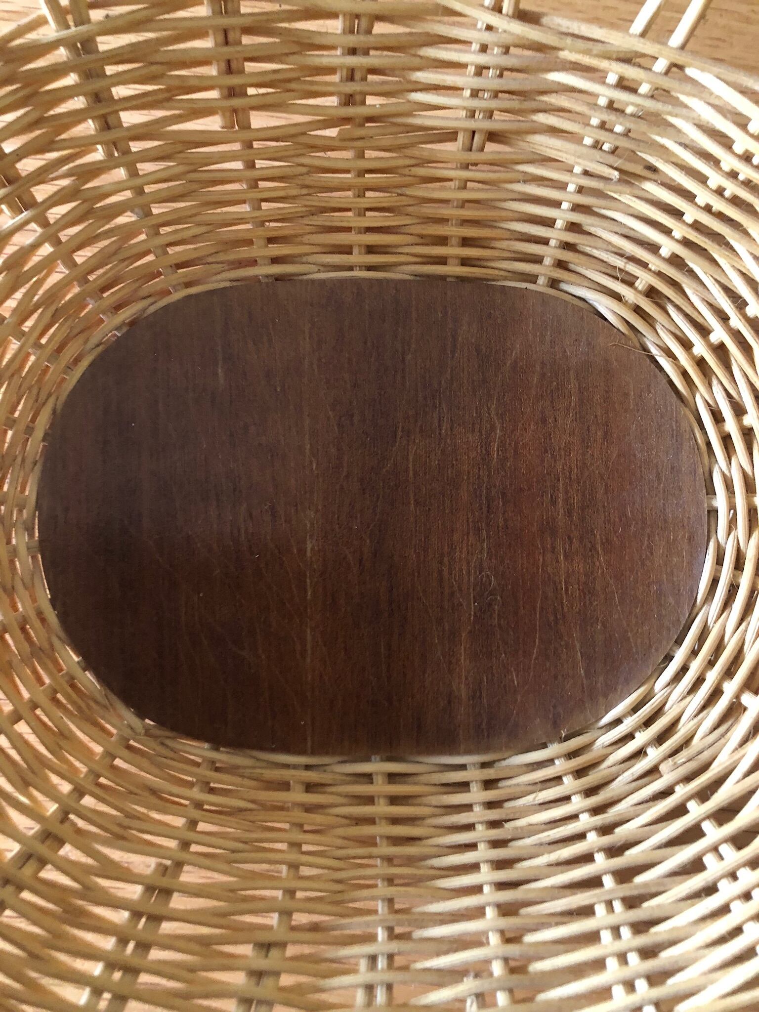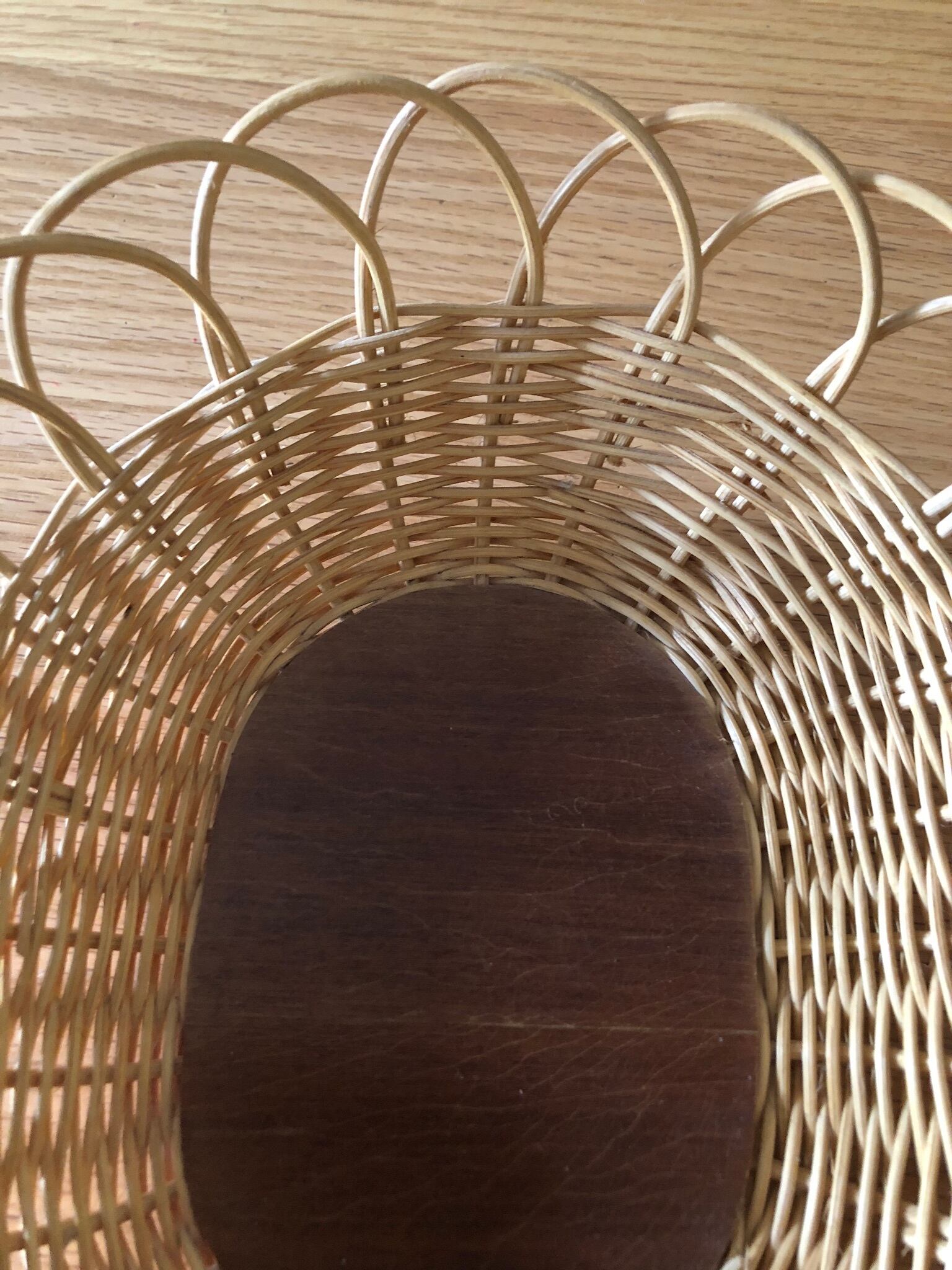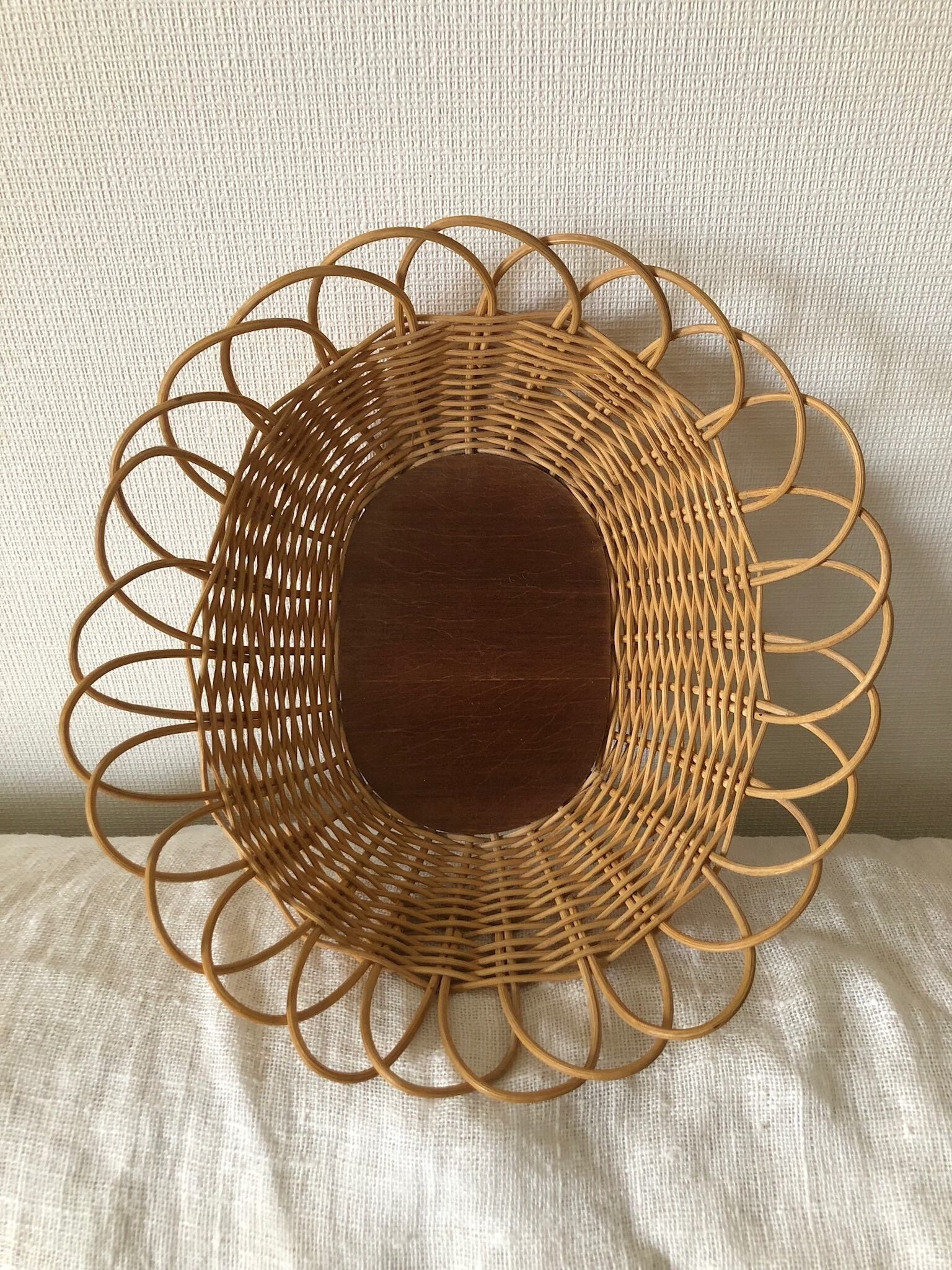 北欧 籐とチークのお花型のかご ヴィンテージ