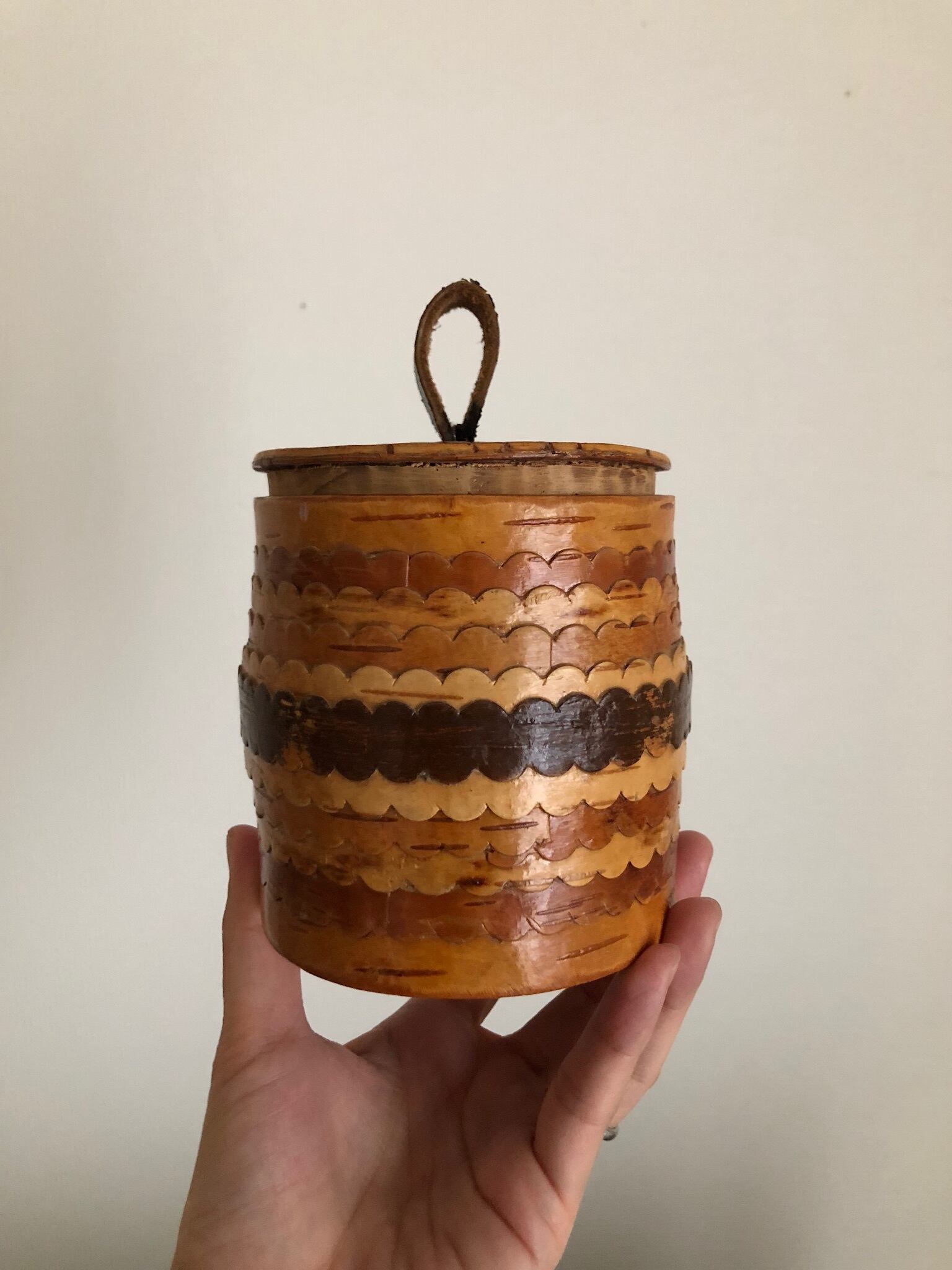 スウェーデンのヴィンテージの白樺のキャニスターになります。