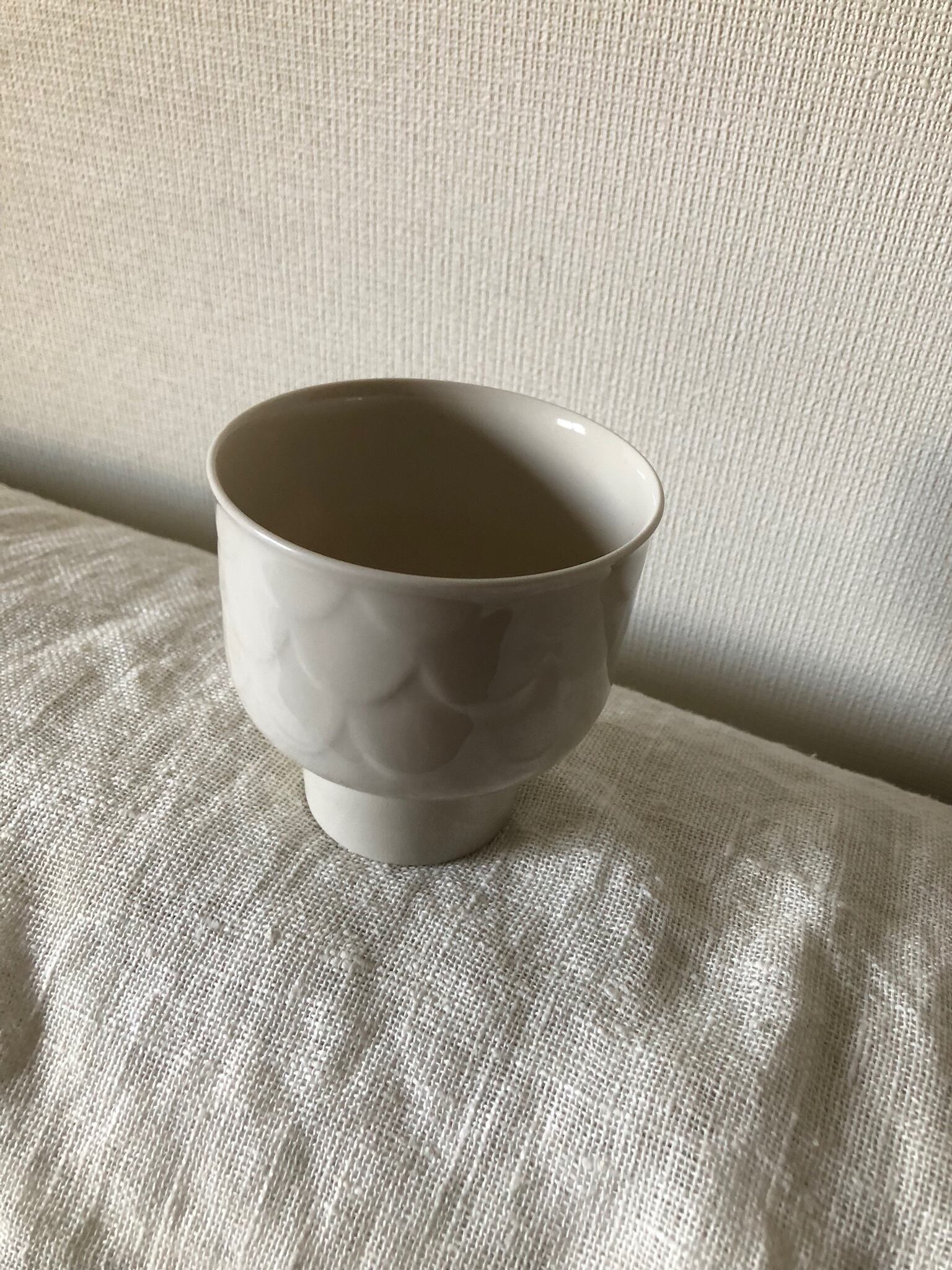 薄手の乳白色の磁器にウロコ柄が、素敵なキャンドルホルダーです。