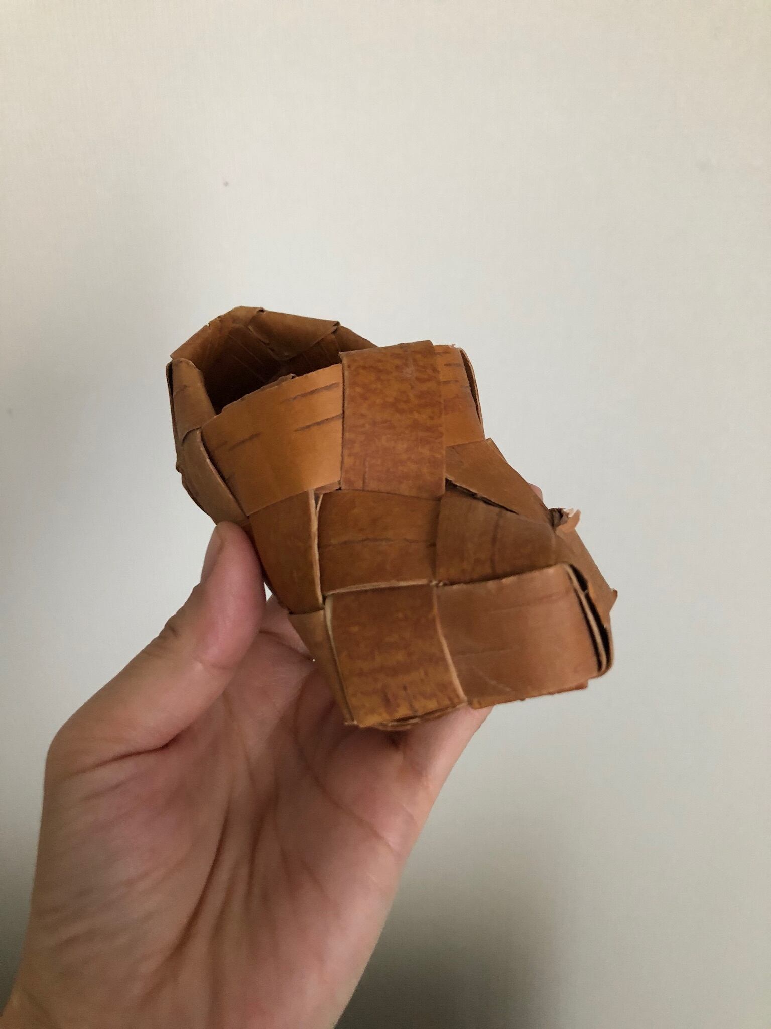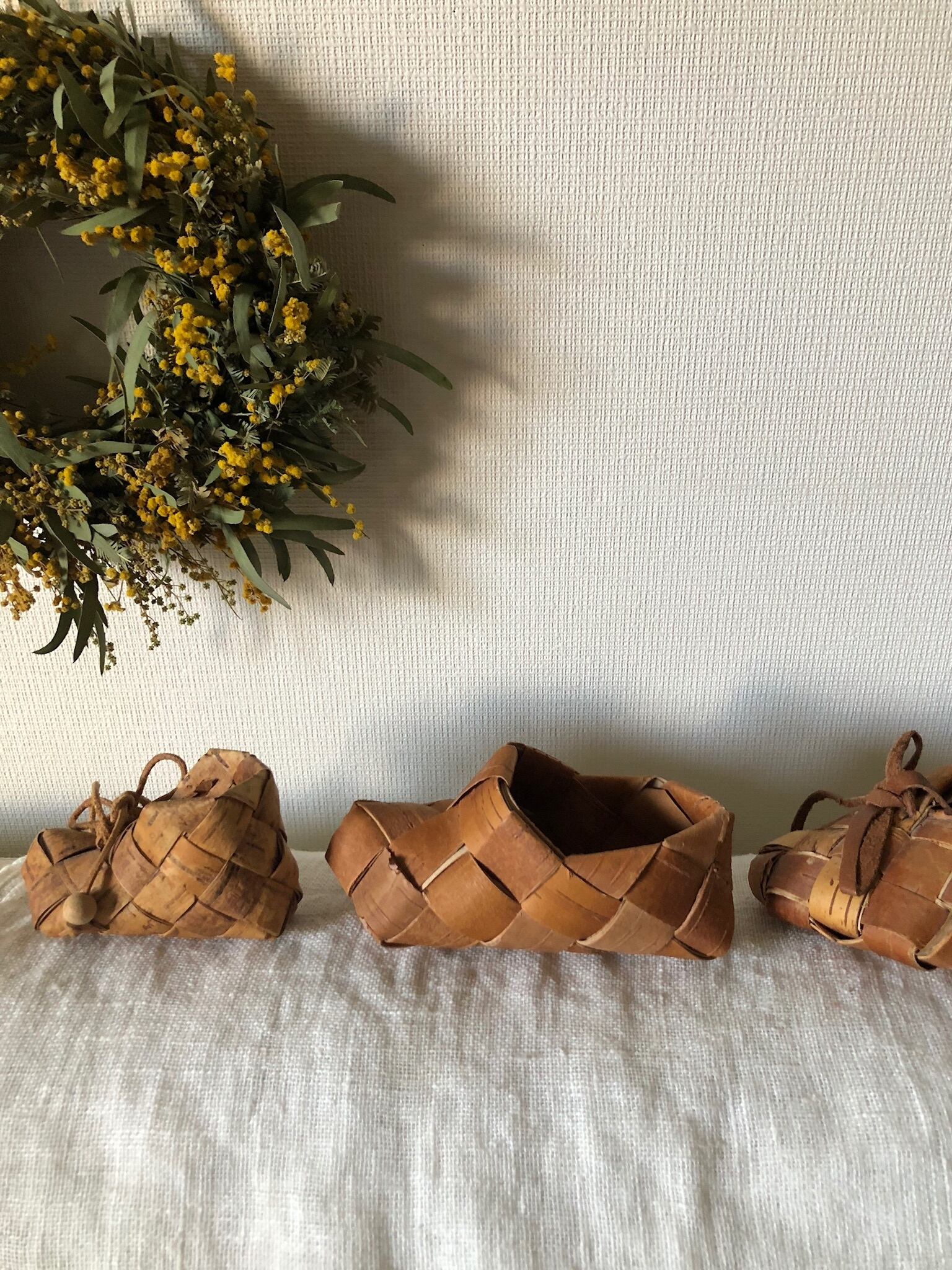 厚手の白樺の皮でしっかりと編まれており、コロンとしたフォルムが可愛らしい白樺のシューズ♫