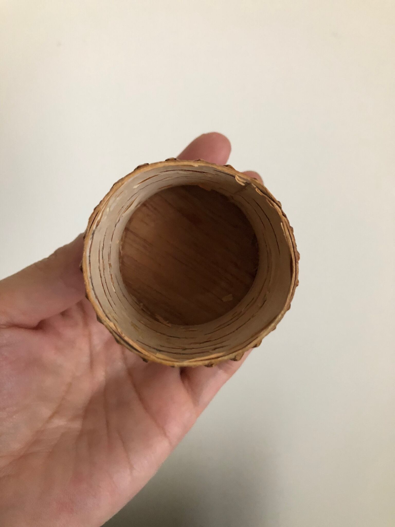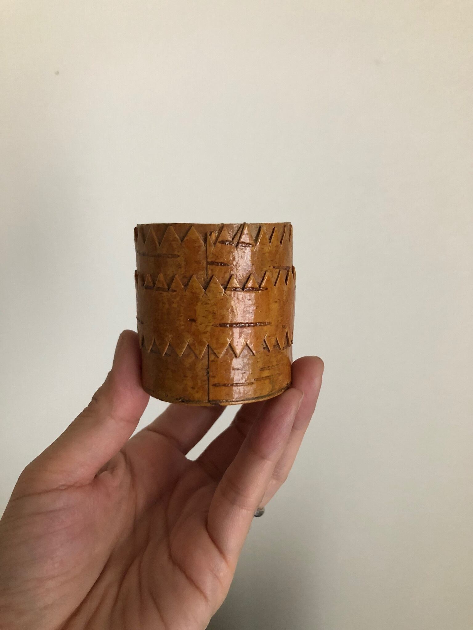 ギザギザ模様と、ナチュラルな色合いが素敵な白樺の小さな筒型の入れ物です。