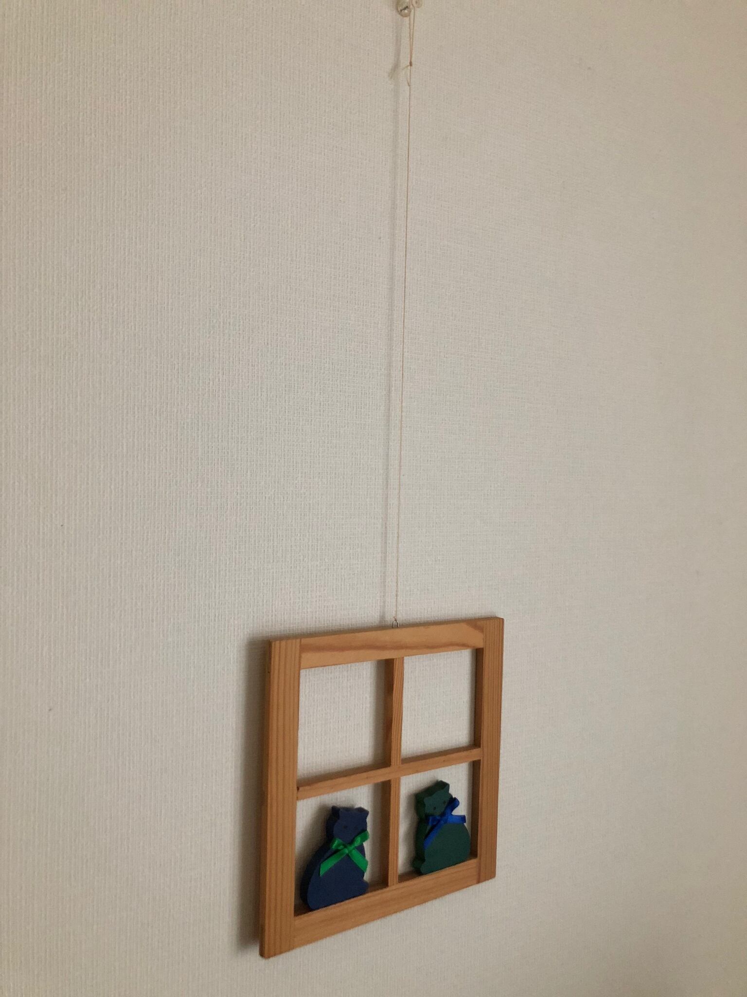 付属の紐にかけて飾るほかに、壁にそのまま画鋲でとめて飾っても♫