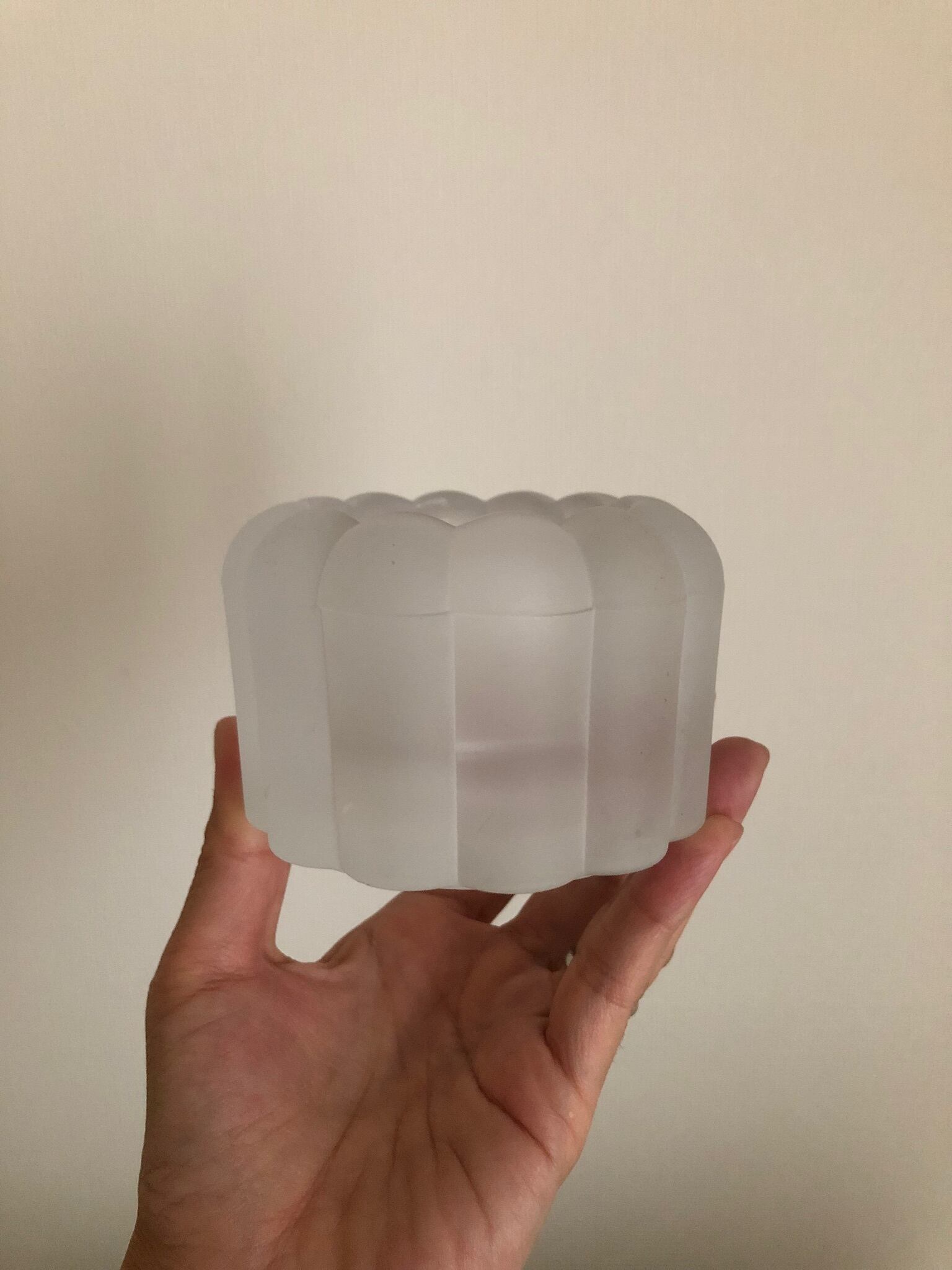 フロストガラスのキャンドルホルダーはキャンドルを灯した時の、優しい灯りが魅力的です。日中の自然の下と、夜の部屋の明かりでまた違った雰囲気を楽しめます♫