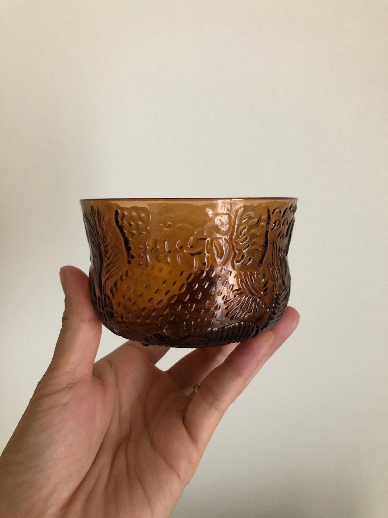 可愛らしくユニークなデザインですが、ブラウンの色味がシックで素敵なボウルです。形違いで揃えても可愛いシリーズ。ブラウンはクリアに比べてると、製造期間も短かくレアなタイプです♫