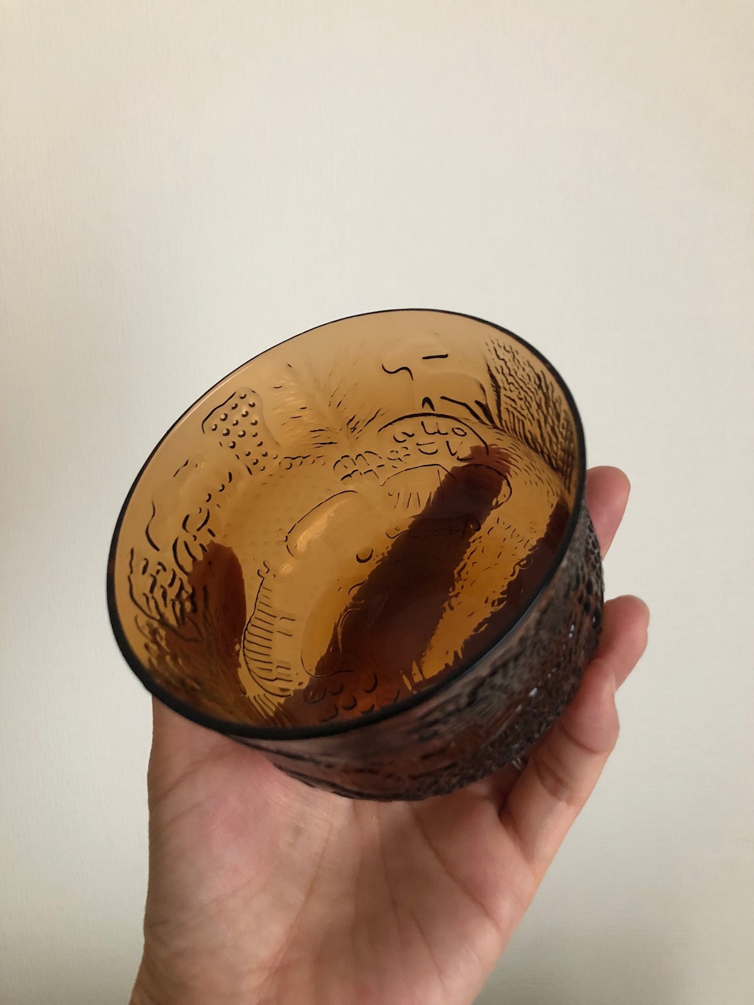 可愛らしくユニークなデザインですが、ブラウンの色味がシックで素敵なボウルになります。形違いで揃えても可愛いシリーズ。ブラウンはクリアに比べてると、製造期間も短かくレアなタイプです♫