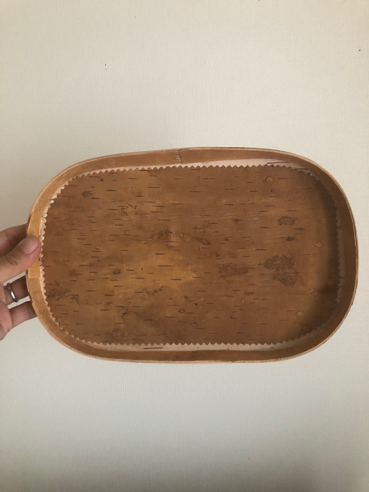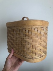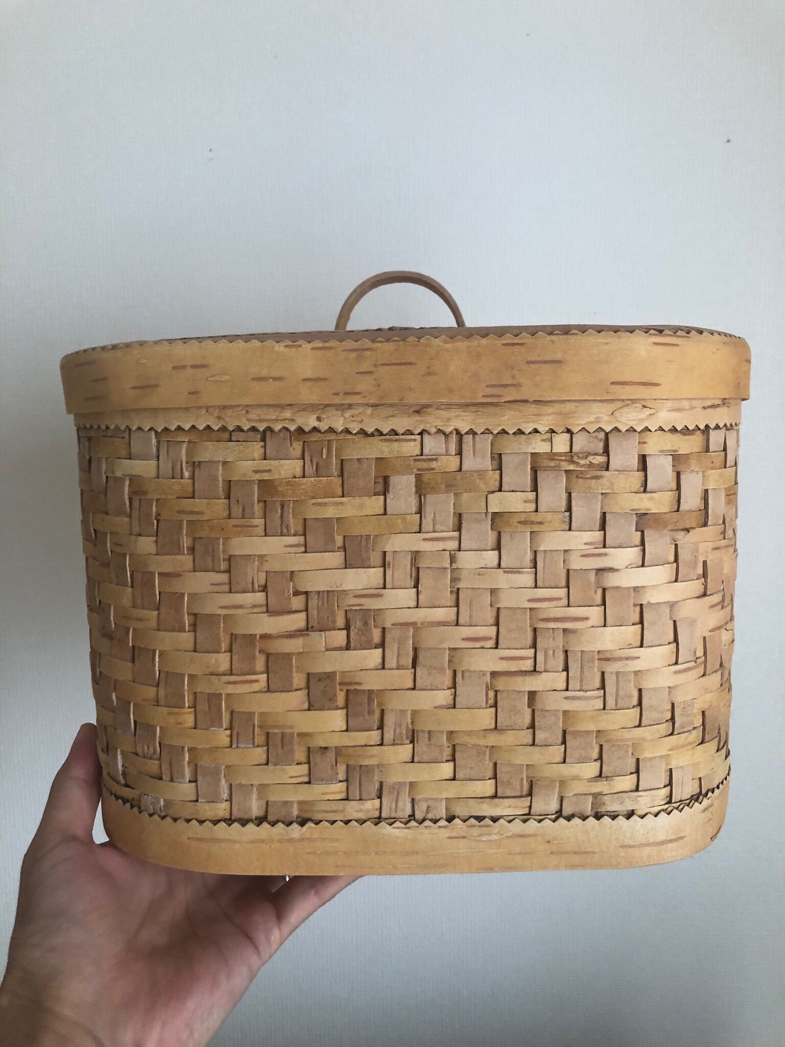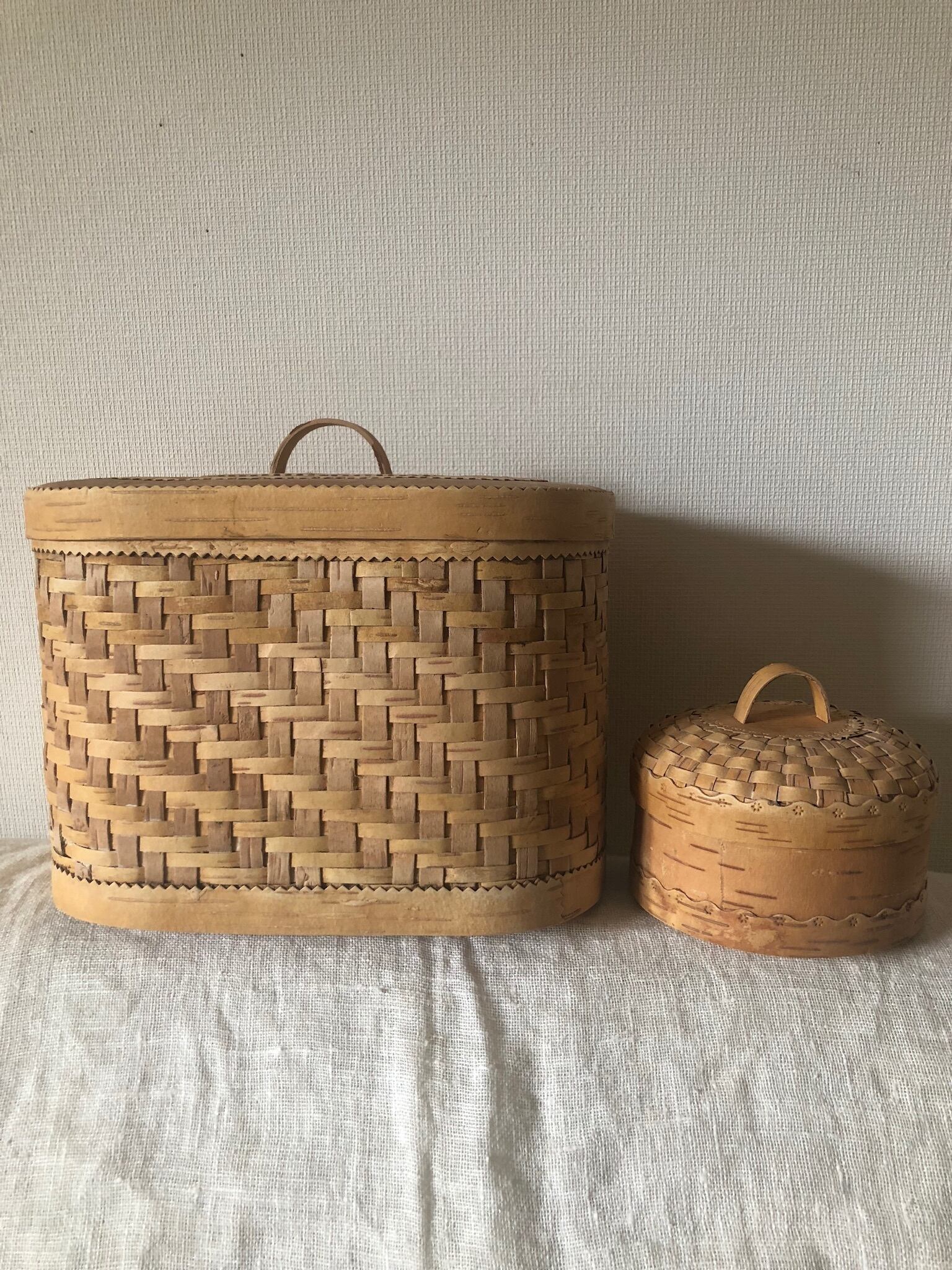 パンや、お菓子を入れたりといろいろと使い勝手のいい深さのある大きめのサイズと、丸いこんもりした白樺編みの蓋が可愛いらしいタイプ。