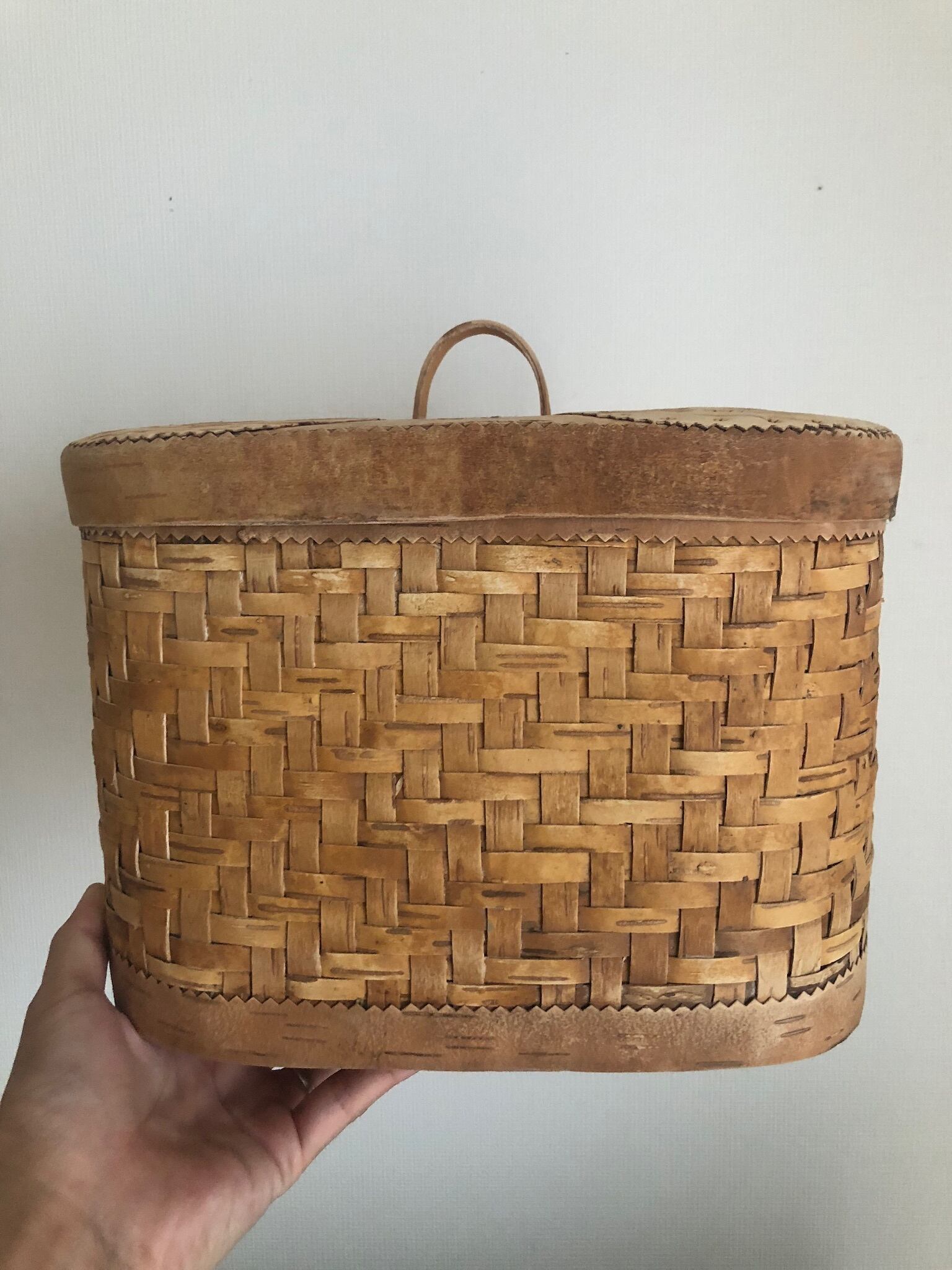 細かい白樺編みが、とても凝っていて可愛らしい大きめのキャニスター。
