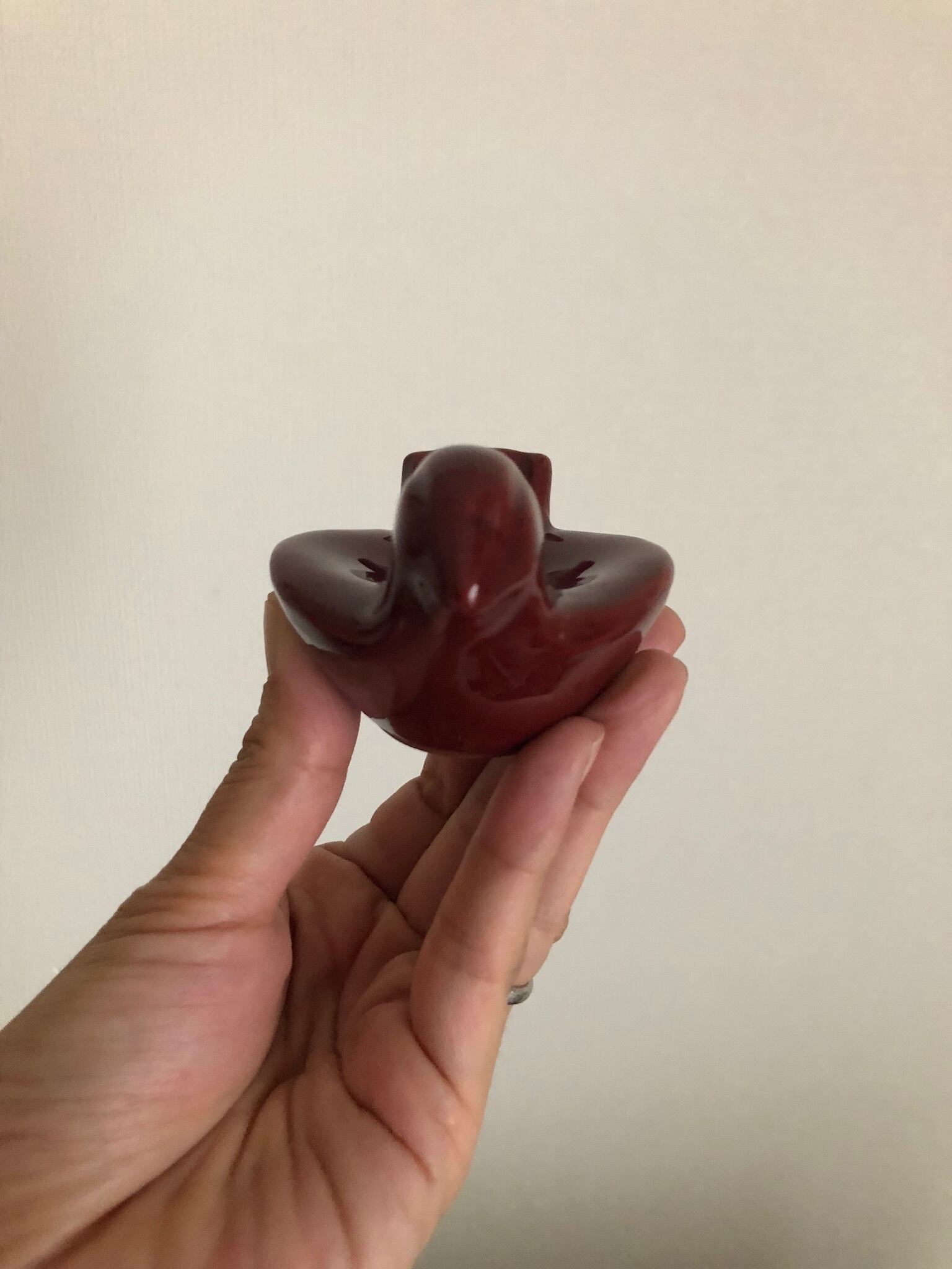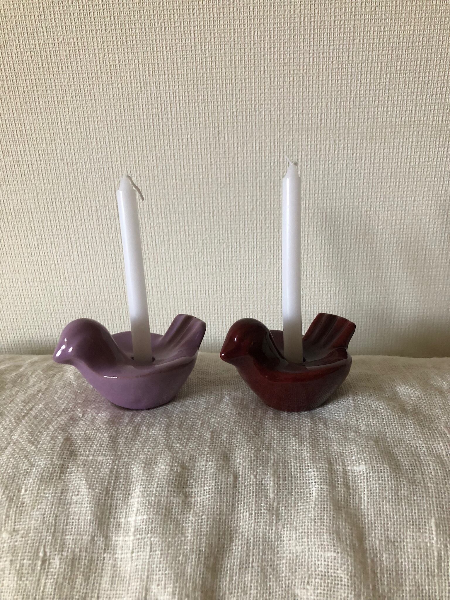 こっくりしたレッドブラウンの鳥が可愛いらしい陶器のキャンドルスタンドです。
