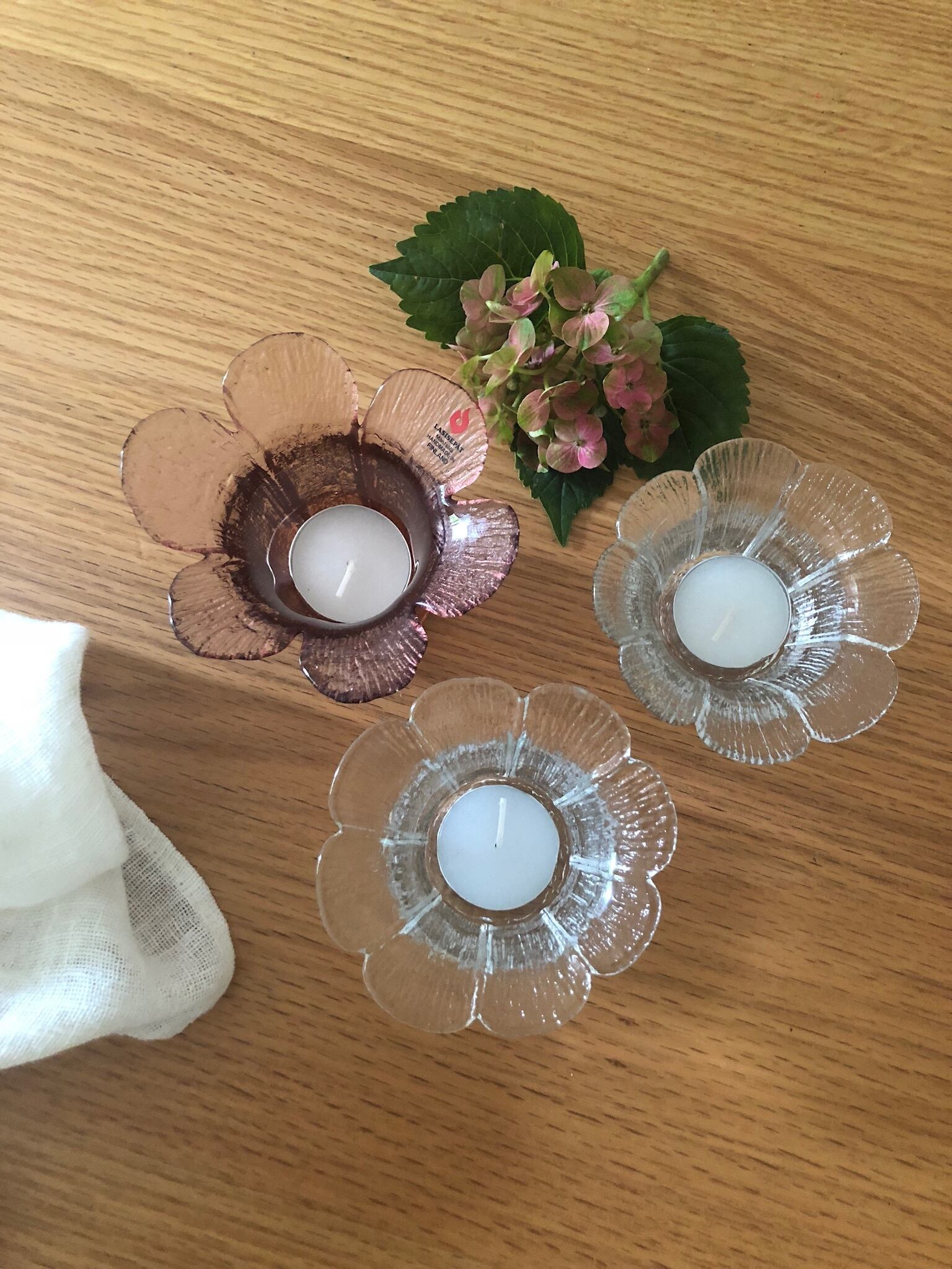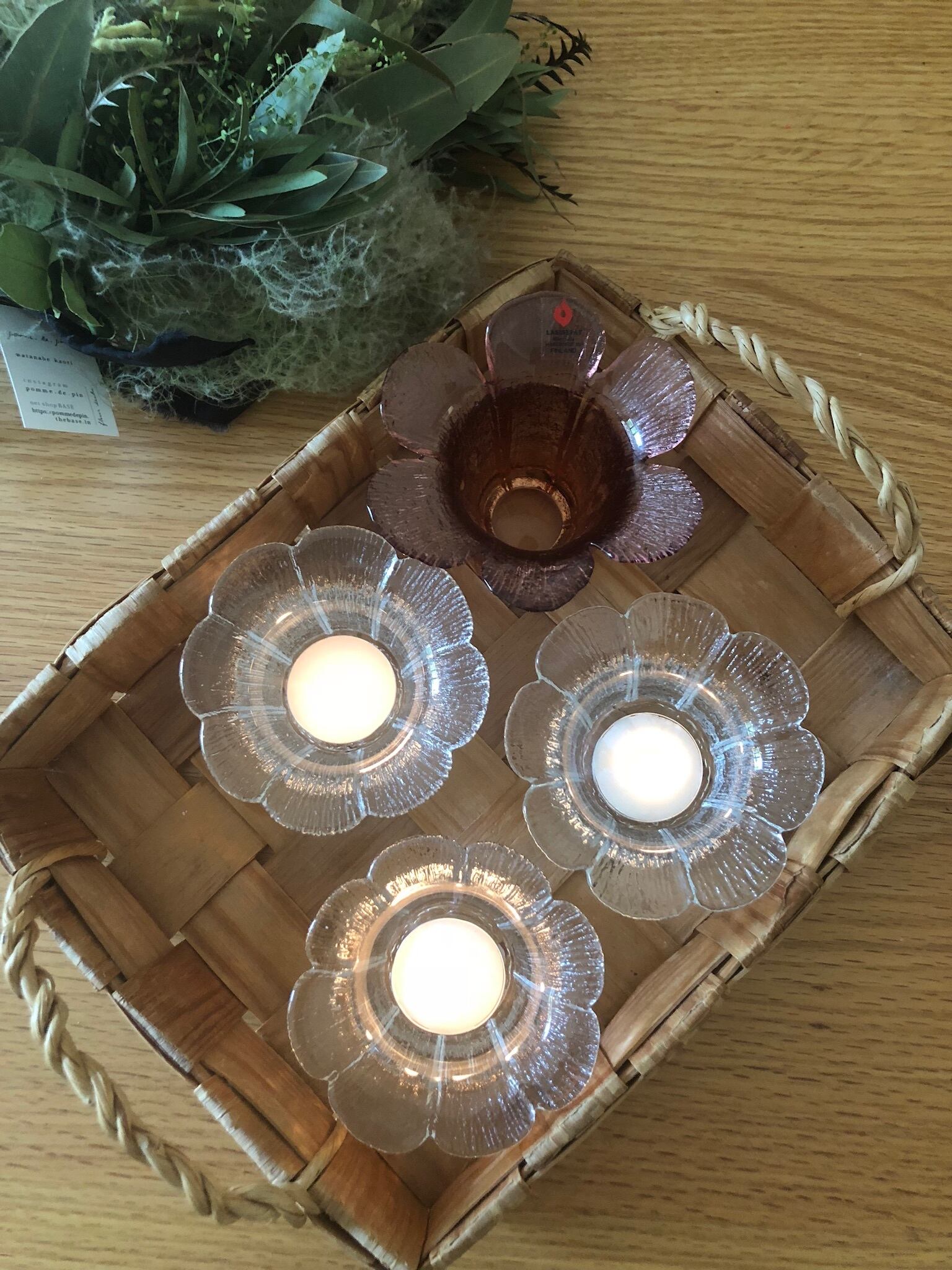 Teralehtiシリーズのガラスのキャンドルホルダーです。Teralehtiとは花びらの意味。その名の通り、お花がパッと開いたようなデザインが可愛らしいタイプ。