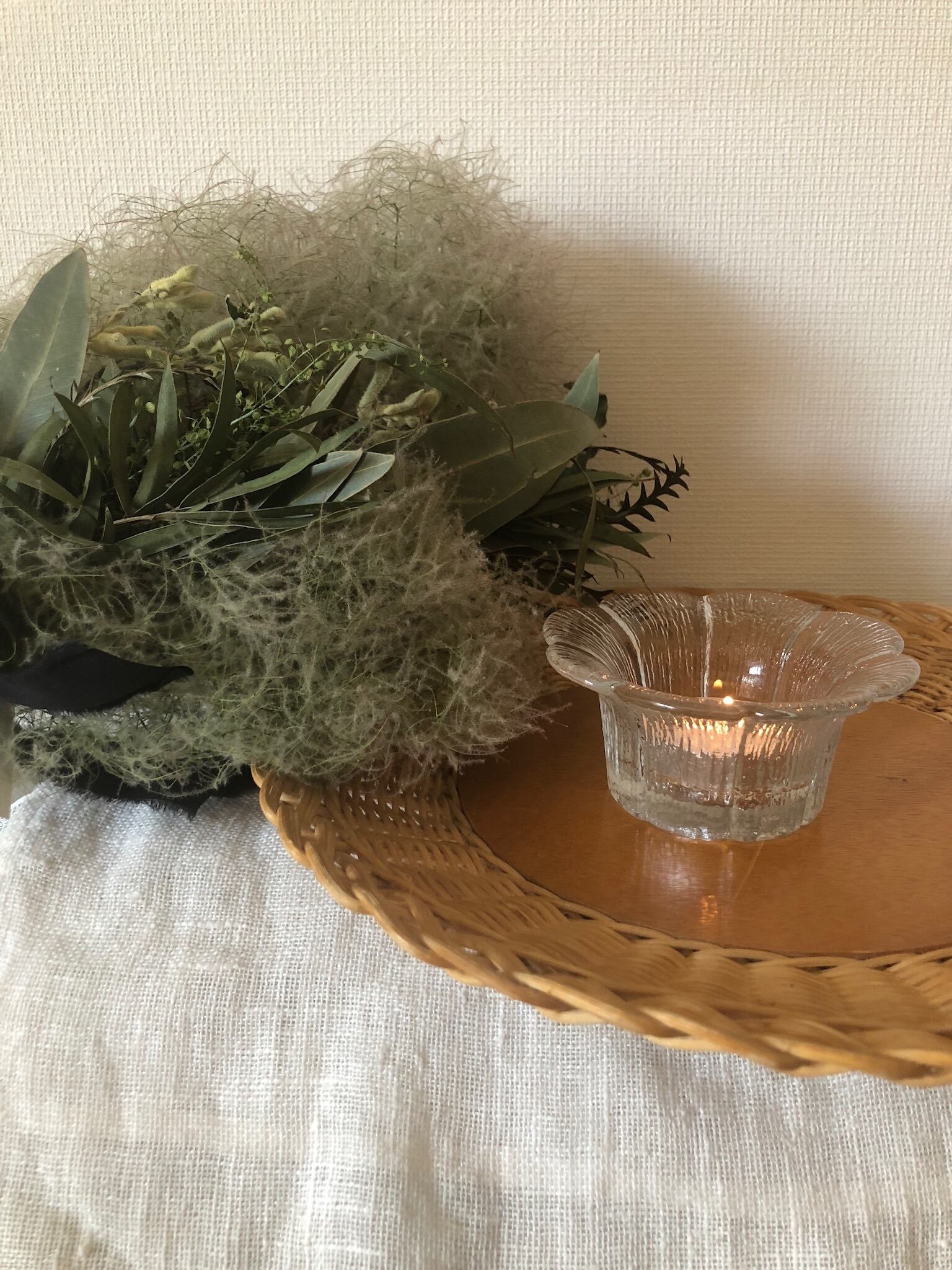 キャンドル以外にも、フラワーベースとして、ちょこっとグリーンやお花飾っても♫