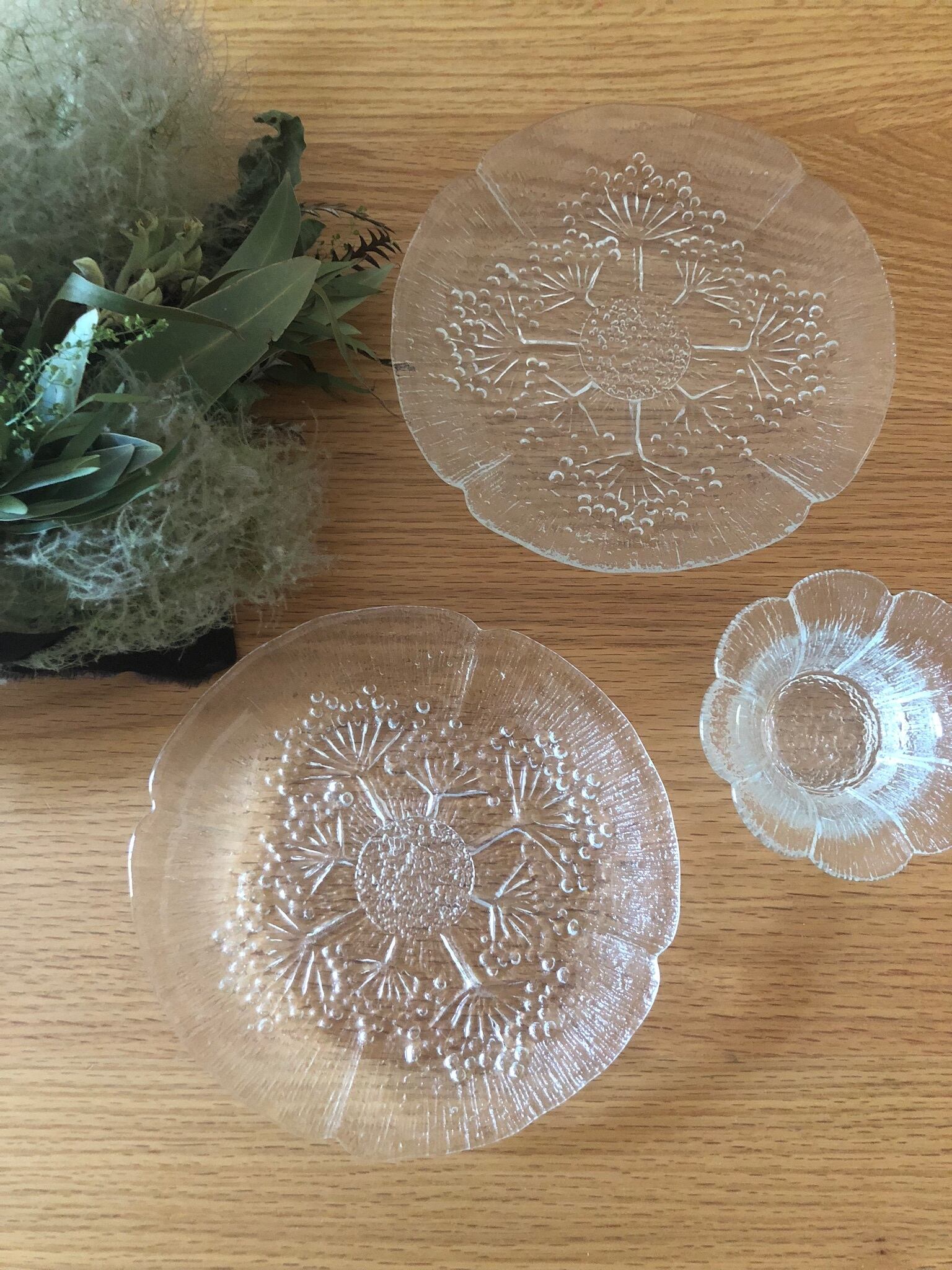 フィンランドのLasisepat 社のヴィンテージのガラスのサラダプレートです。