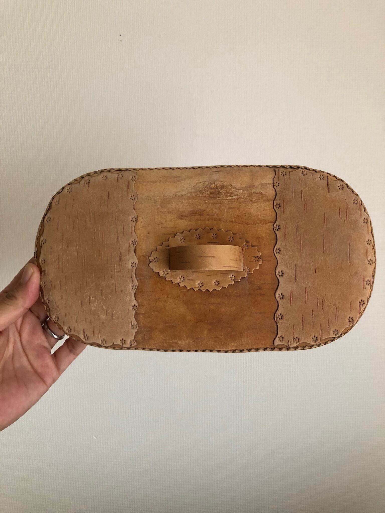 取っ手部分と蓋の上部、蓋と底の回りの波型と小花の型押しがさりげなくて、可愛らしいキャニスター。白樺の色味も薄めの色なので、北欧インテリアやナチュラルインテリアにぴったりな一品♫
