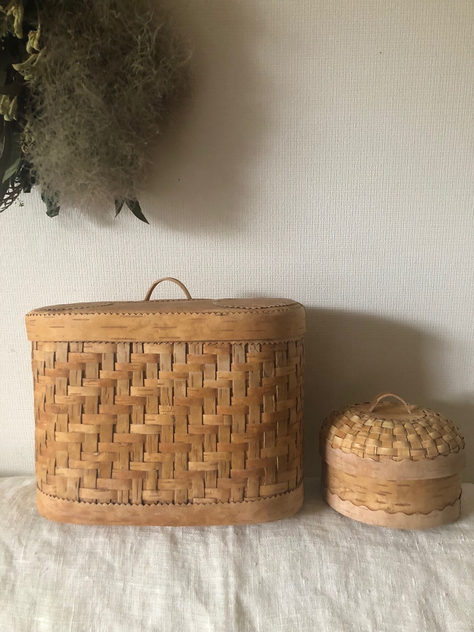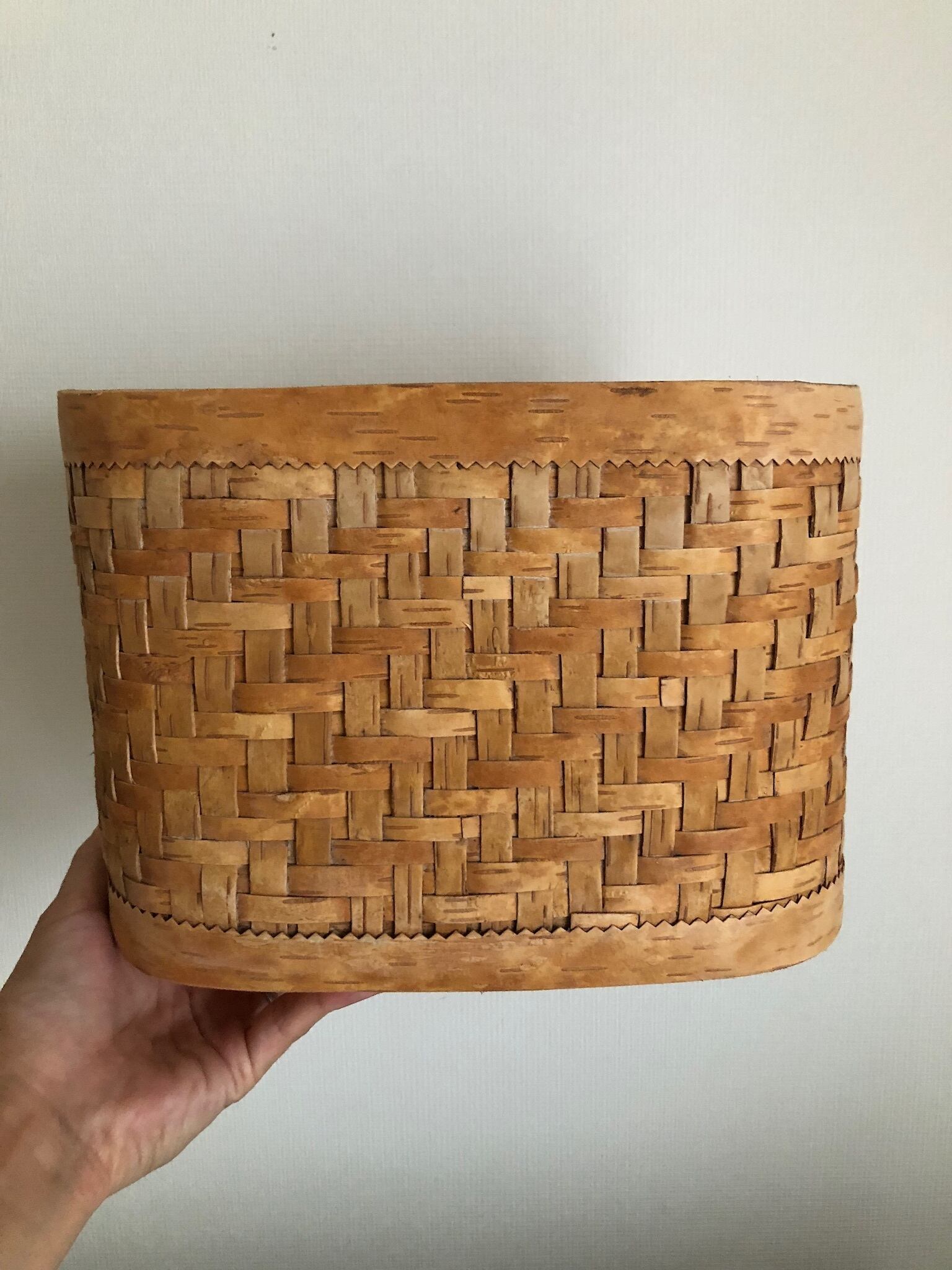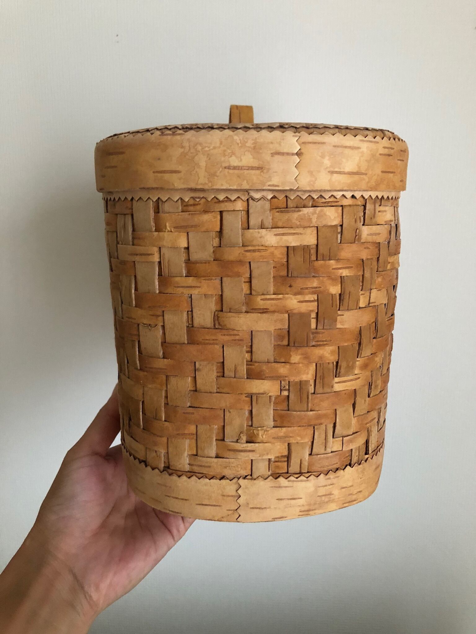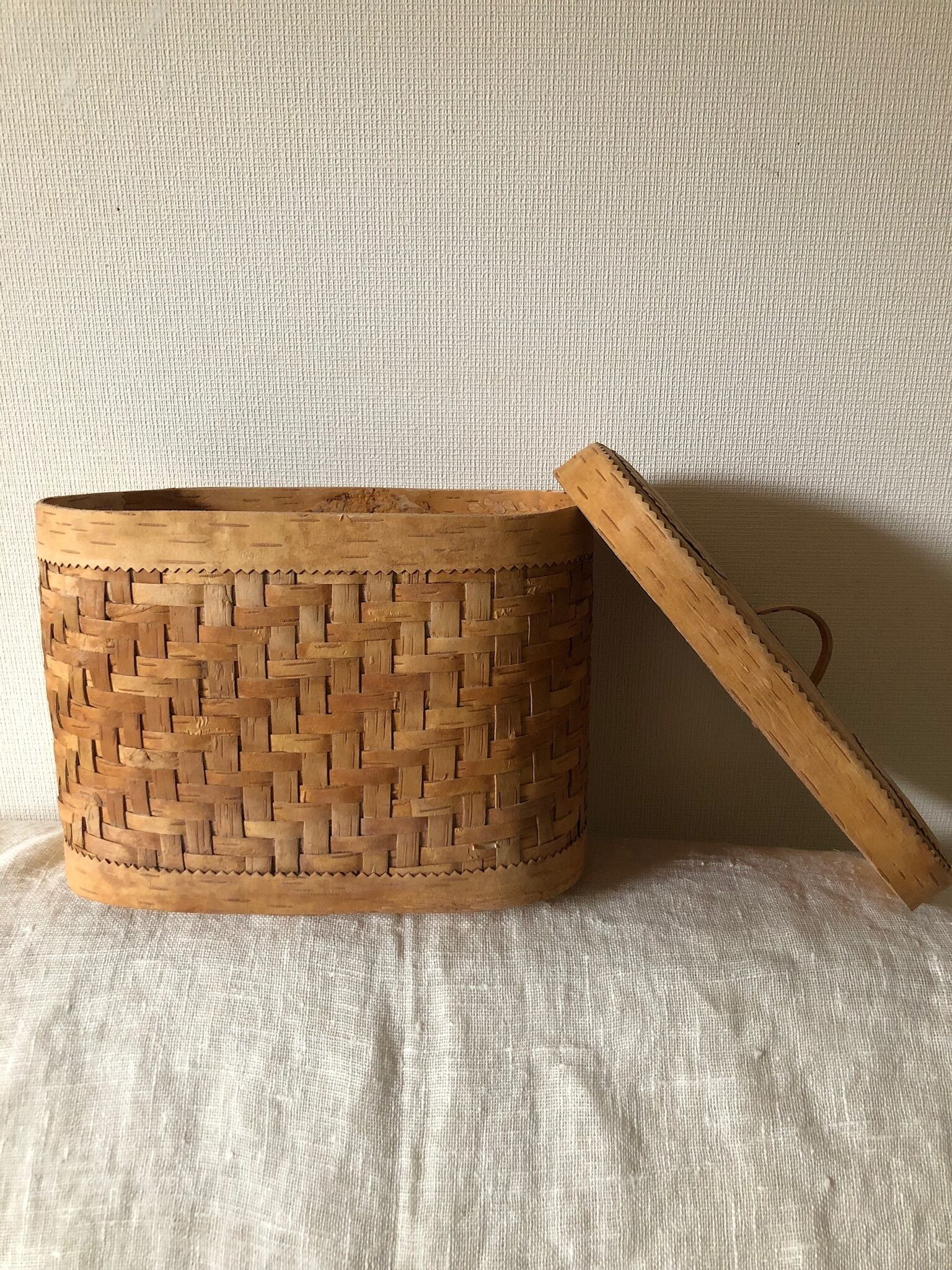 細かい白樺編みが、とても凝っていて可愛らしい大きめのキャニスター。