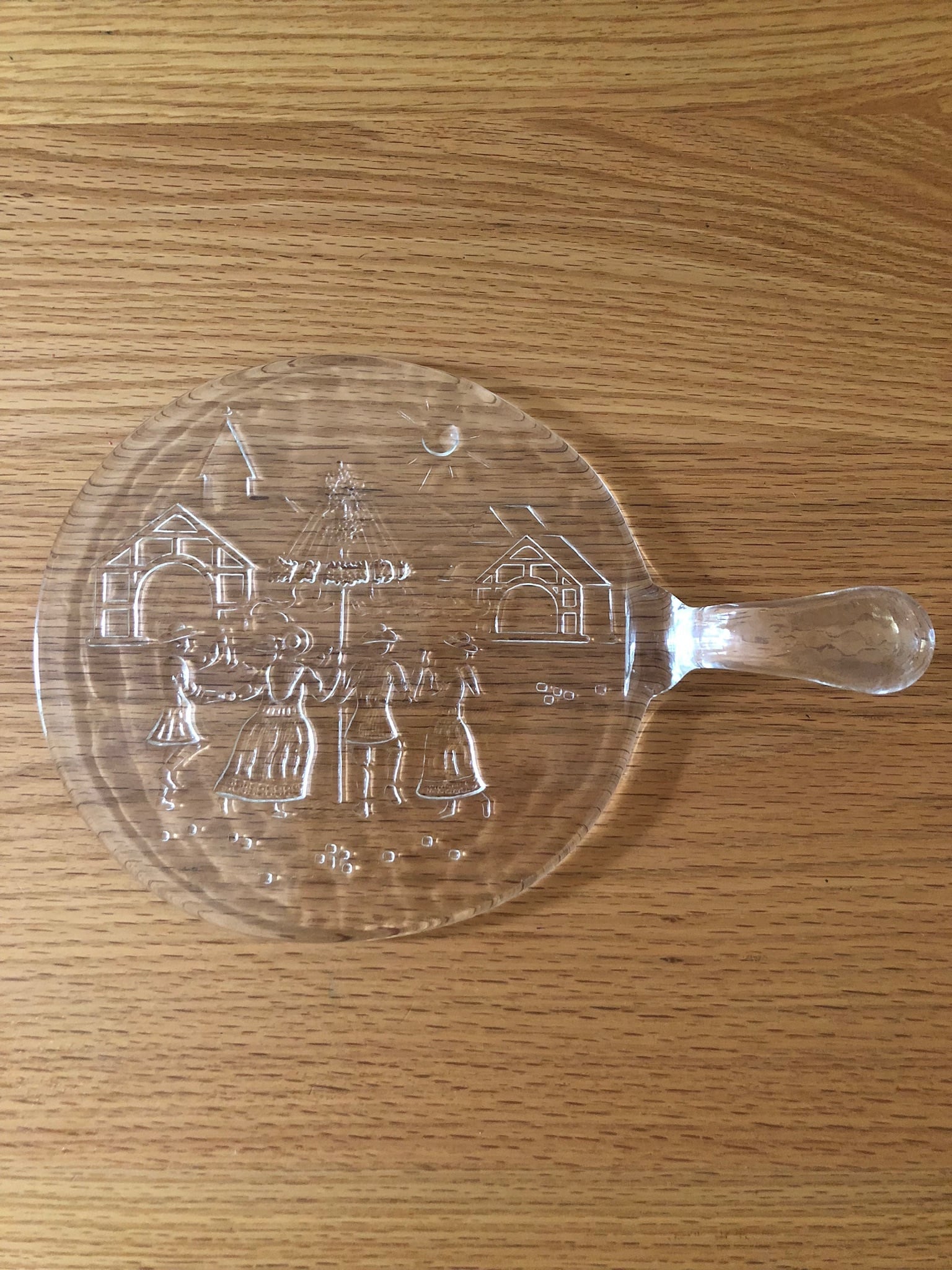 スウェーデンのガラスのガラスの持ち手付きのチーズボードになります。