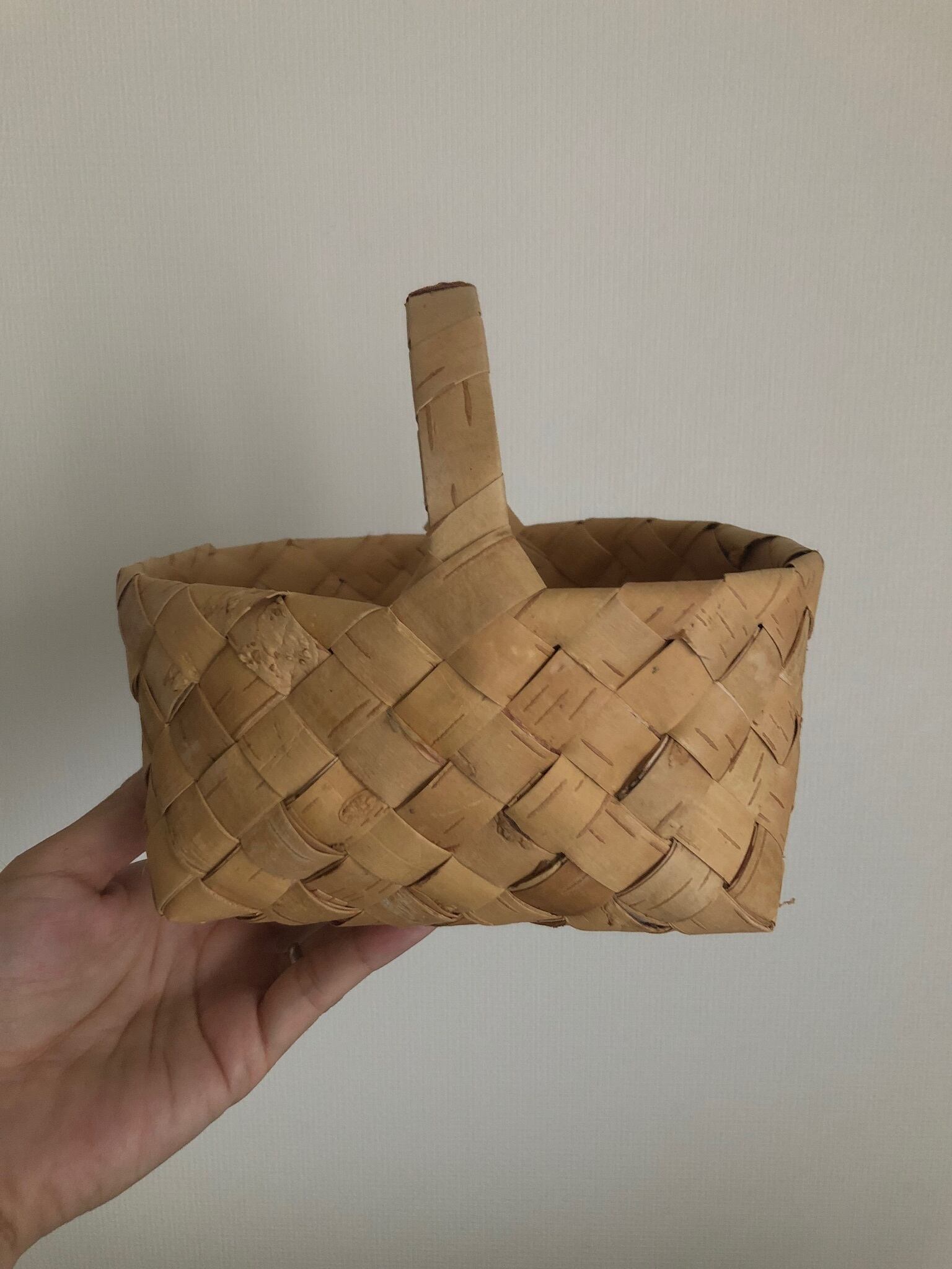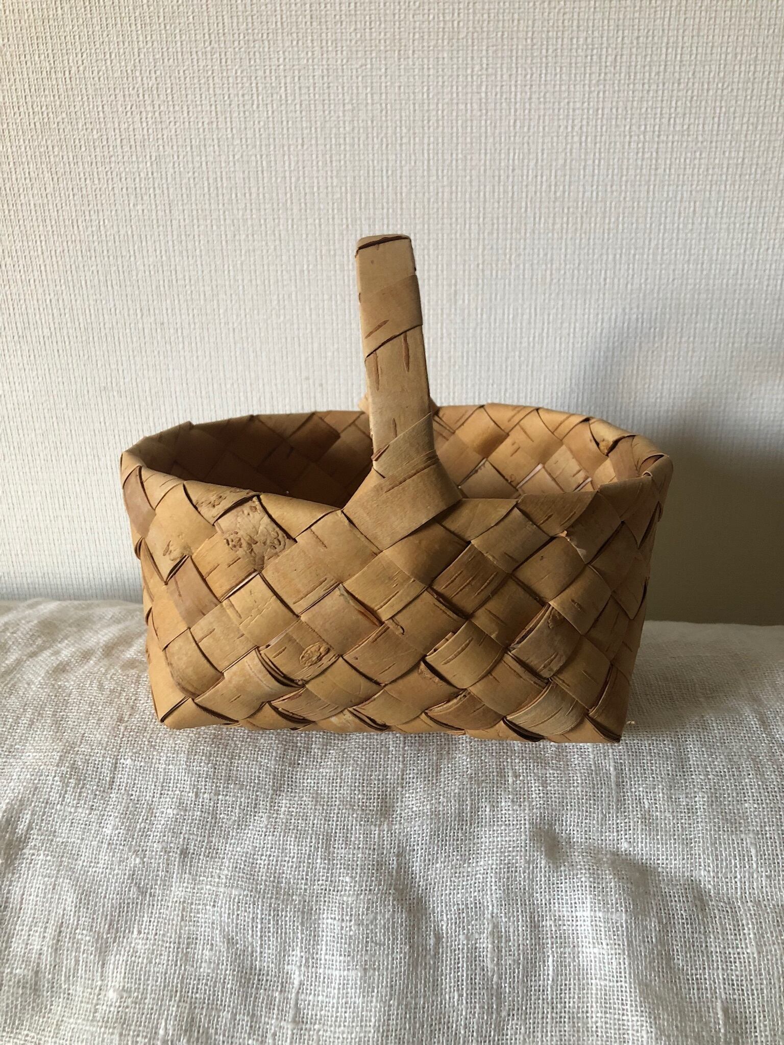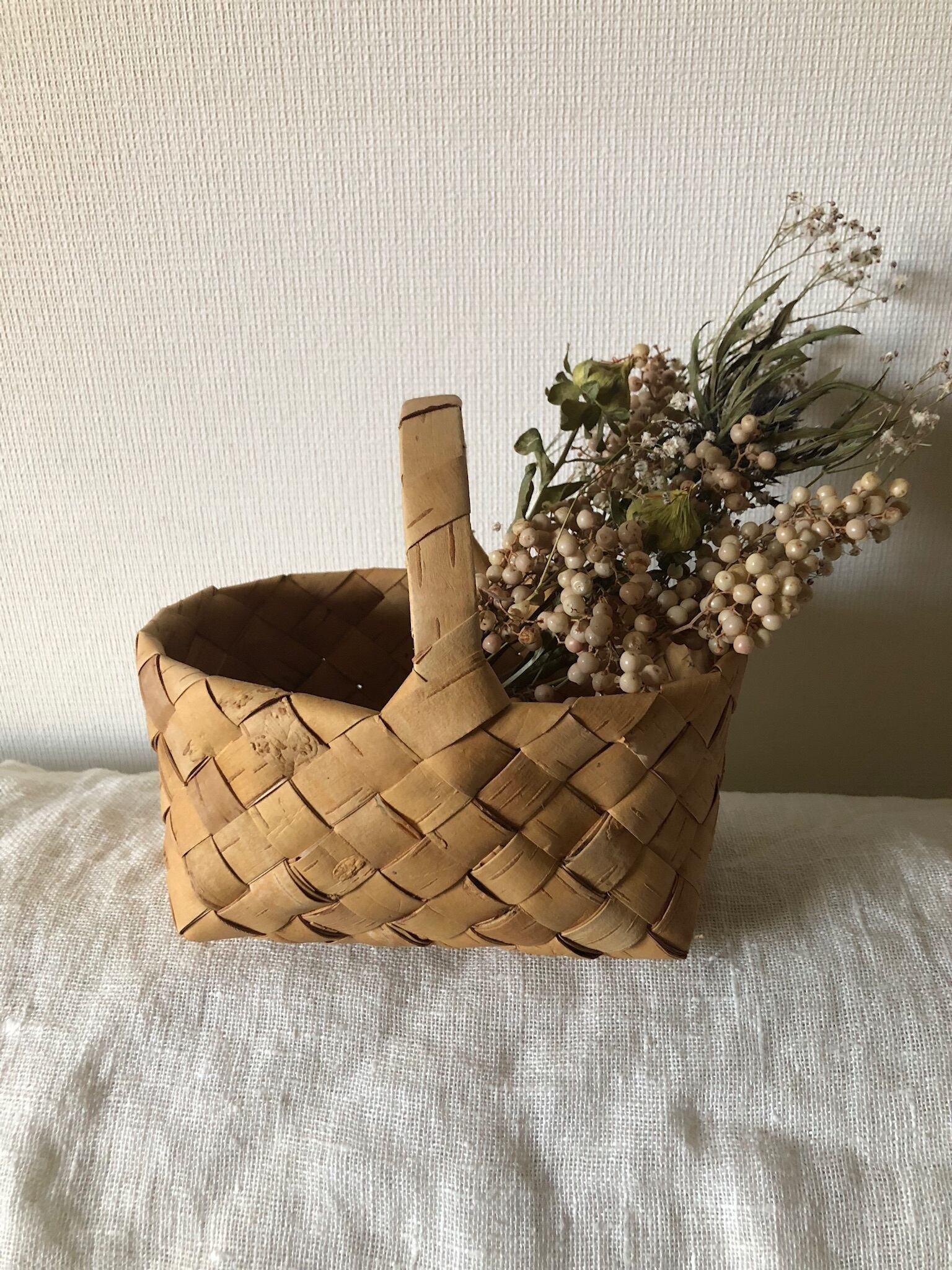 持ち手付きが可愛いらしい、白樺のバスケットです。小さめの、サイズが、また可愛らしいです。
