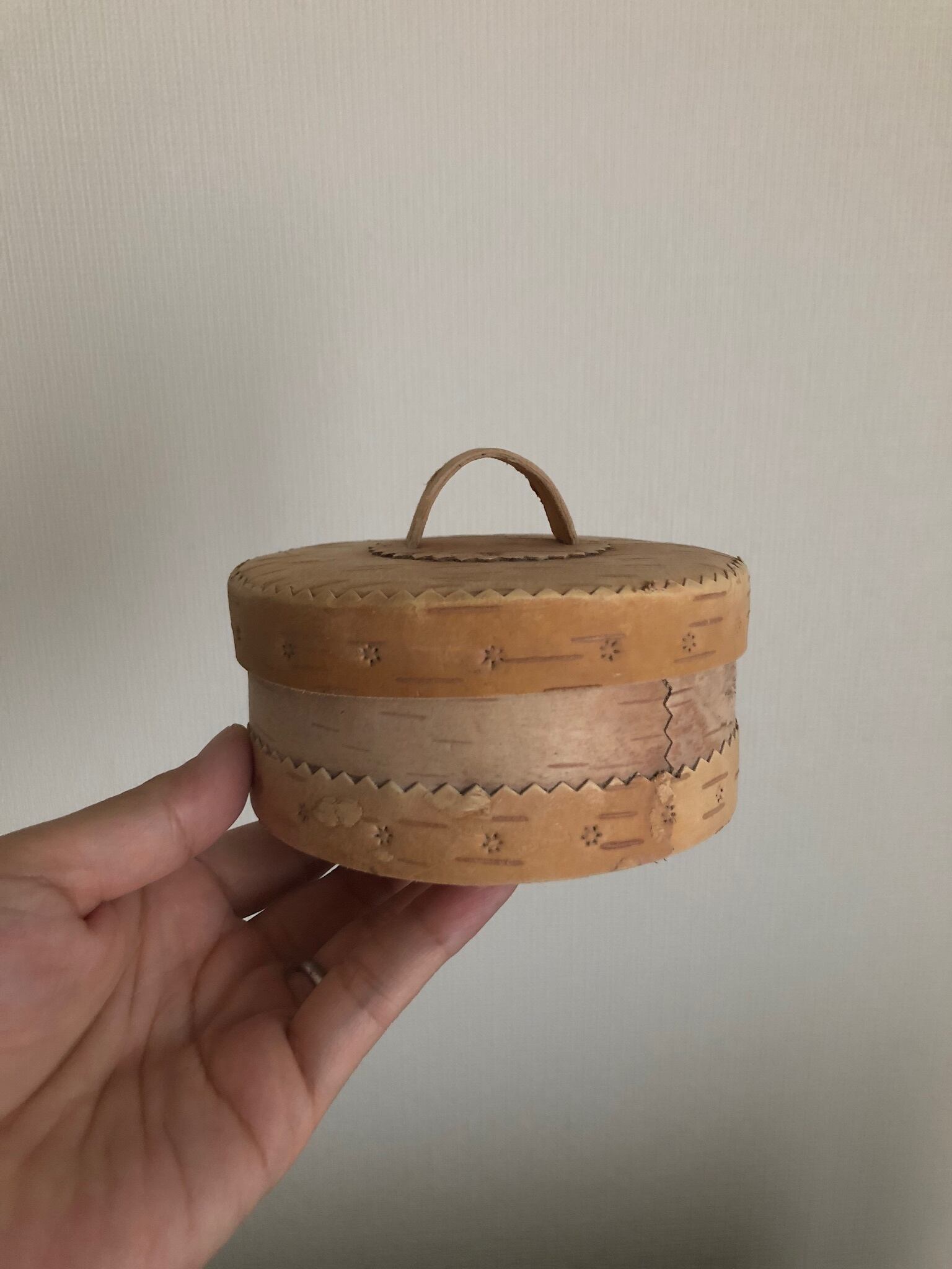 ロシアの白樺作家さんが作った、丸型のキャニスターになります。