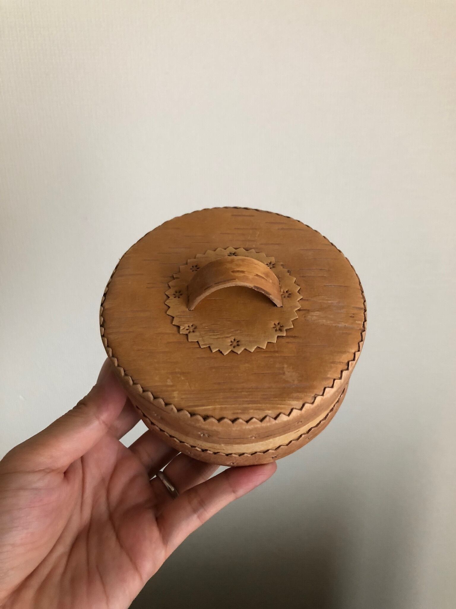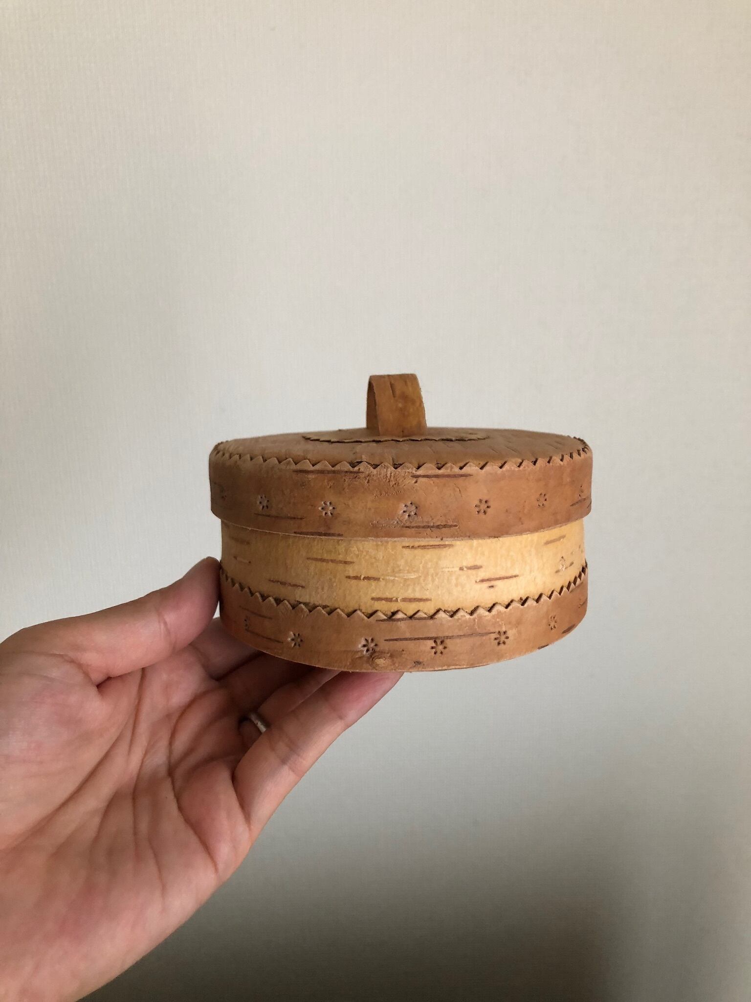 ロシアの白樺作家さんが作った、丸型のキャニスターになります。