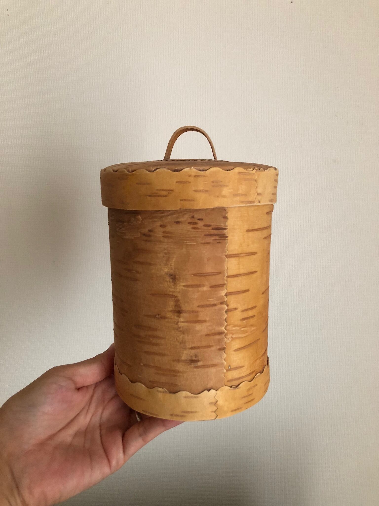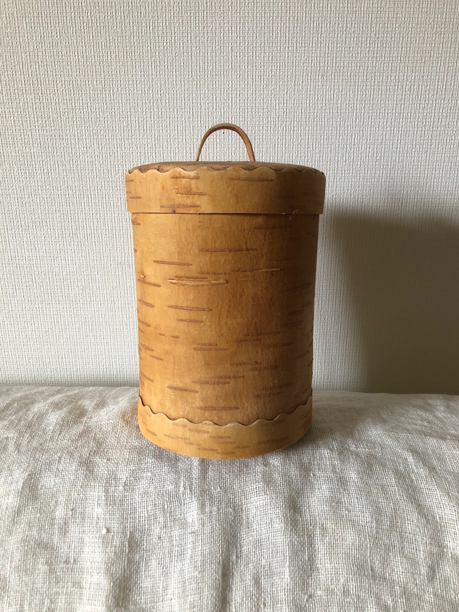 ロシアの白樺作家さんが作った、筒型の取っ手付きキャニスターになります。