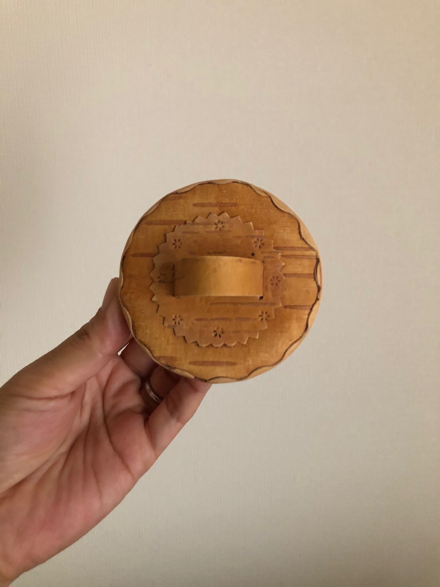 新品なので、白樺の皮の経年変化を楽しんで頂けると思います。 蓋を開けた時のほのかな白樺の香りにも癒されます♫