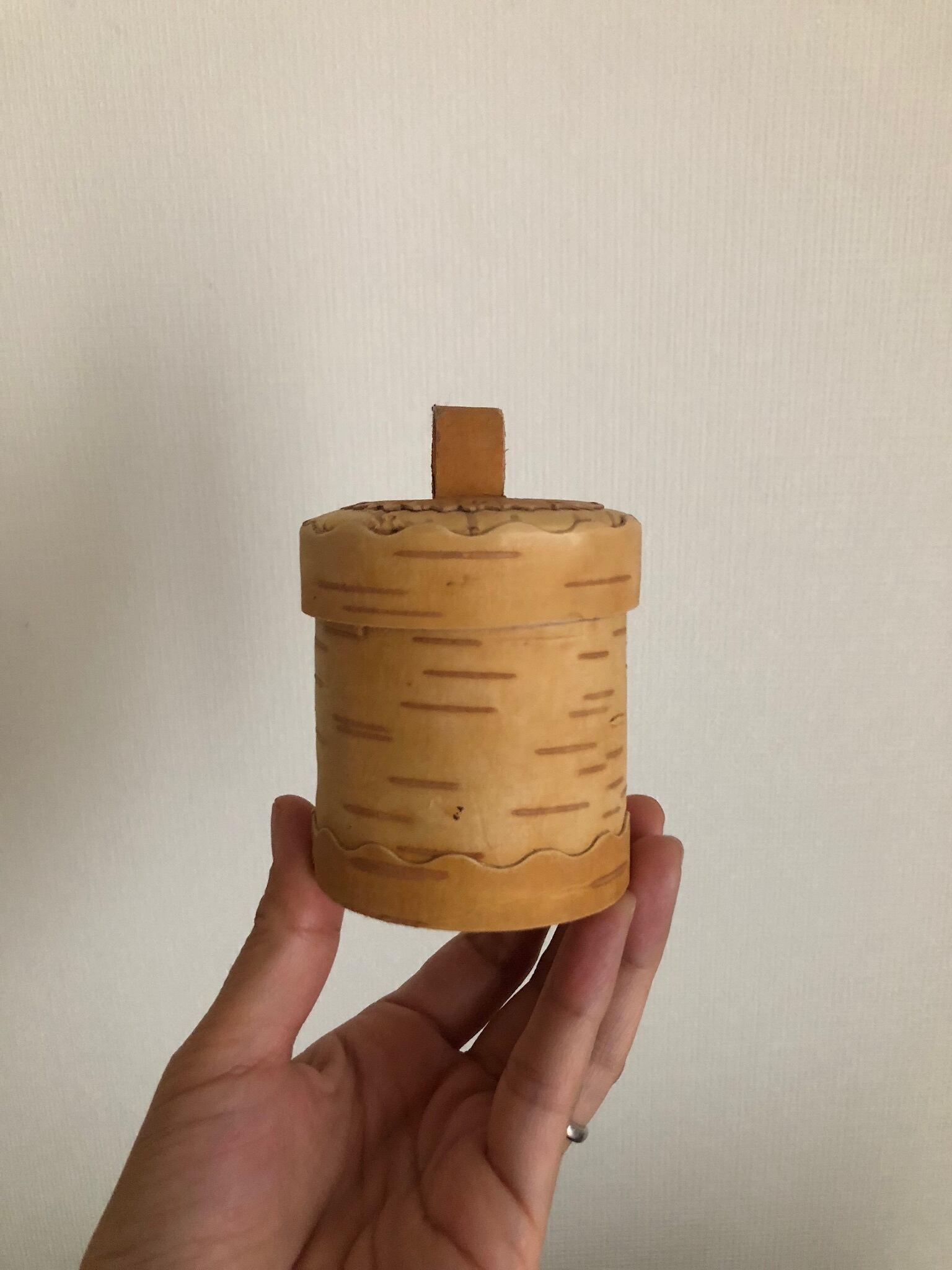 新品なので、白樺の皮の経年変化を楽しんで頂けると思います。蓋を開けた時のほのかな白樺の香りにも癒されます♫