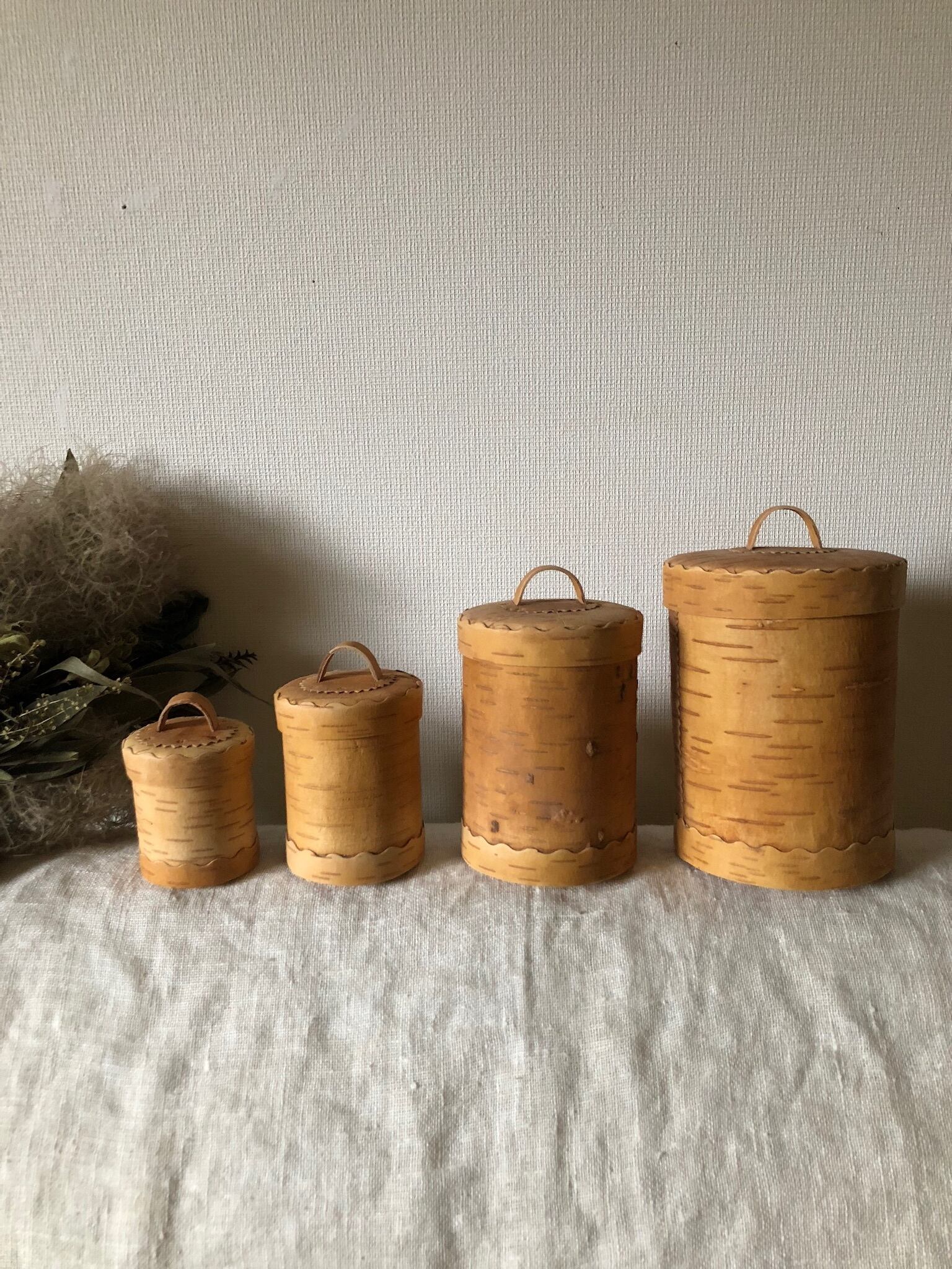 ロシアの白樺作家さんが作った、筒型の取っ手付きキャニスターになります。