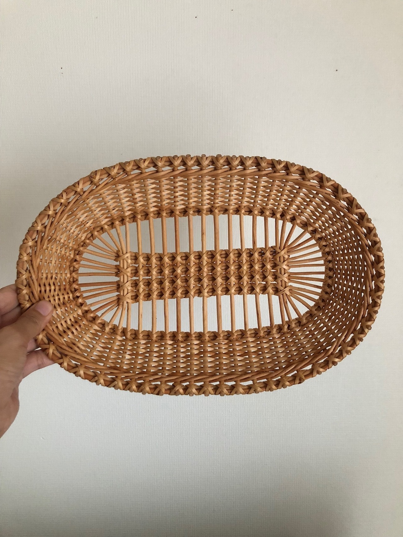 柳の細かな透かし編み模様の細工が素敵なリトアニアのバスケット♫